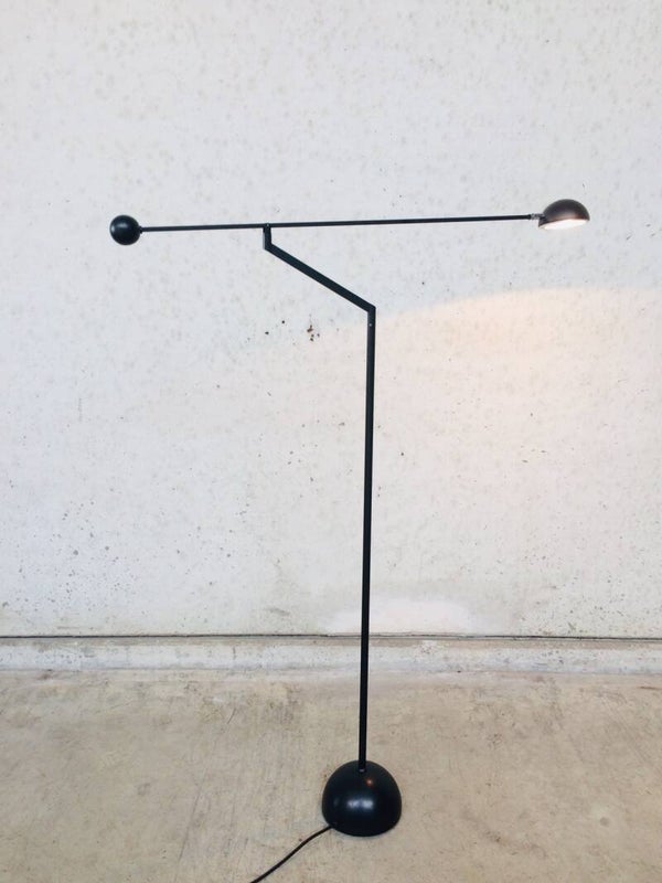 Vintage Post Modern Design Floor Lamp by Sölken Leuchten, Germany 1980's. Black metal adjustable lamp. Swing arm rod lamp. Comes in very good condition. At it's highest point this measures: 165cm. Arm measures 90cm. Foot hight: 120cm.