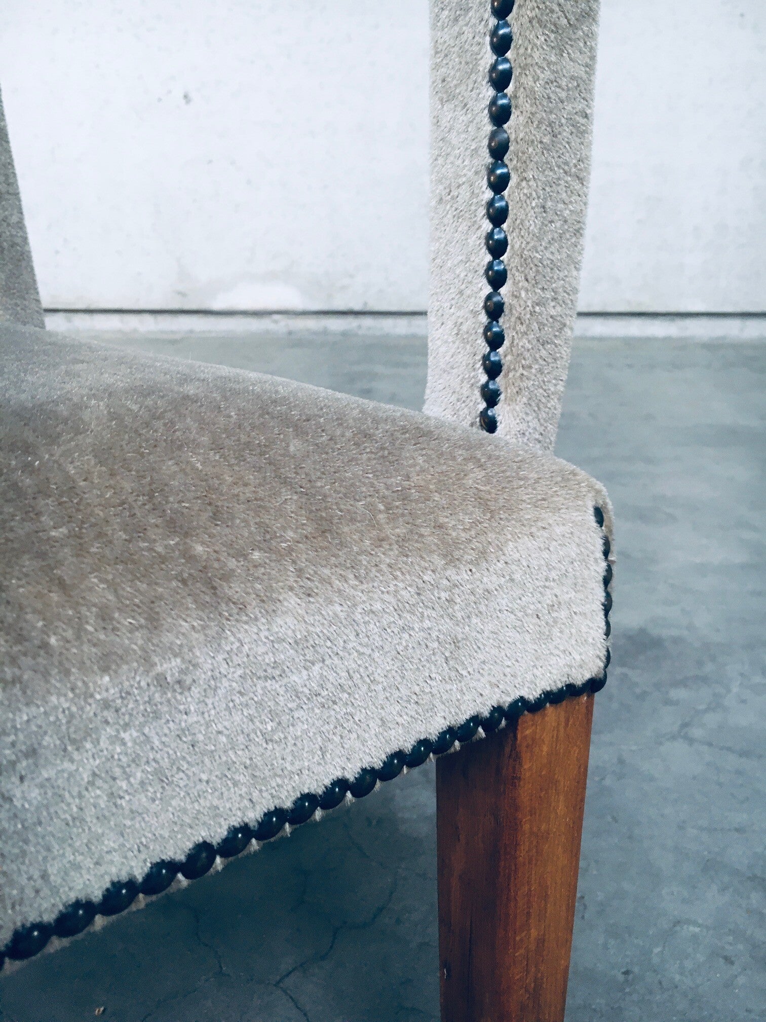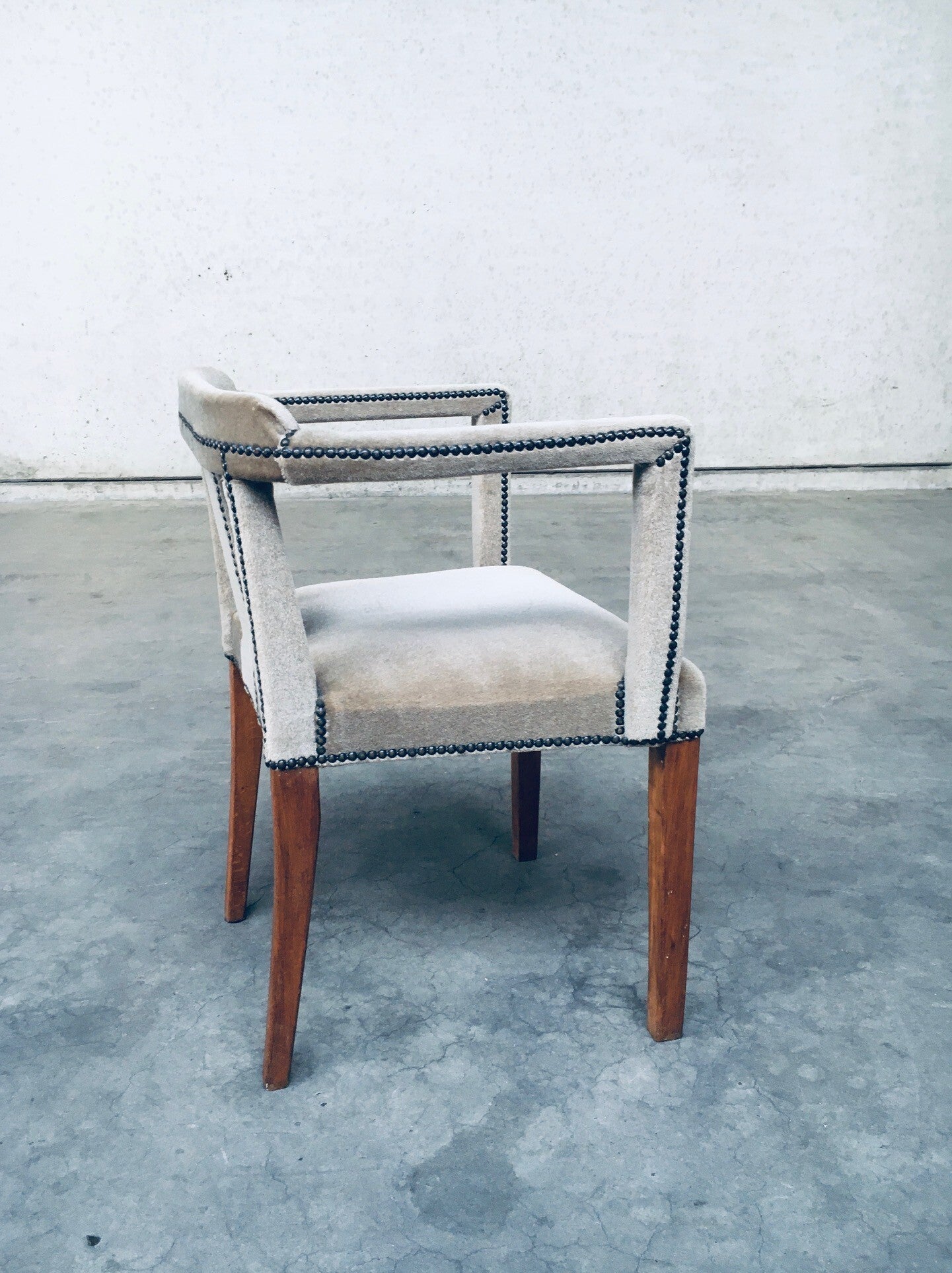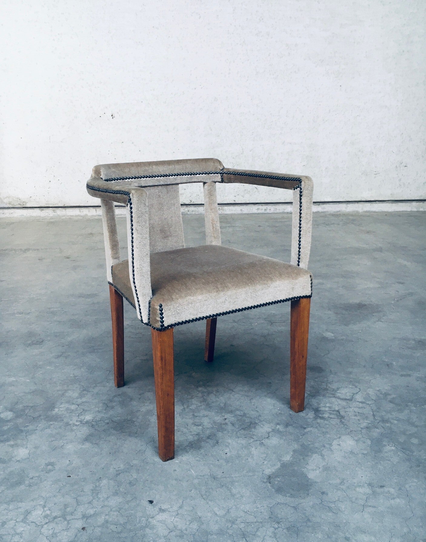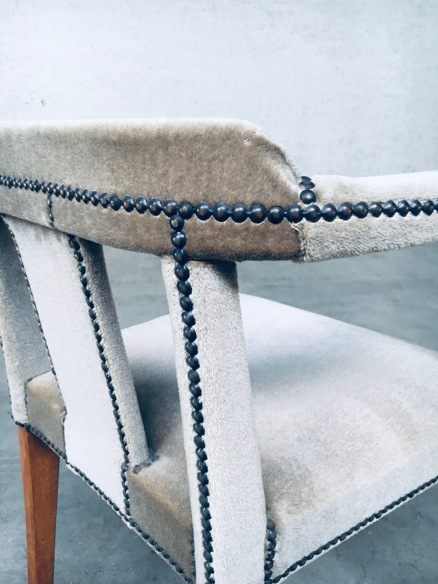 Early 20th Century Boudoir Velvet covered Side Arm Chair. Made in Scandinavia, Sweden, 1920's - 30's period. Teak wood construction with velvet covered seat, armrests and back finished with brass studs. the finish gives this a lush look and feel which fits well in a boudoir, dressing room. This comes in beautiful, very good, all original condition. Measures 75,5cm x 58cm x 47cm - seat height: 48cm.
