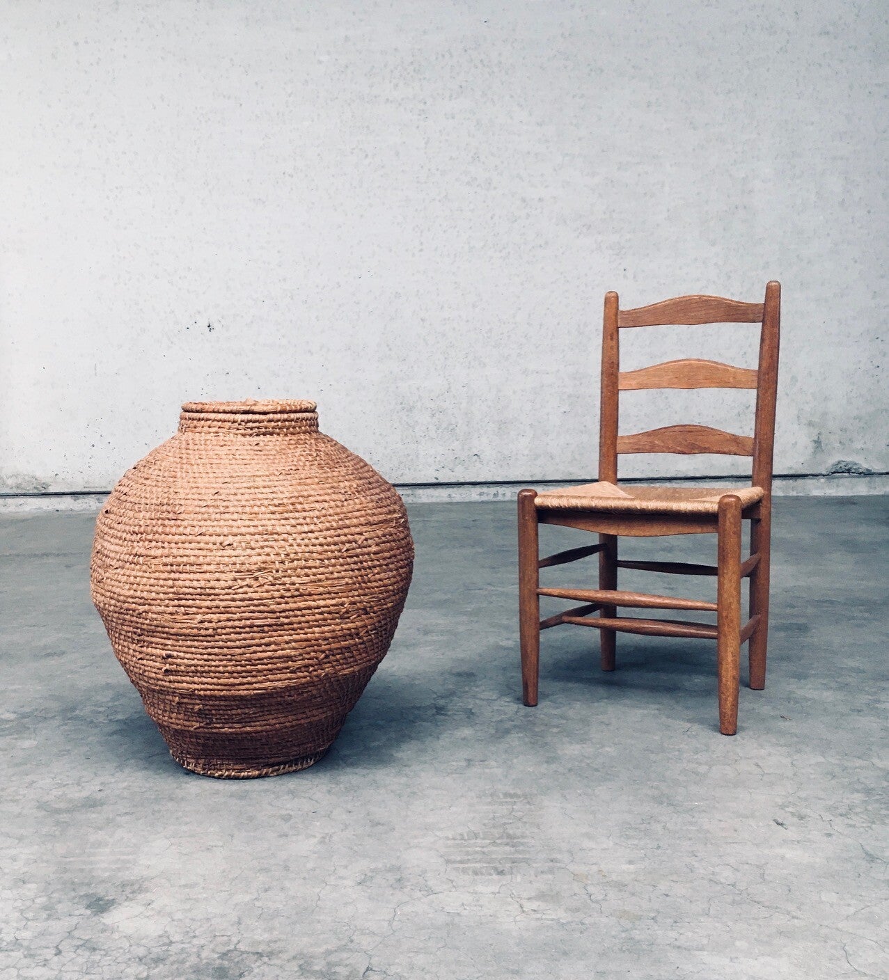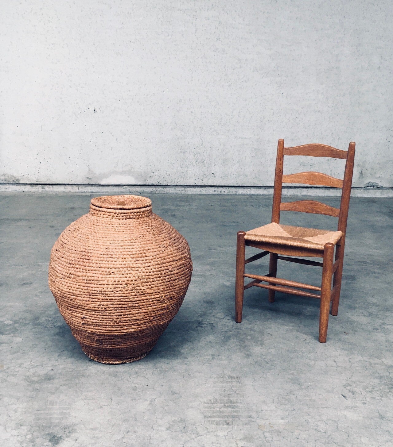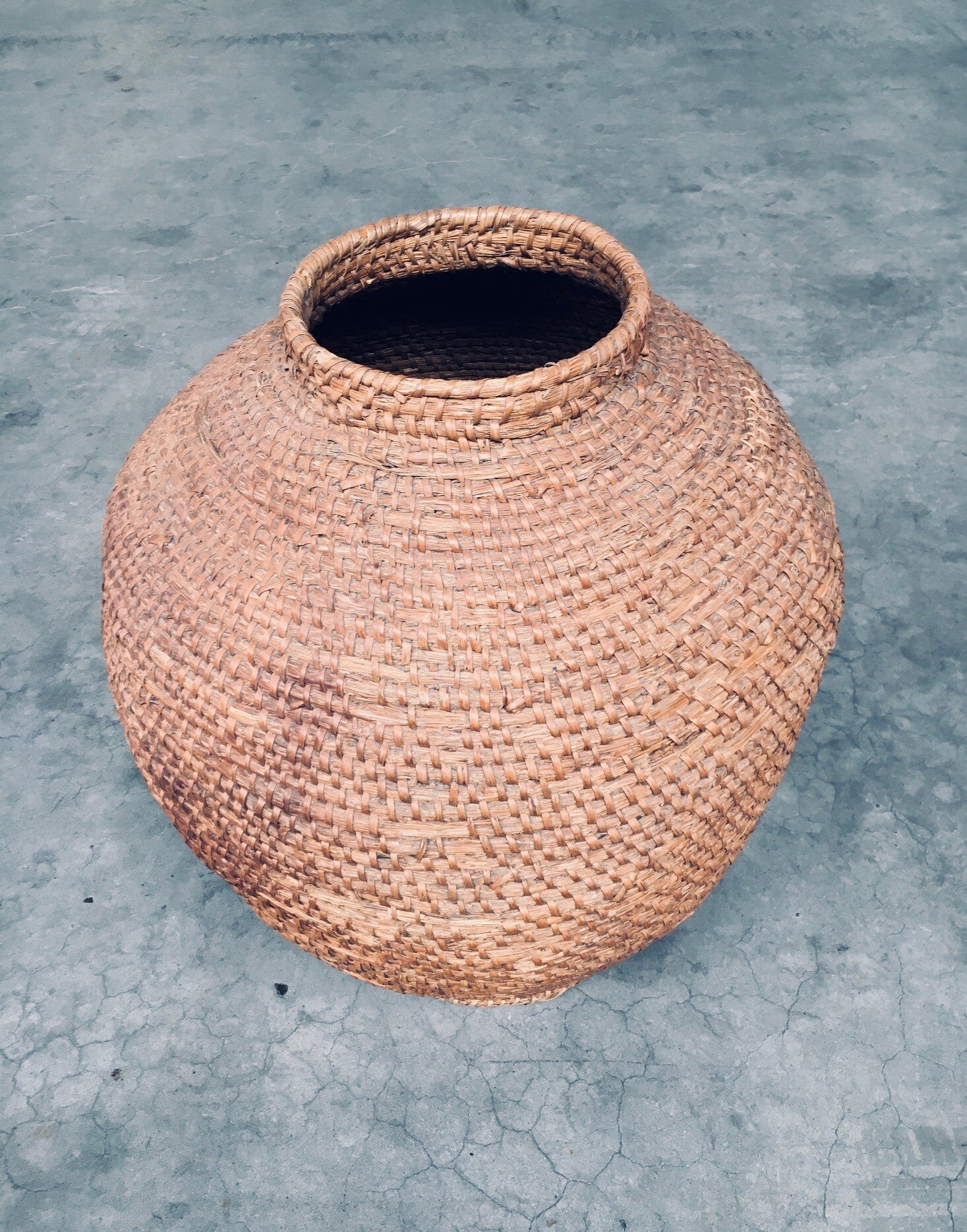 Early 20th Century Folk Art Primitive XL Straw Basket