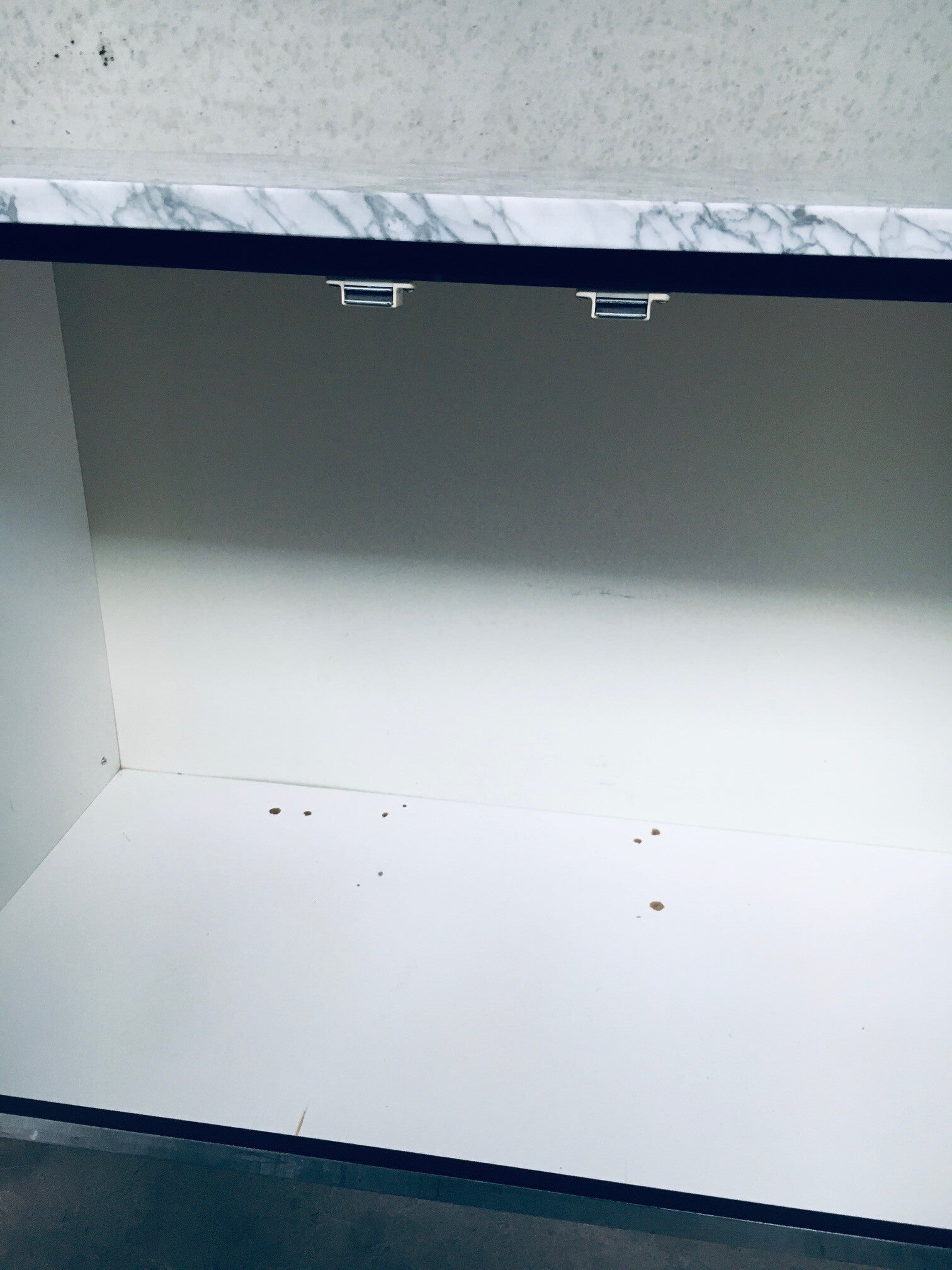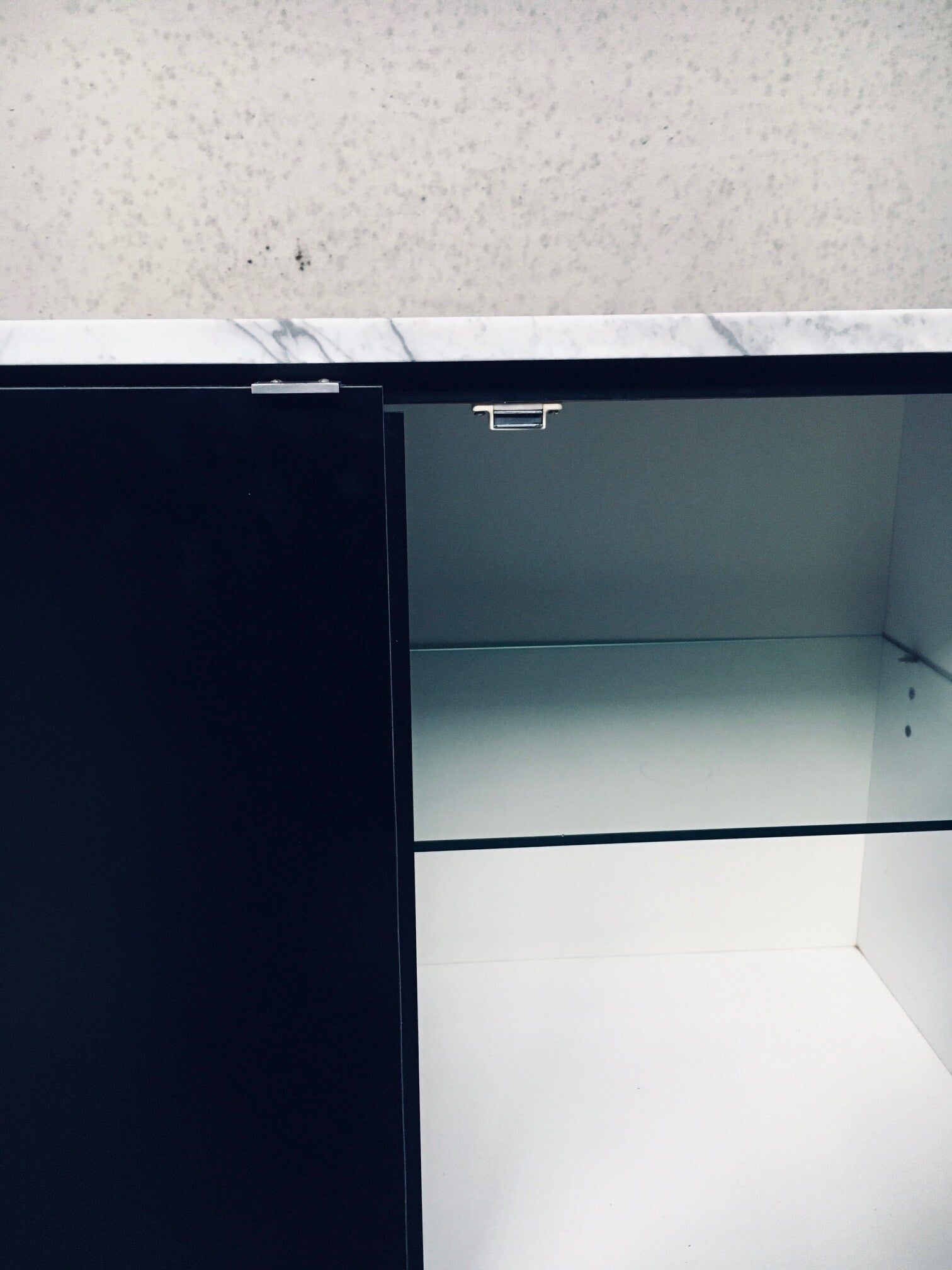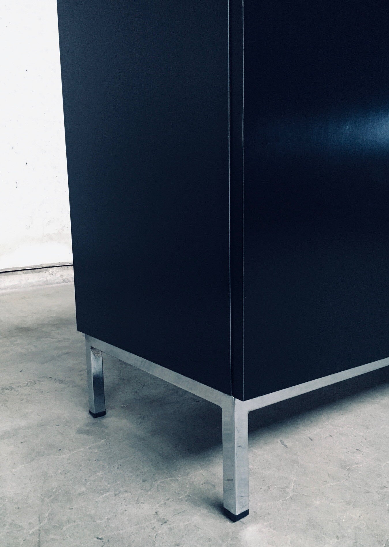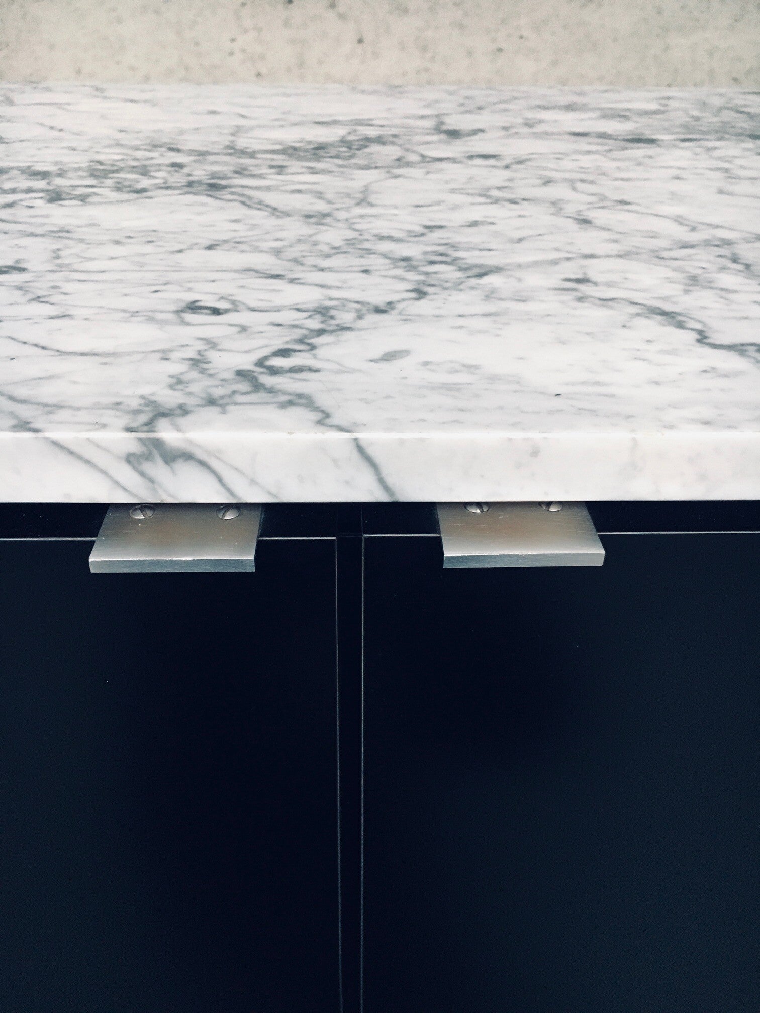 Vintage Midcentury Modern Design Credenza by Florence Knoll for Knoll International. Made in the 1970's period. A design classic from Knoll. Rare 6 door XL version in black with white solid carrara marble top. A Glass tray in the left and right parts. The middle part has no subdivisions. This cabinet comes in very good, original condition with minor wear marks for it's age and use. This measures 83,5cm high x 294cm wide x 48cm deep.