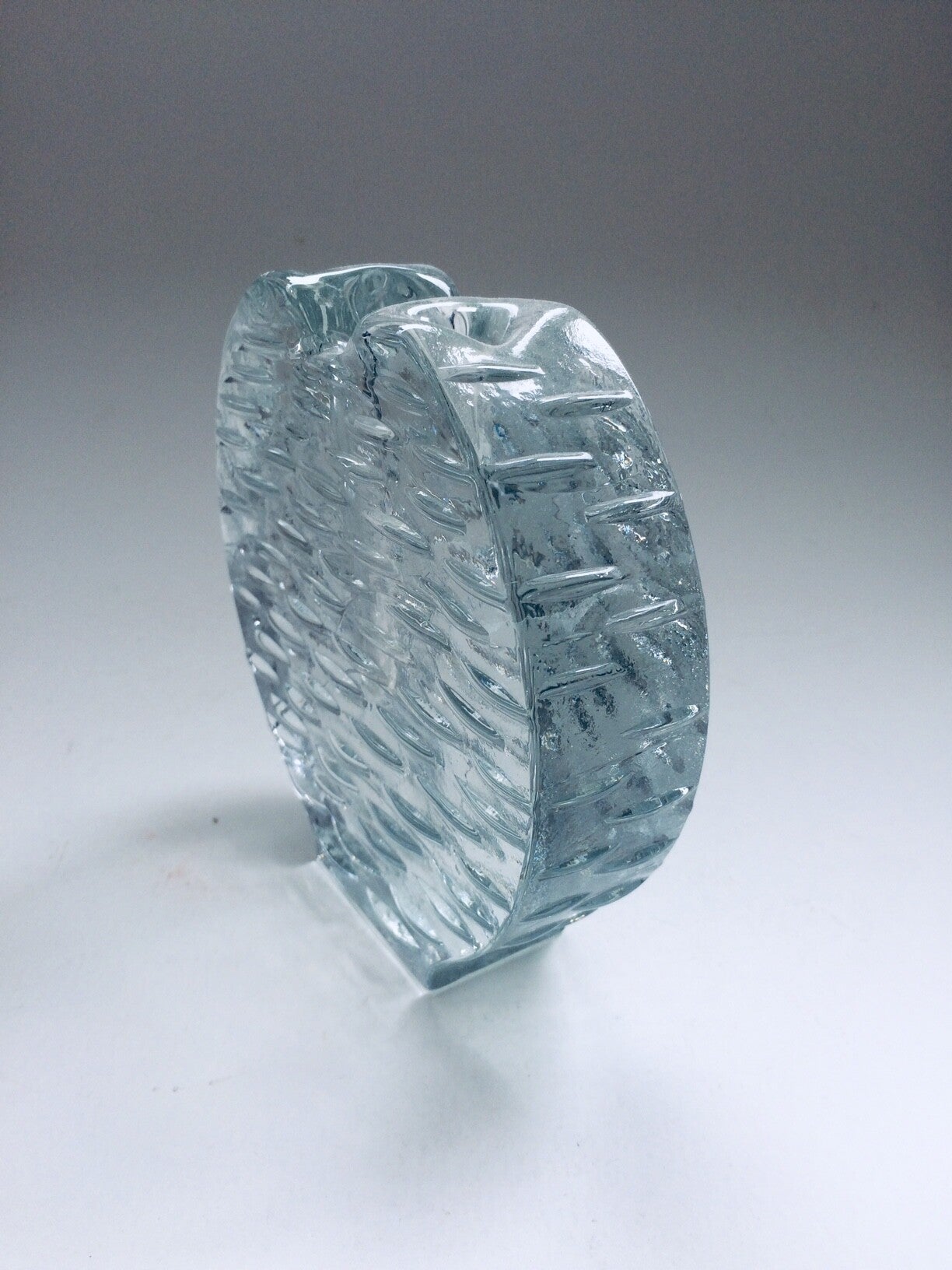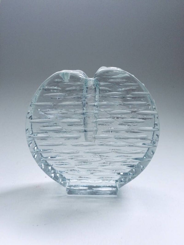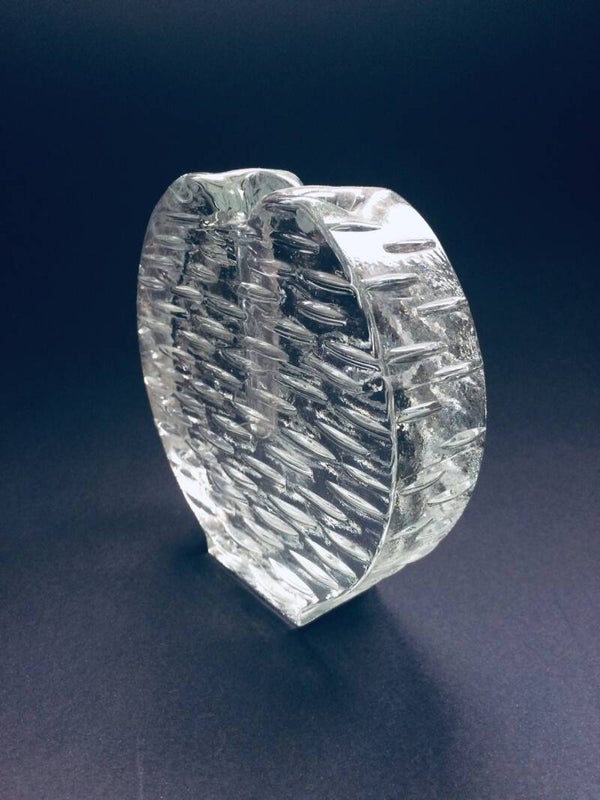 Vintage Midcentury Modern Scandinavian Design Art Glass candle holder. Finland, 1970's. In pristine condition. 15cm x 15cm x 4cm.
