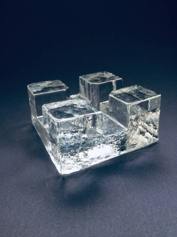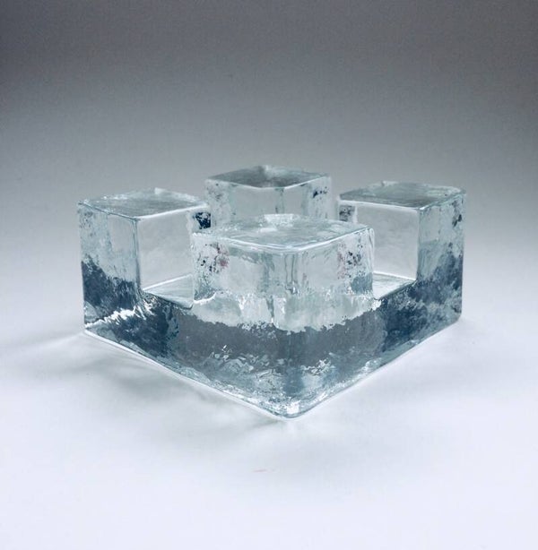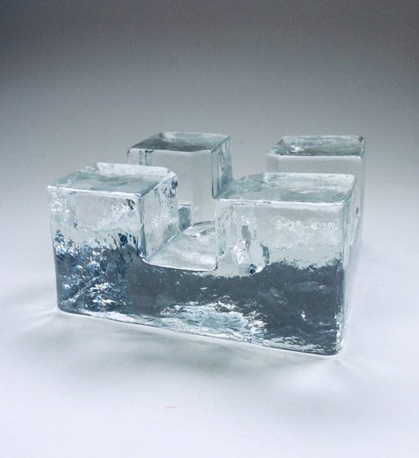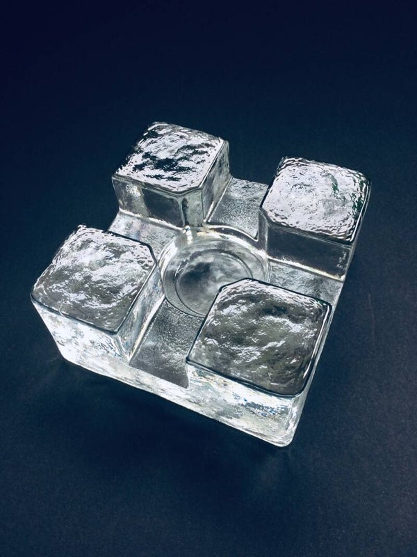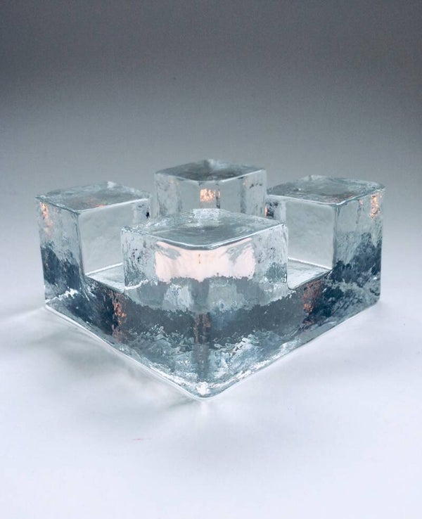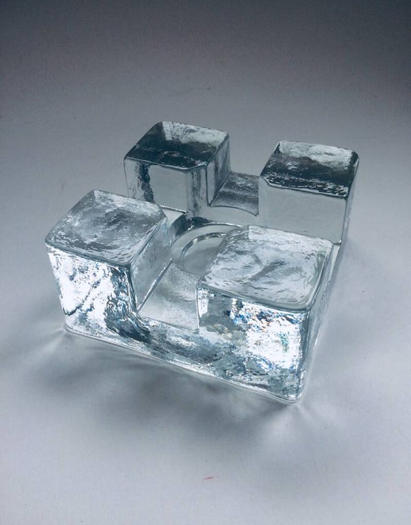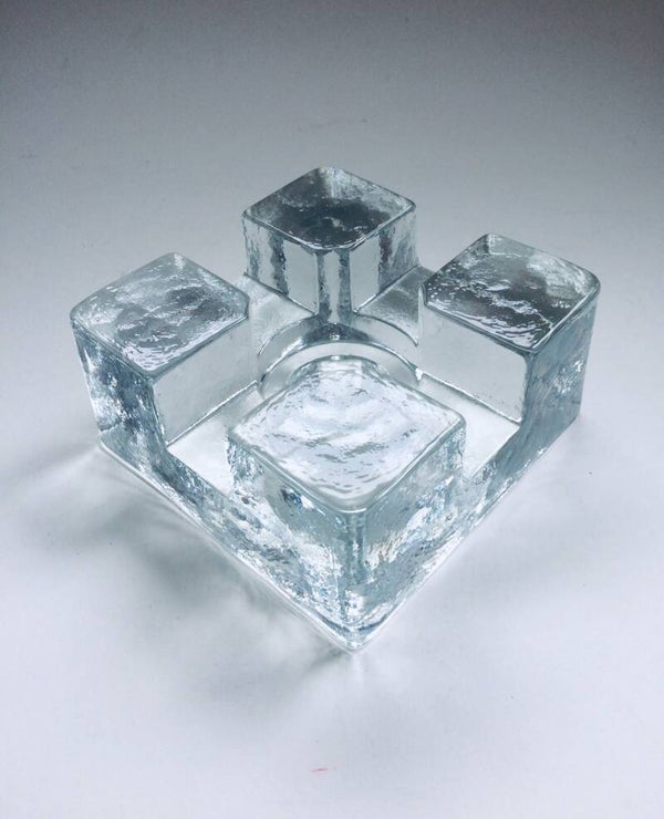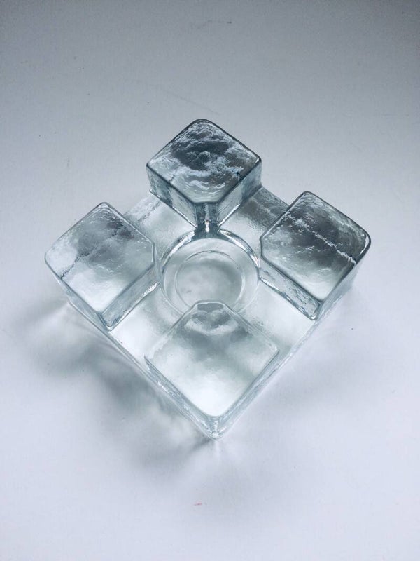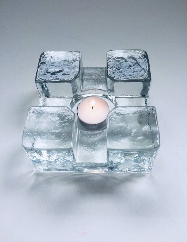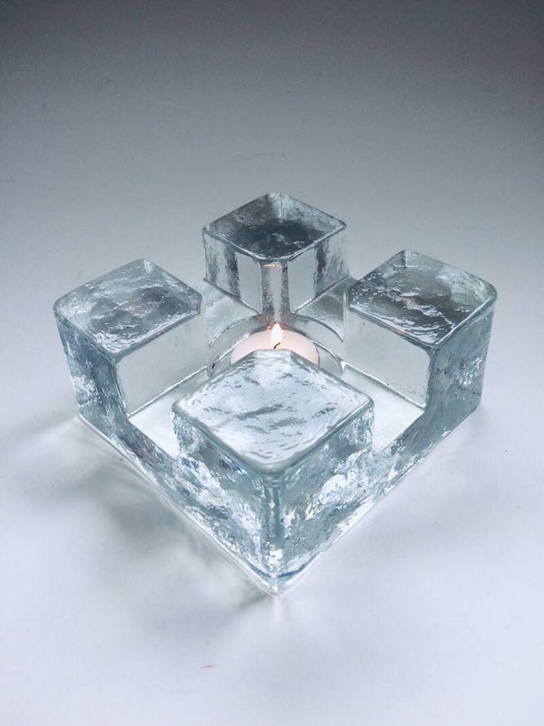 Vintage Midcentury Modern Scandinavian Design Art Glass square model tea pot warmer by Pukkeberg, Sweden, 1970's. Heavy glass object. In perfect condition. Will fit a small and a large thee candle. 13cm x 13cm x 6,5cm.