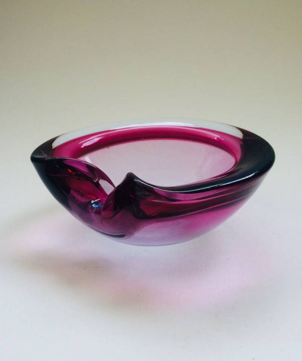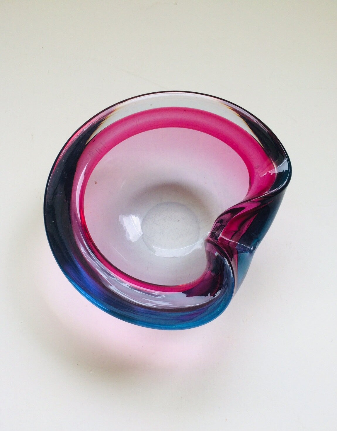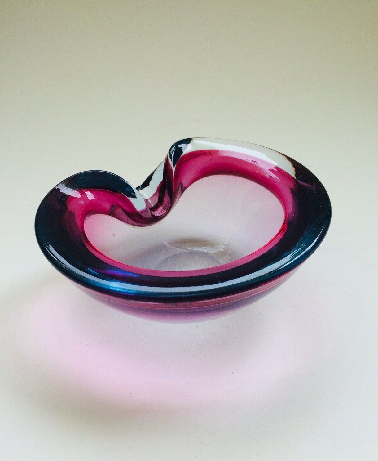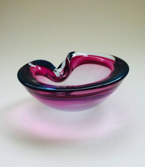 Vintage Midcentury Modern Art Glass blue & purple bowl - ashtray in Sommerso Style, Murano Italy 1960's. In very good condition. 14cm x 16cm x 6,5cm.