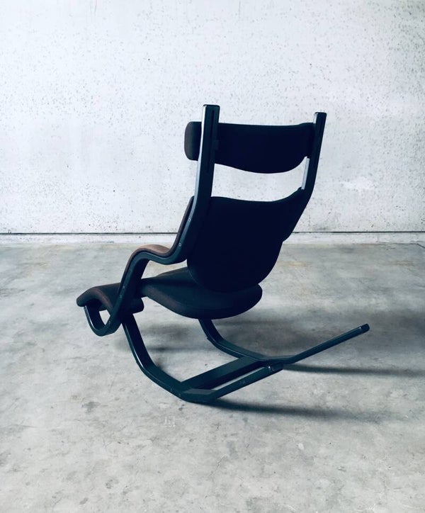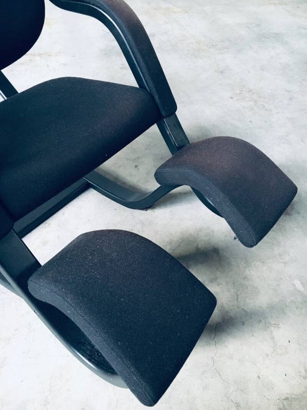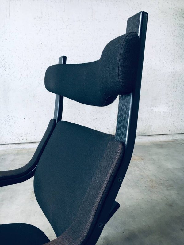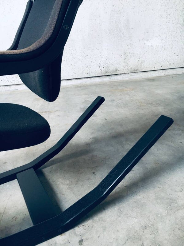 Vintage Scandinavian Ergonomical Design Balance / Rocking Chair 'ZERO GRAVITY' by Norwegian Designer Peter Opsvik for Stokke Varier. Made in Denmark, 1991 design. Black stained bentwood frame with black wool fabric. All original condition with wear and some discoloration on the fabric from it's age and use. Measures 121cm x 75cm x 141cm - Seat height (at normal setup) 44cm.