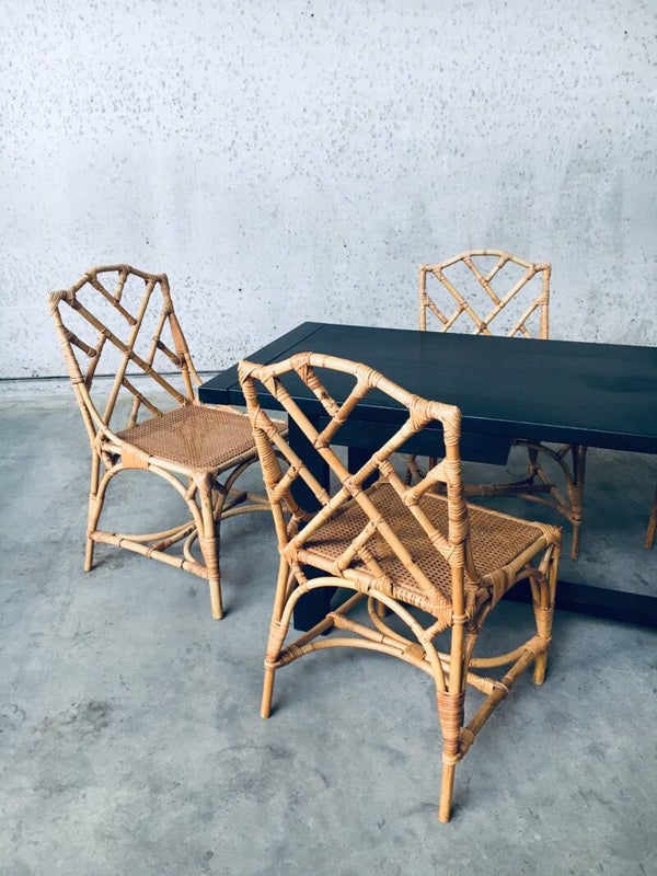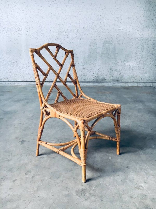 Midcentury Design Chippendale Style Bamboo Dining Chairs, 1960's Italy