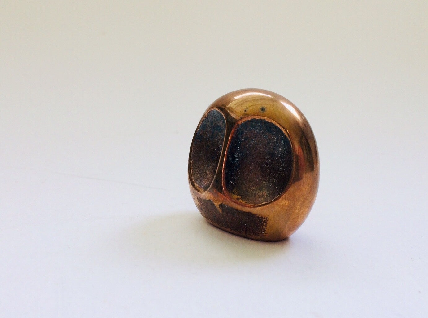 Midcentury Art Bronze Abstract Owl Sculpture by JP Martin, France 1960's. Mini sculpture in massive bronze / brass. Marked on the bottom; JP Martin. Beautifull little art piece. In very good condition. 4cm high x 4,5cm wide x 2,5cm deep.