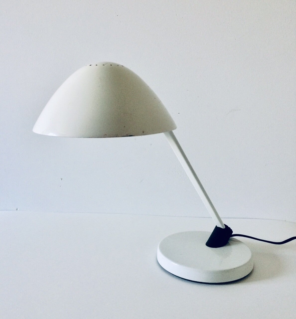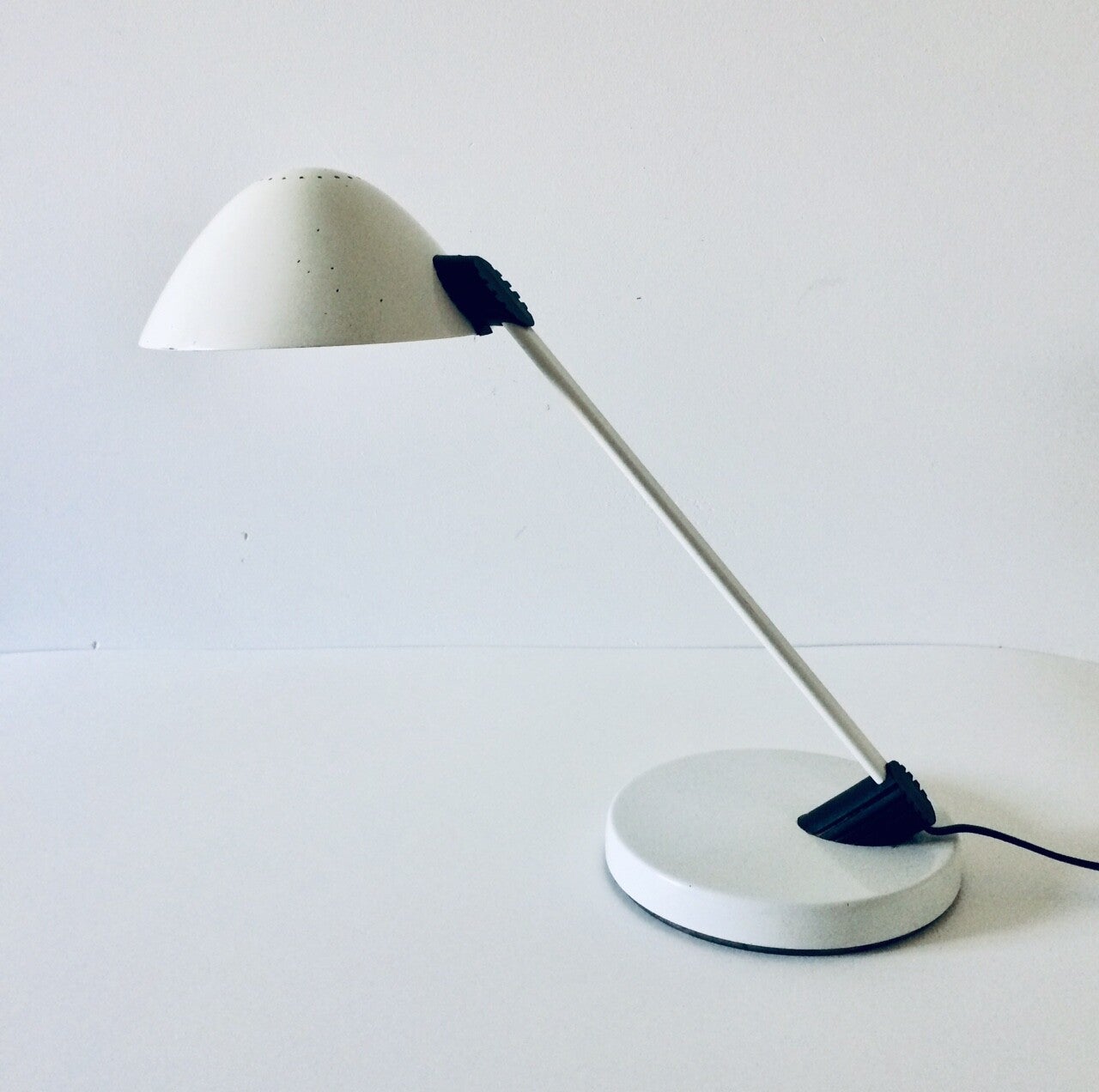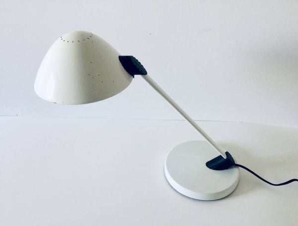 Vintage Post Modern Design white metal Desk Lamp by Vrieland, Holland 1980's. In good working condition. 39cm x 47cm x 20cm.