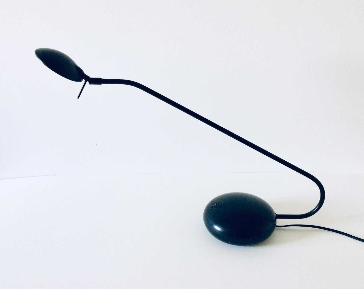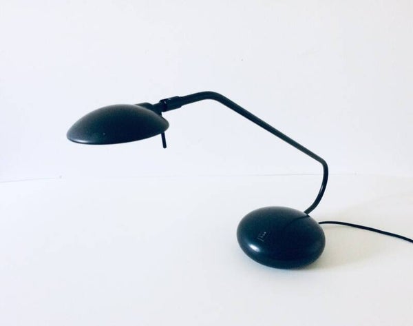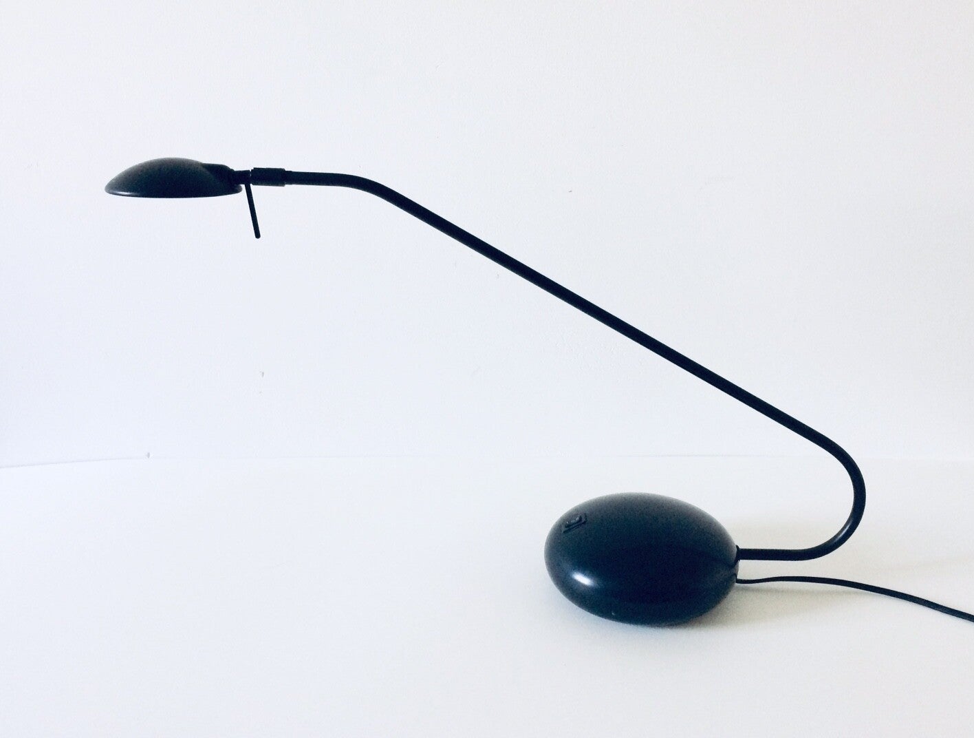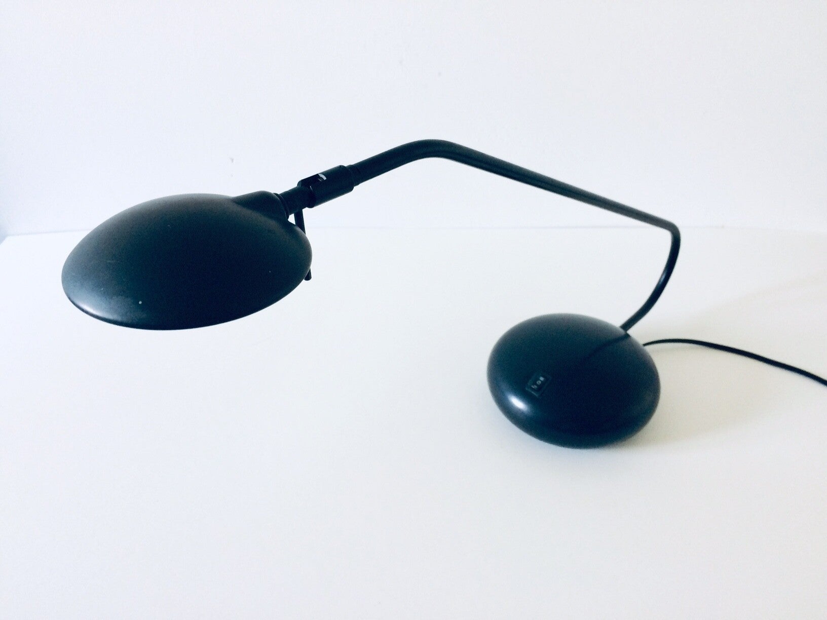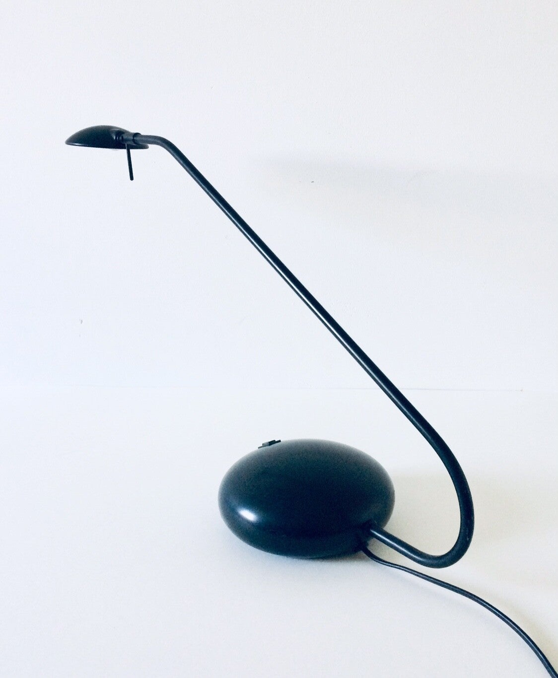 Vintage Post Modern Design Sleek black metal Desk Lamp, with adjustable lamp part. In good condition. No Markings, made in the 1980's. 35cm x 57cm x 16cm.