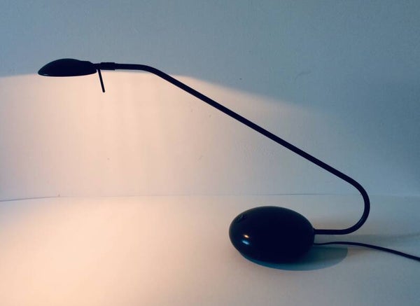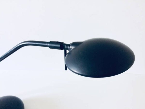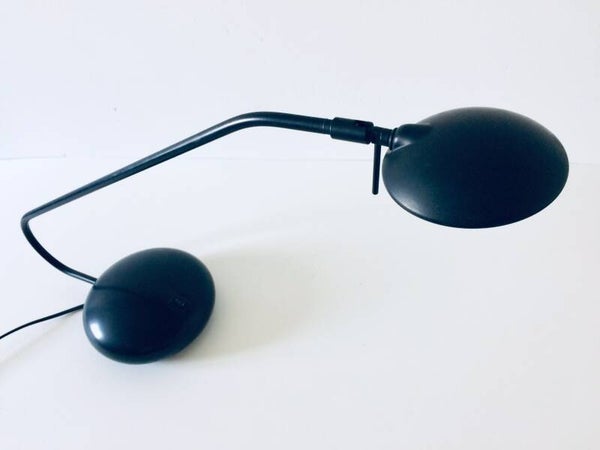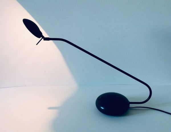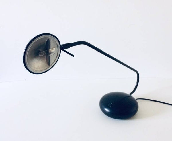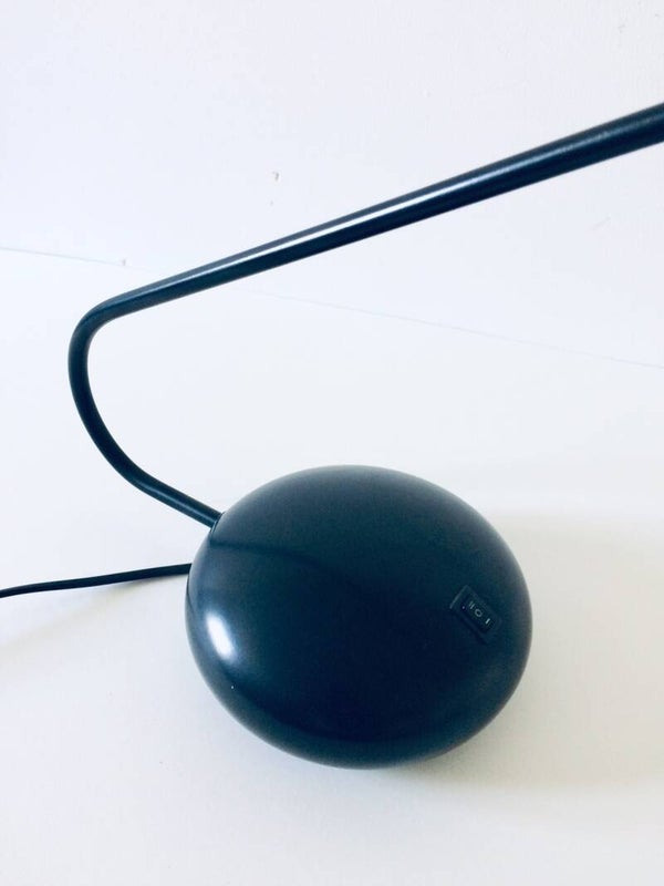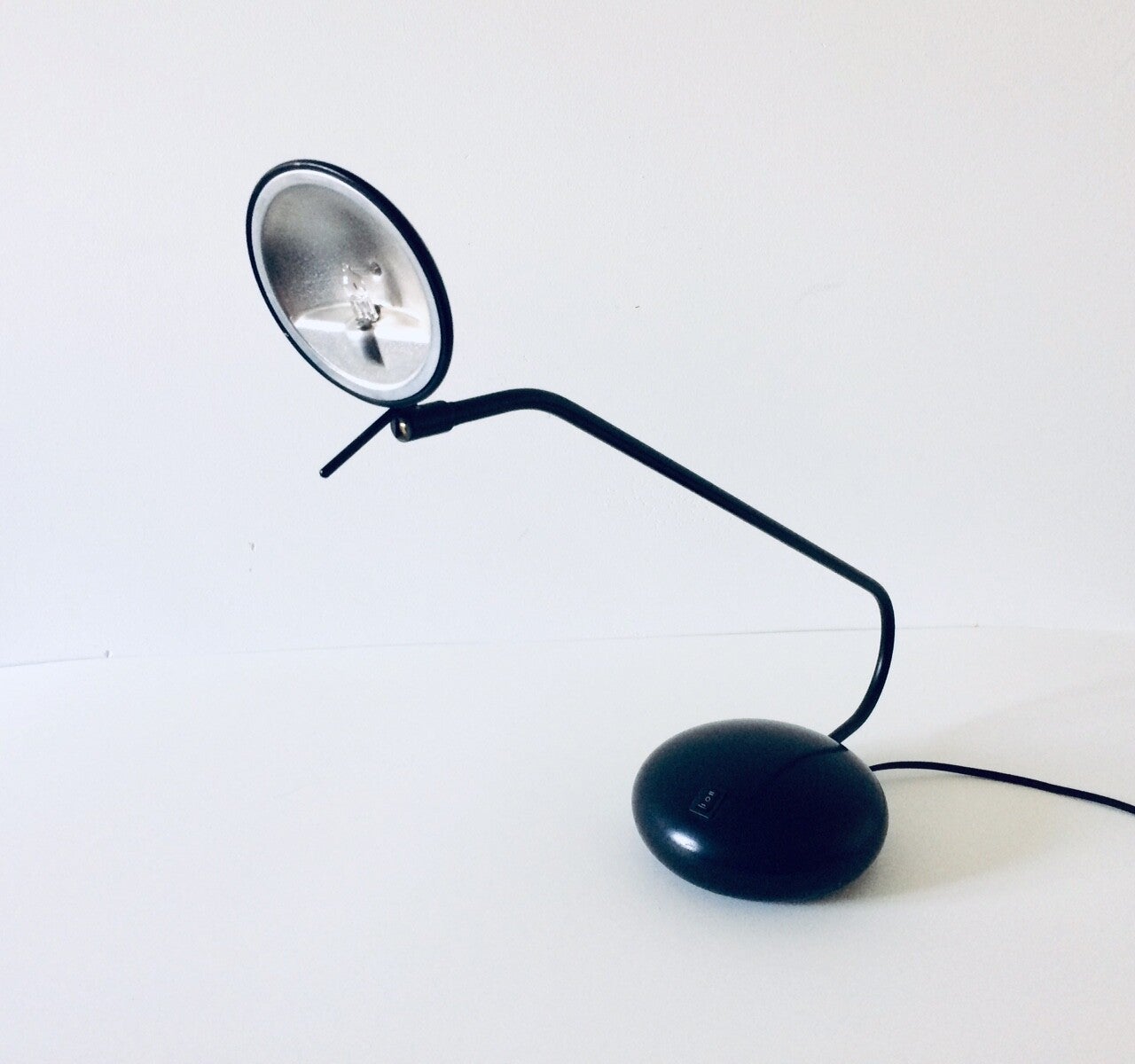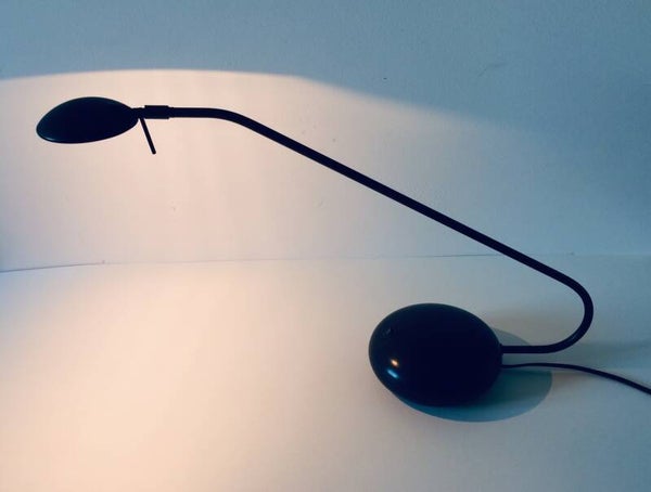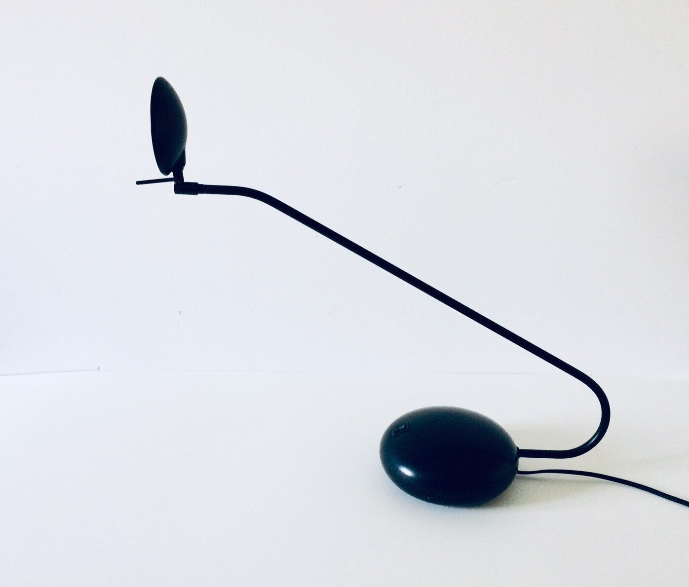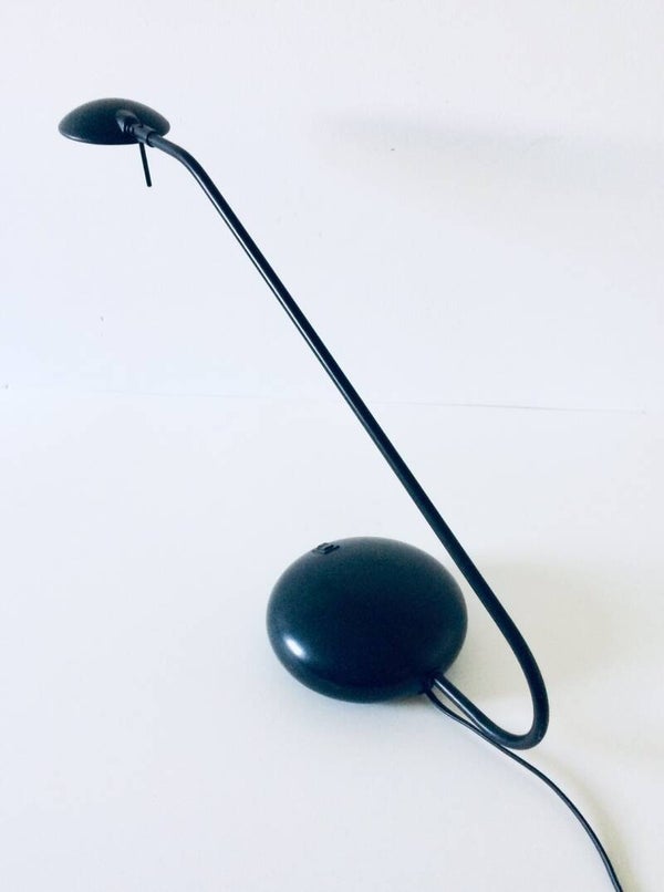 Vintage Post Modern Design Sleek black metal Desk Lamp, with adjustable lamp part. In good condition. No Markings, made in the 1980's. 35cm x 57cm x 16cm.