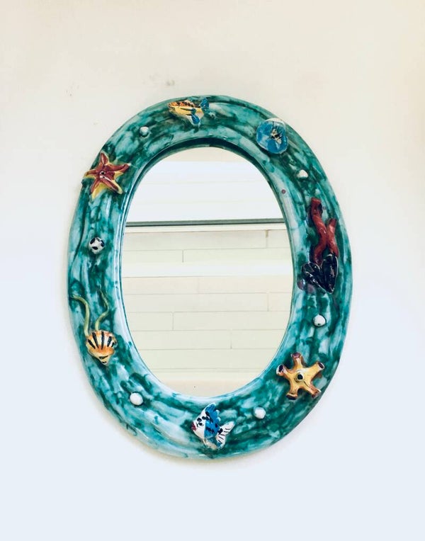 Vintage Art Ceramics 'Ocean' Oval Wall Mirror by Supercasa, Italy 1960's