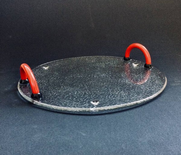 Vintage Postmodern Modern Design Ice Glass with red plastic handles Serving Tray. Made in the 1980's. In very good condition. 32,5cm x 32,5cm x 7cm.
