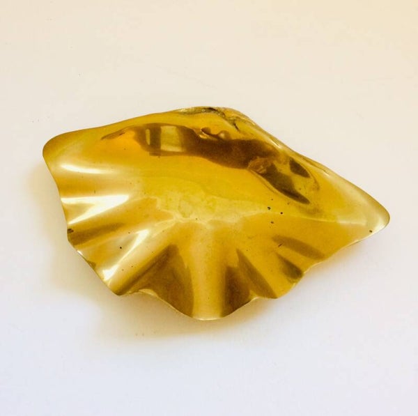 Vintage Hollywood Regency Style Brass Shell Vide-Poche, made in Korea 1970's -80's. In good condition. 23cm x 16cm x 5cm.