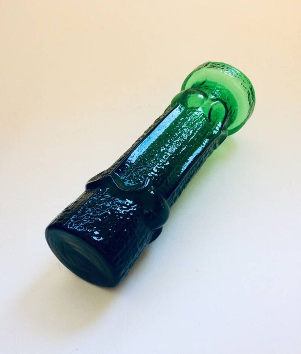Vintage Midcentury Modern Scandinavian Design Art Glass large flower vase in green. Made in Finland or Denmark, 1960's. A Rare model Vase. Bark structure with flower motive. Mold pressed. No marking. In pristine condition. 33cm x 11,5cm x 11,5cm.