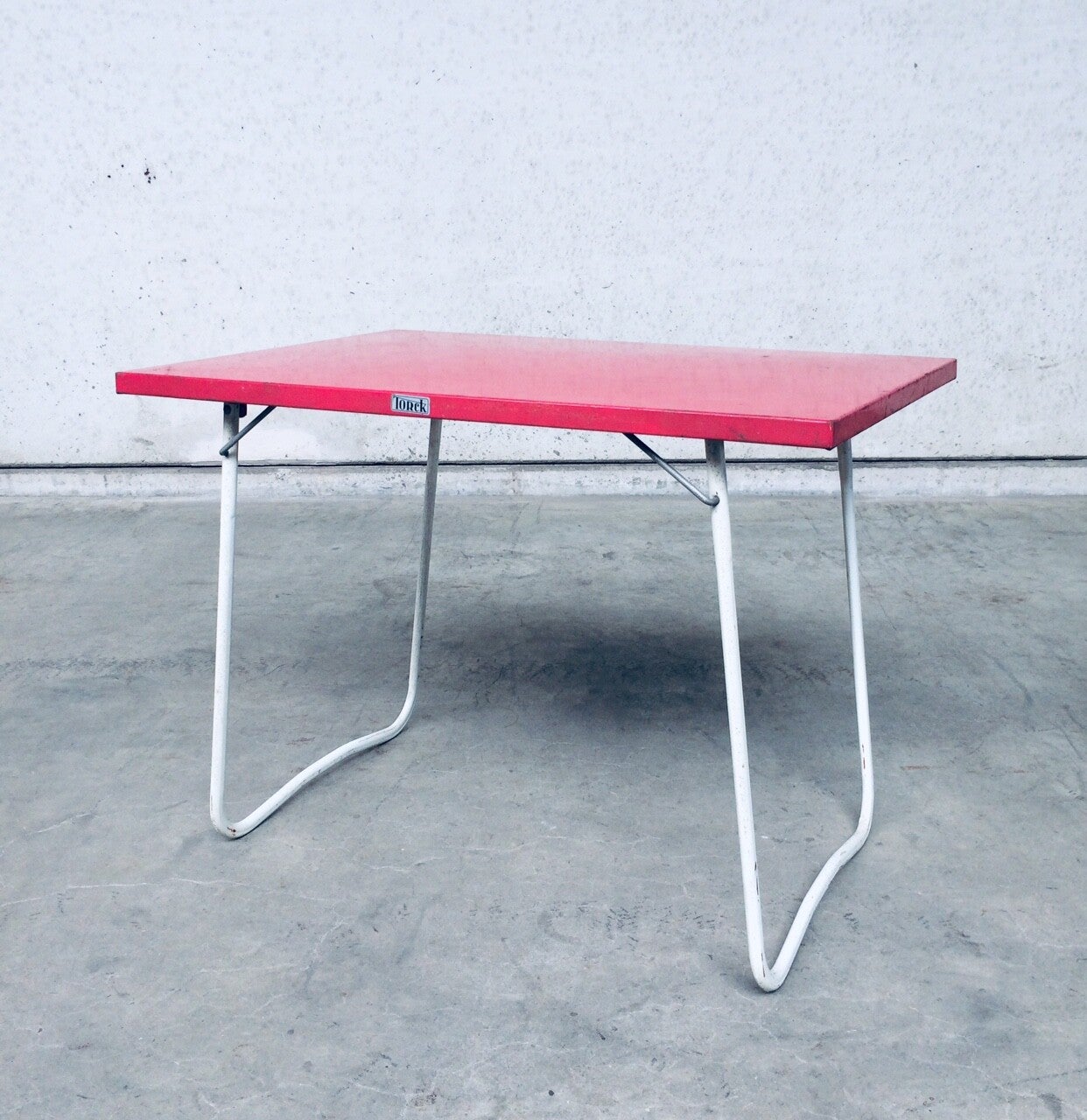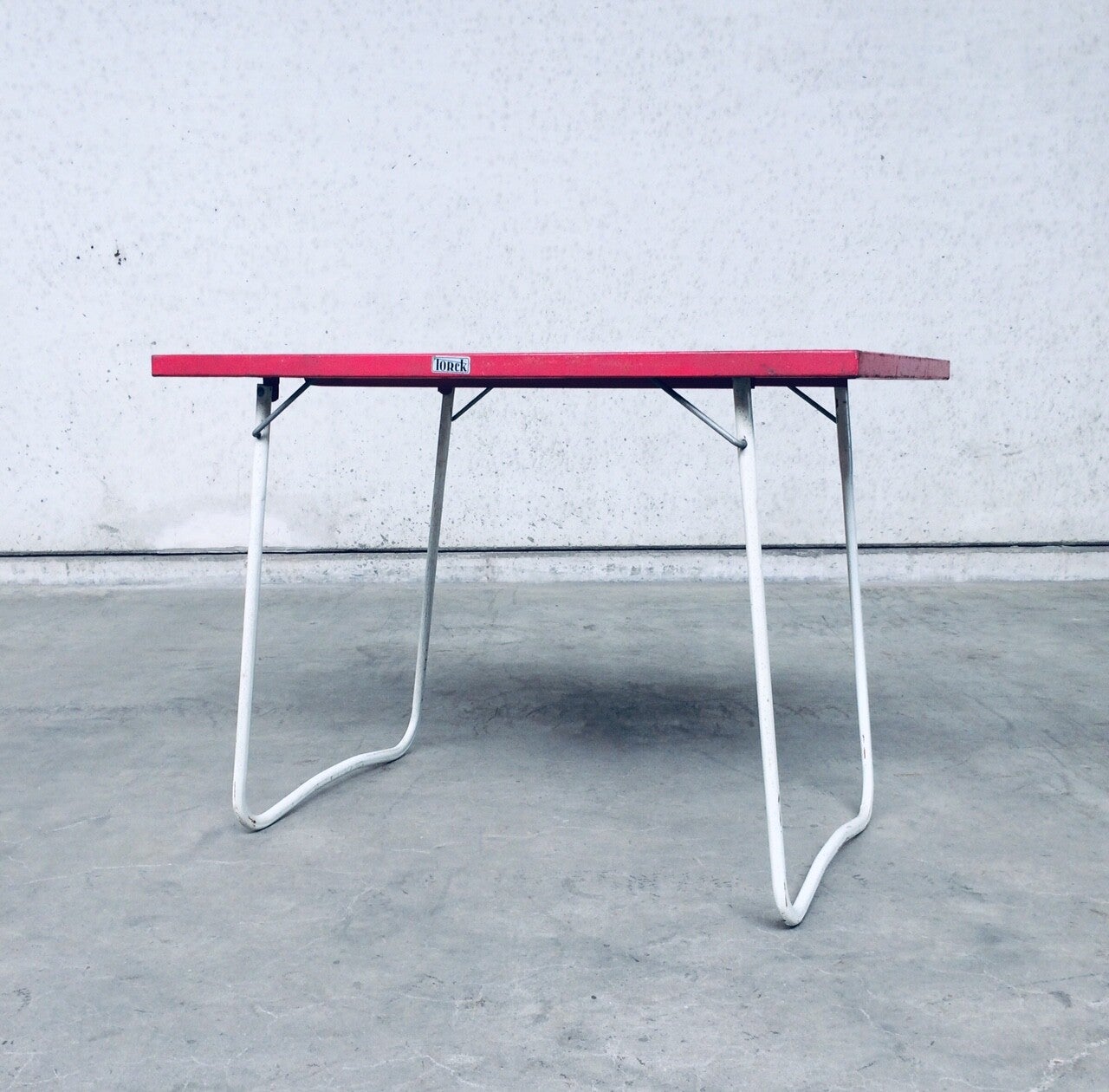 Vintage 1950's Design metal foldable garden picnic camping table by Torck, Belgium. Marked on both sides; Torck. All metal construction. In good condition. 90cm x 60cm x 66cm.