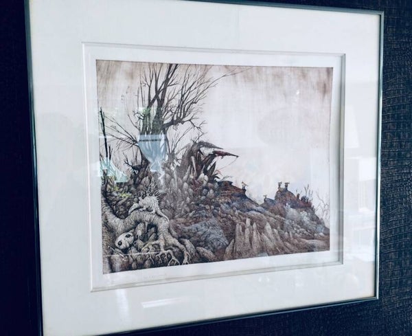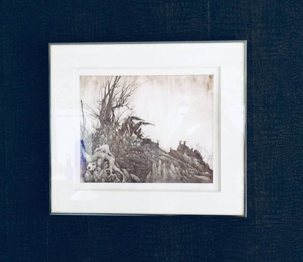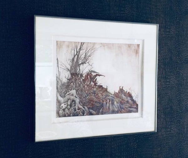 Original Art Etching Print "De Voorhoede" by Jef Bertels, Belgium 1988. Signed and numberd; 3/10. Superbly framed in quality passe-partout and dark bronze color metal frame. Print measures:42cm x 34cm. Frame measures: 62,5cm x 55xm x 2,5cm.