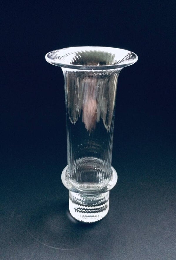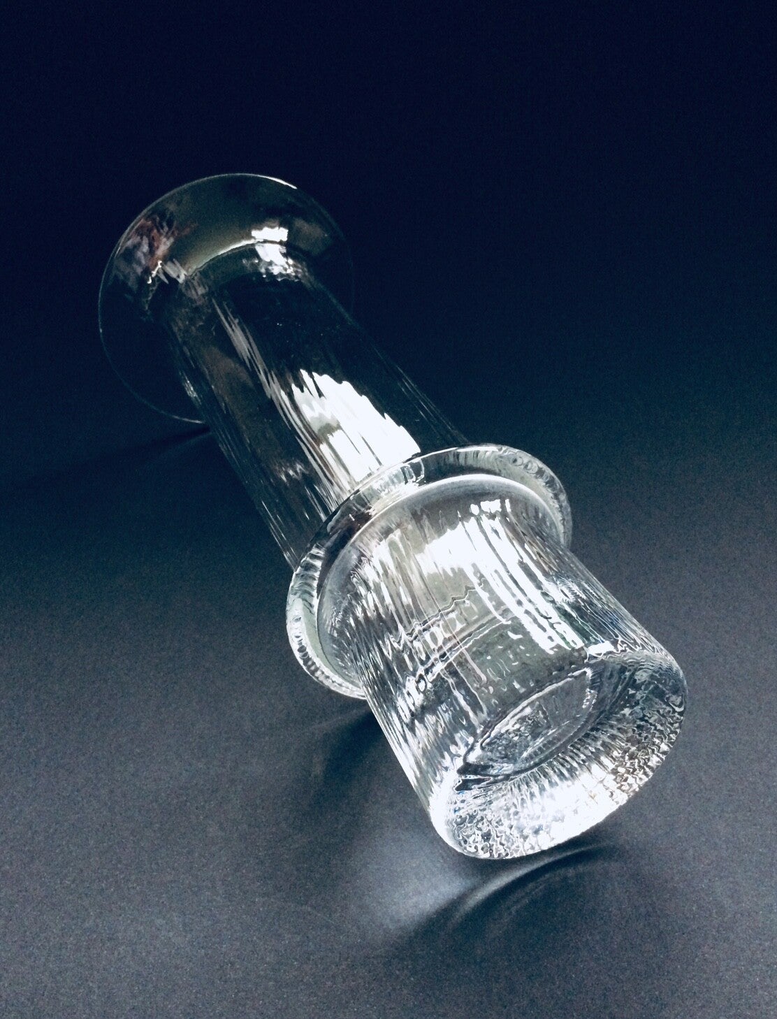 Vintage Midcentury Modern Scandinavian Design Hooped clear glass flower vase, 1970's. In pristine condition. 27cm x 11,5cm x 11,5cm.