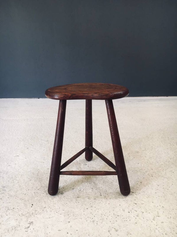 Vintage Original Artisan Made Handcrafted Kidney Shape Tripod Stool. Made in France, early 20th Century, 1920's period. Solid oak wood constructed stool. This comes in very good condition with normal signs of wear from it's use and age. This measures 47,5cm x 38cm x 28cm.