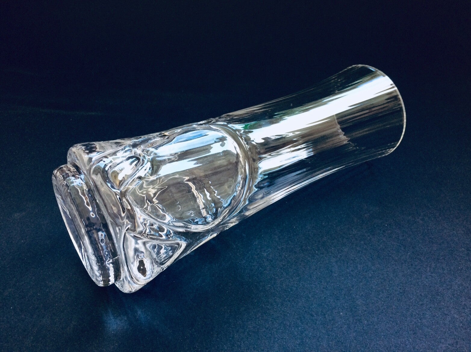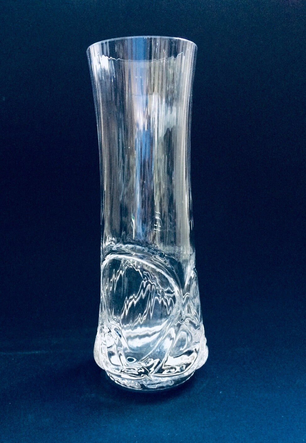 Vintage Midcentury Modern Scandinavian Design clear heavy glass flower vase. Made in the 1970's, Finland. In very good condition. 27,5cm x 10cm x 10cm.
