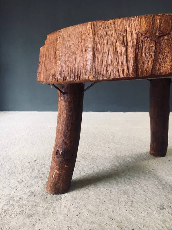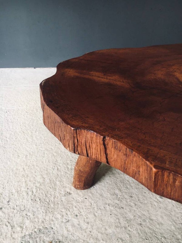 1960's Hand Crafted Tripod Teak Tree Trunk Coffee Table