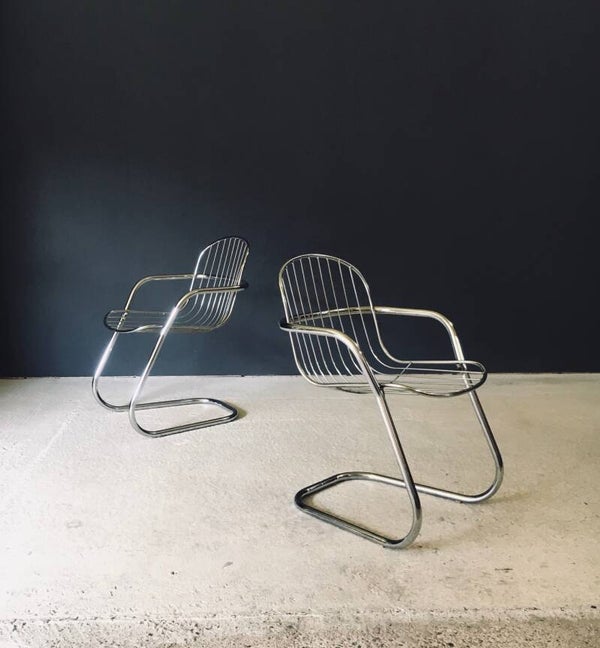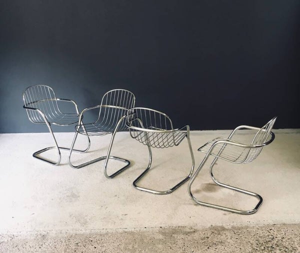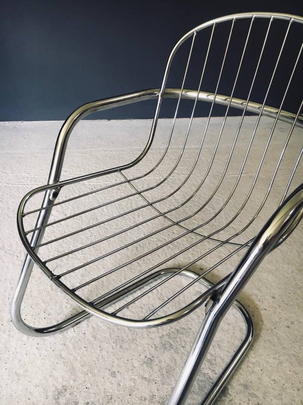 Midcentury Modern Design Chrome Dining Chairs by Gastone Rinaldi, Italy 1970's