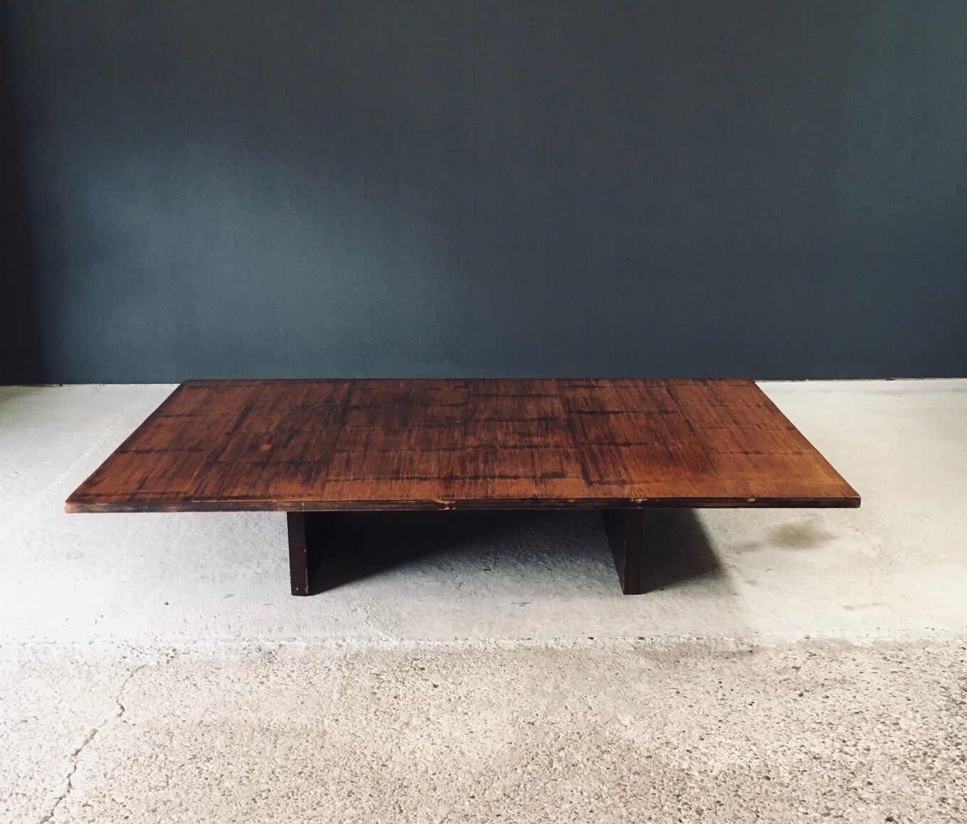 Vintage Postmodern Design Coffee Table in Bamboo by Axel Vervoordt. Made in Belgium, 1980's / 90's period. Classic Axel Vervoordt design low coffee table. Mixed wood base with bamboo covered top. This table comes in all original condition. Shows wear from it's use and age at the borders. Measures 34,5cm x 179cm x 116,5cm.
