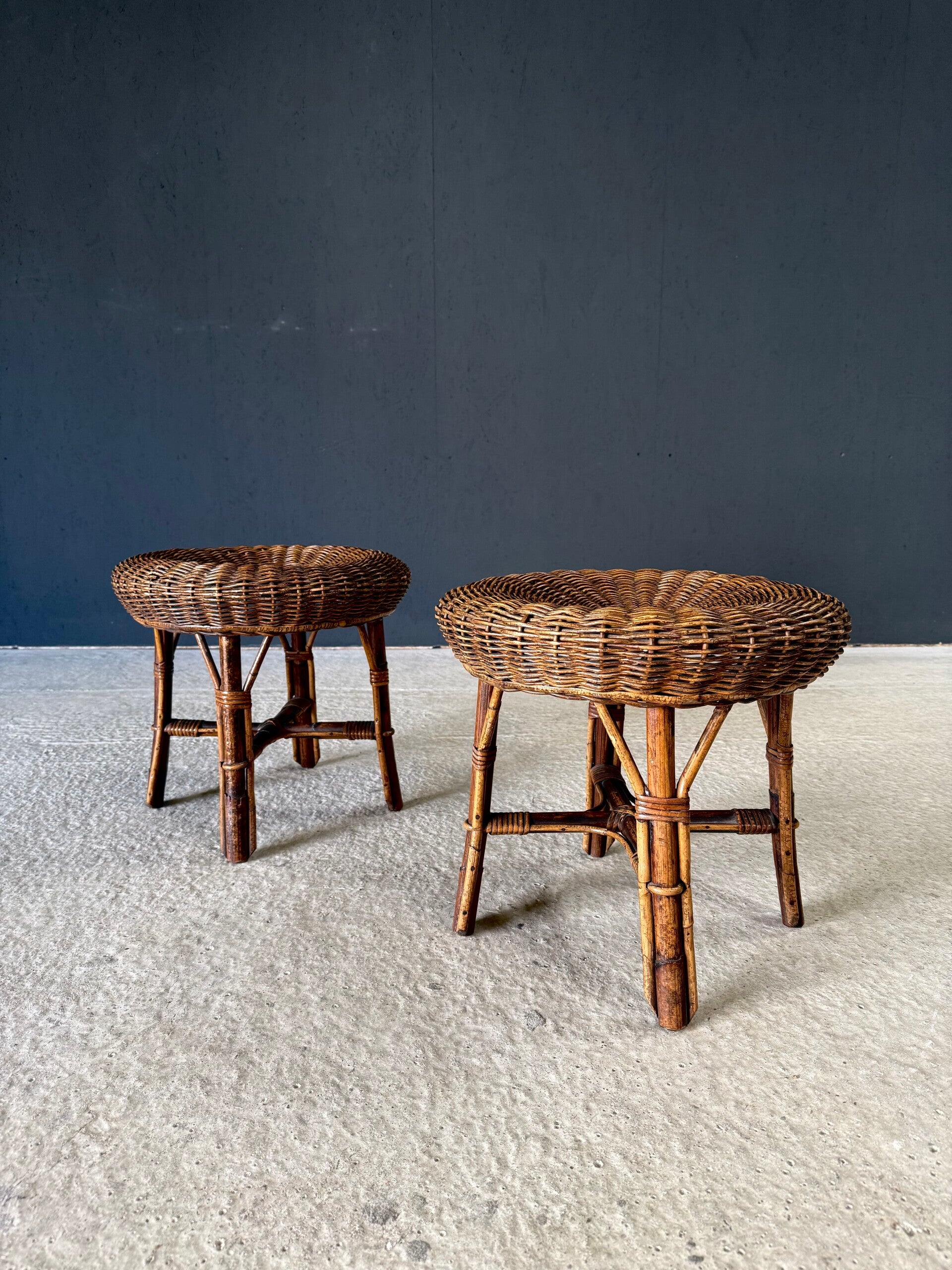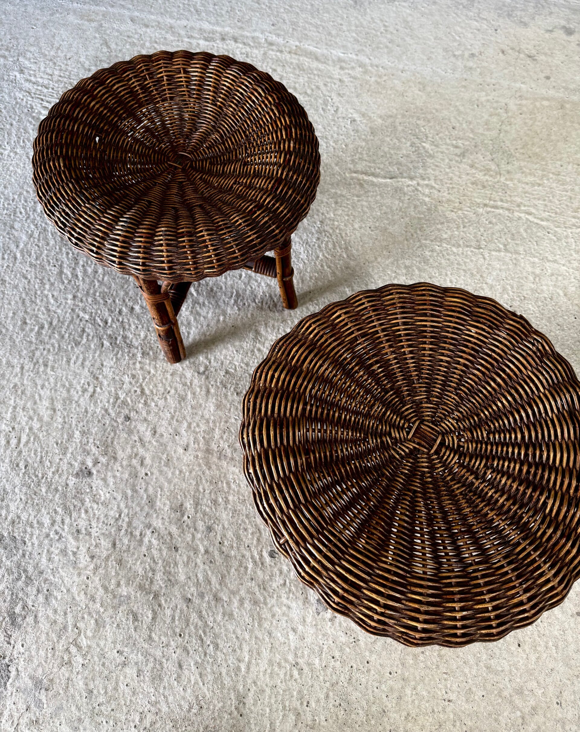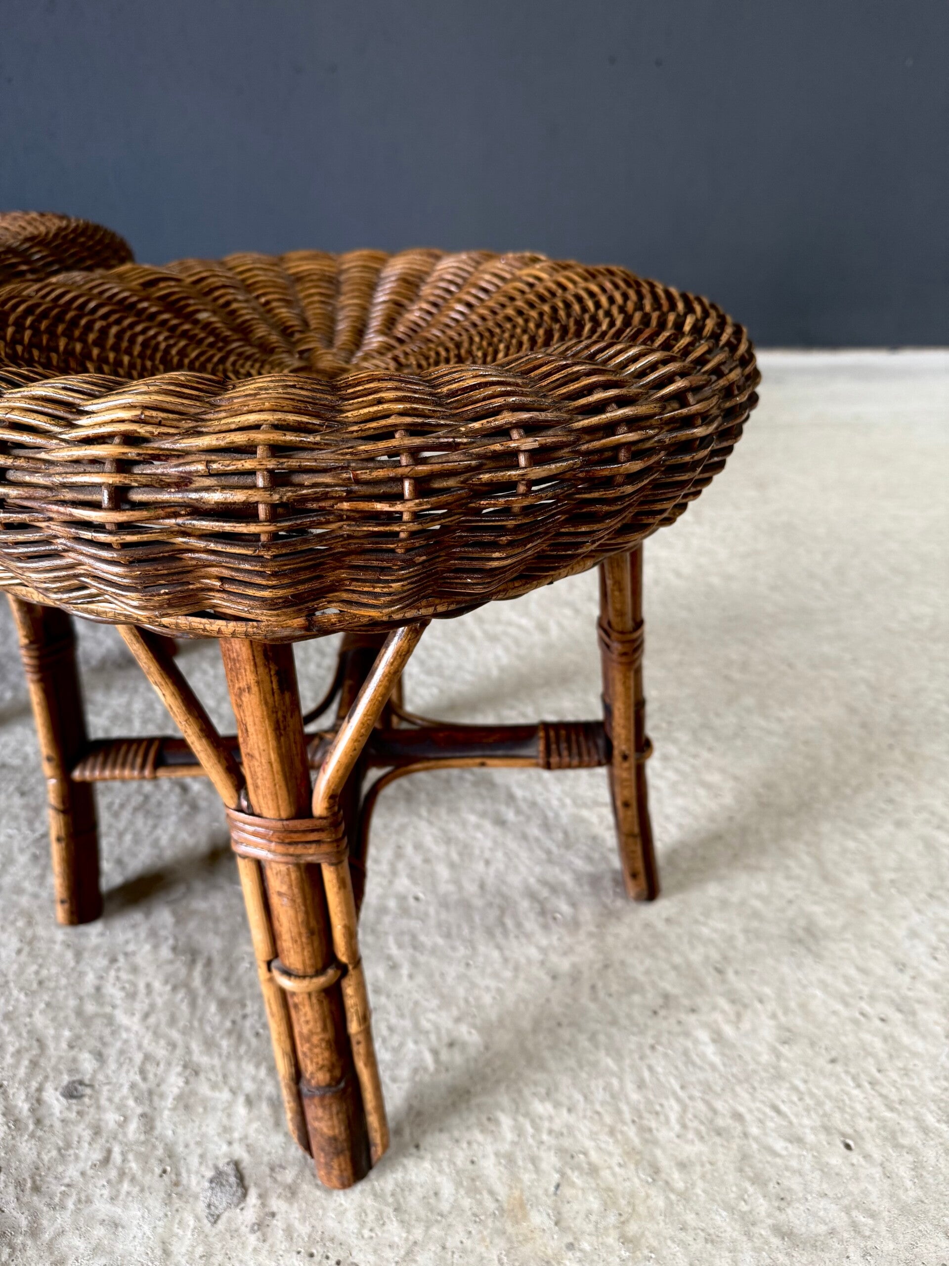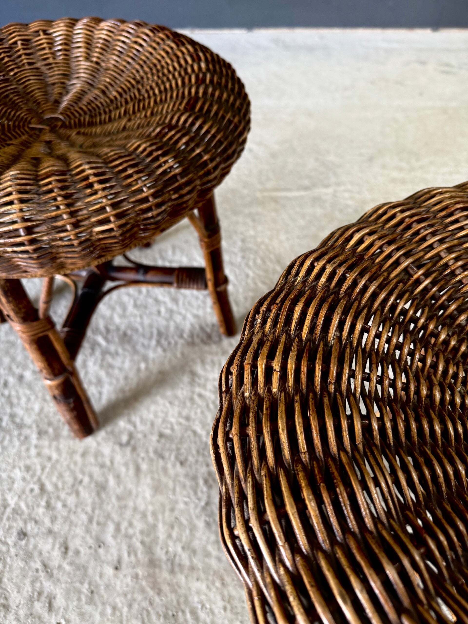 Boho Design Bamboo & Rattan Low Stools, Italy 1960's