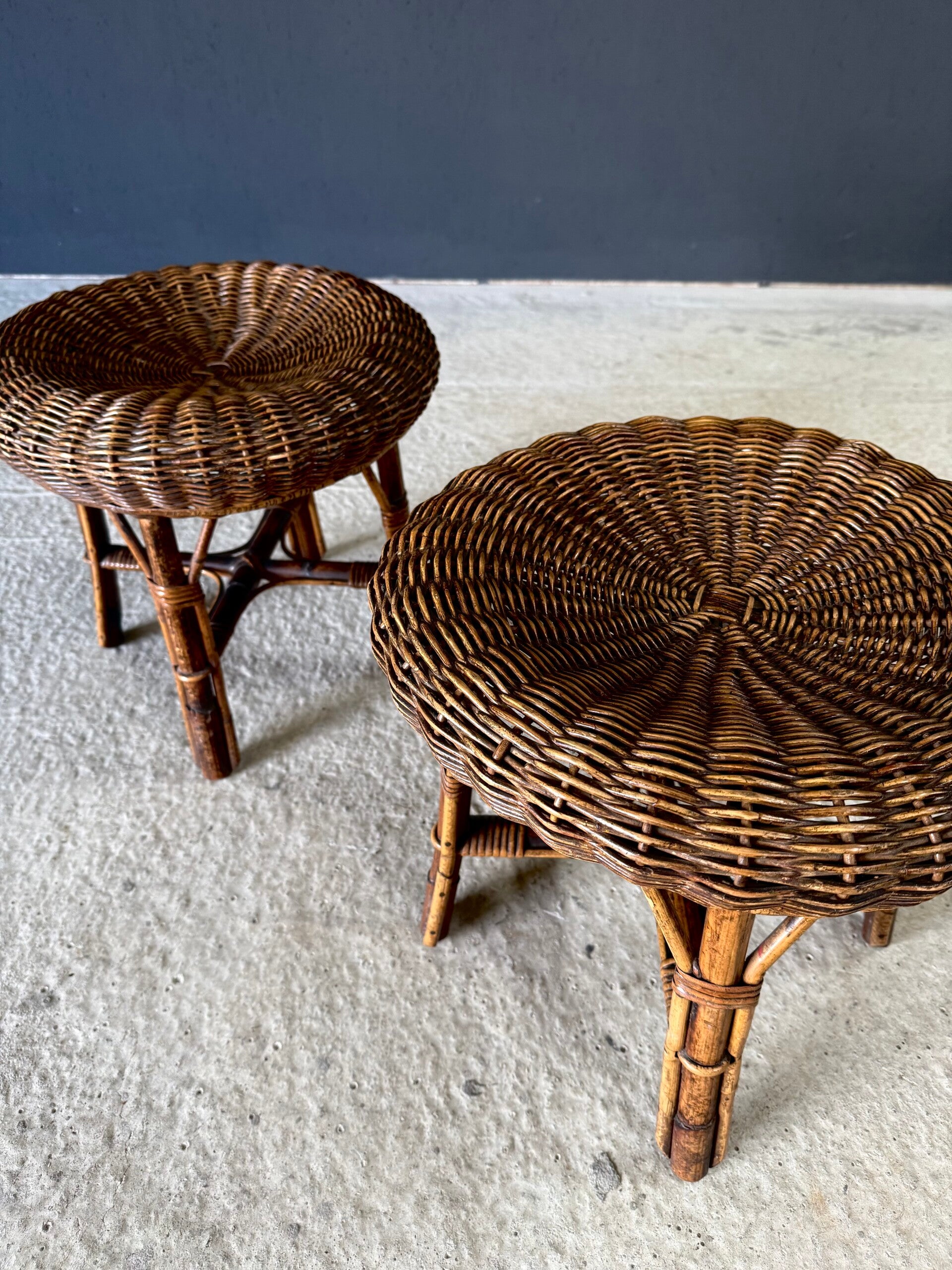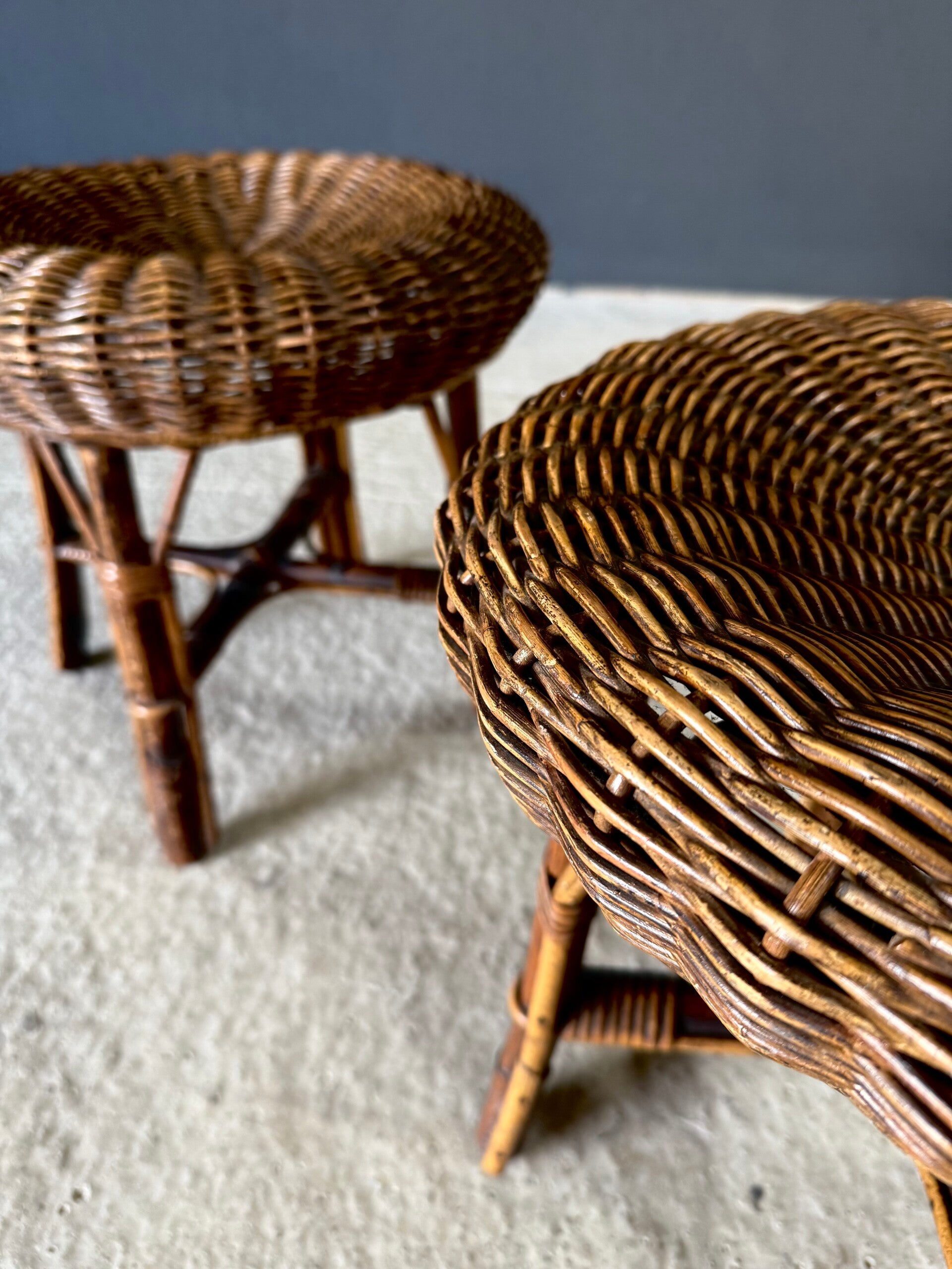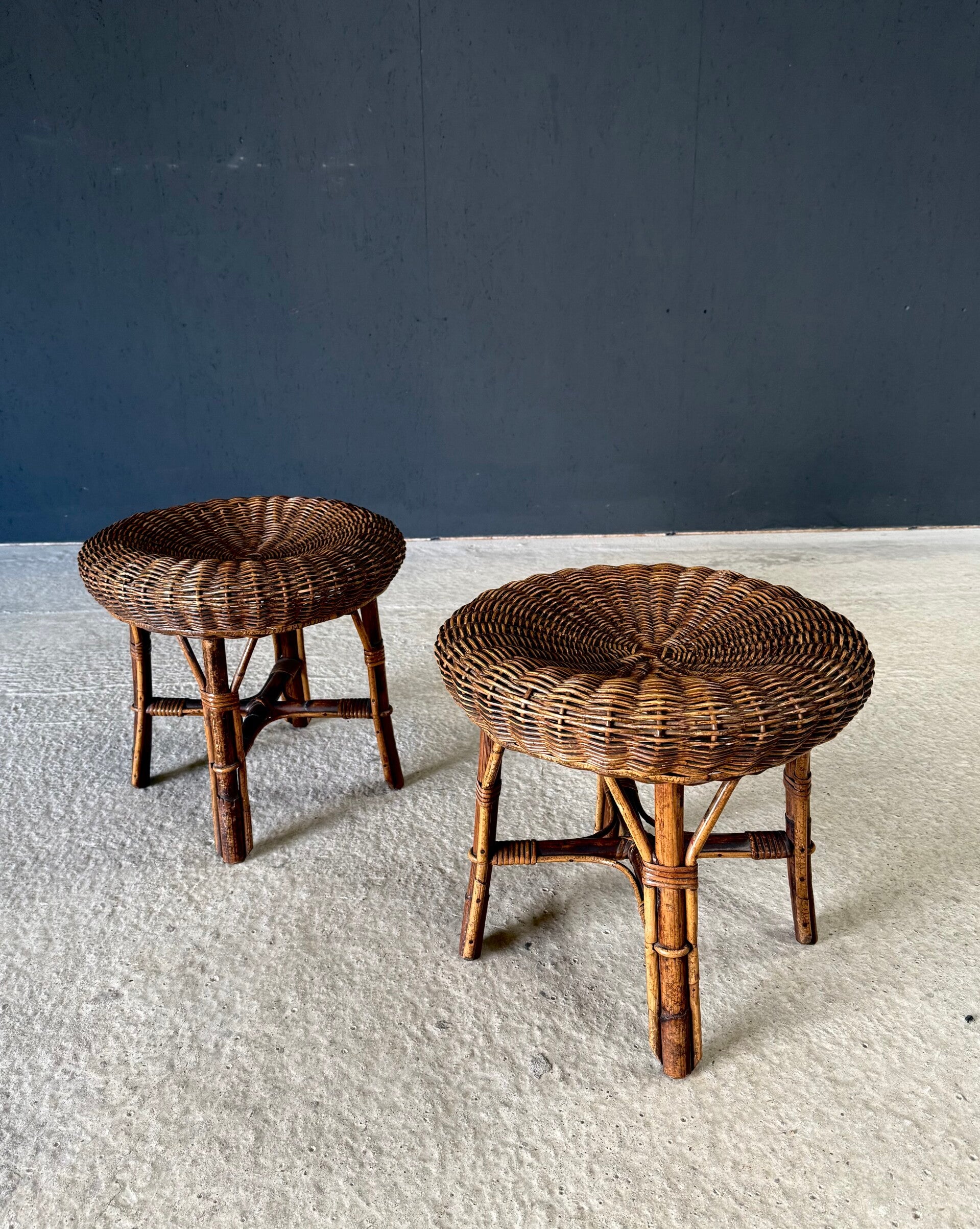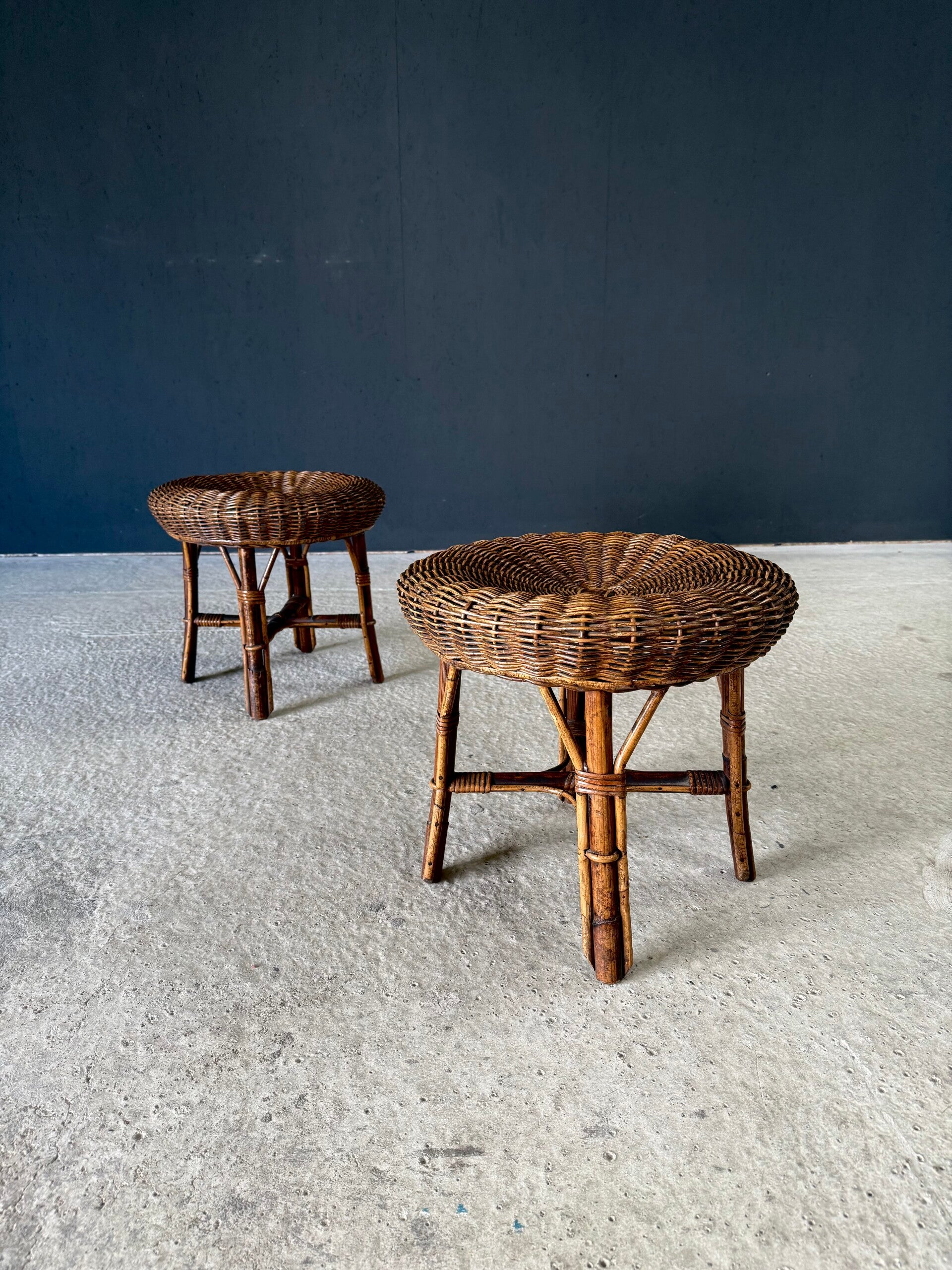 Boho Design Bamboo & Rattan Low Stools, Italy 1960's