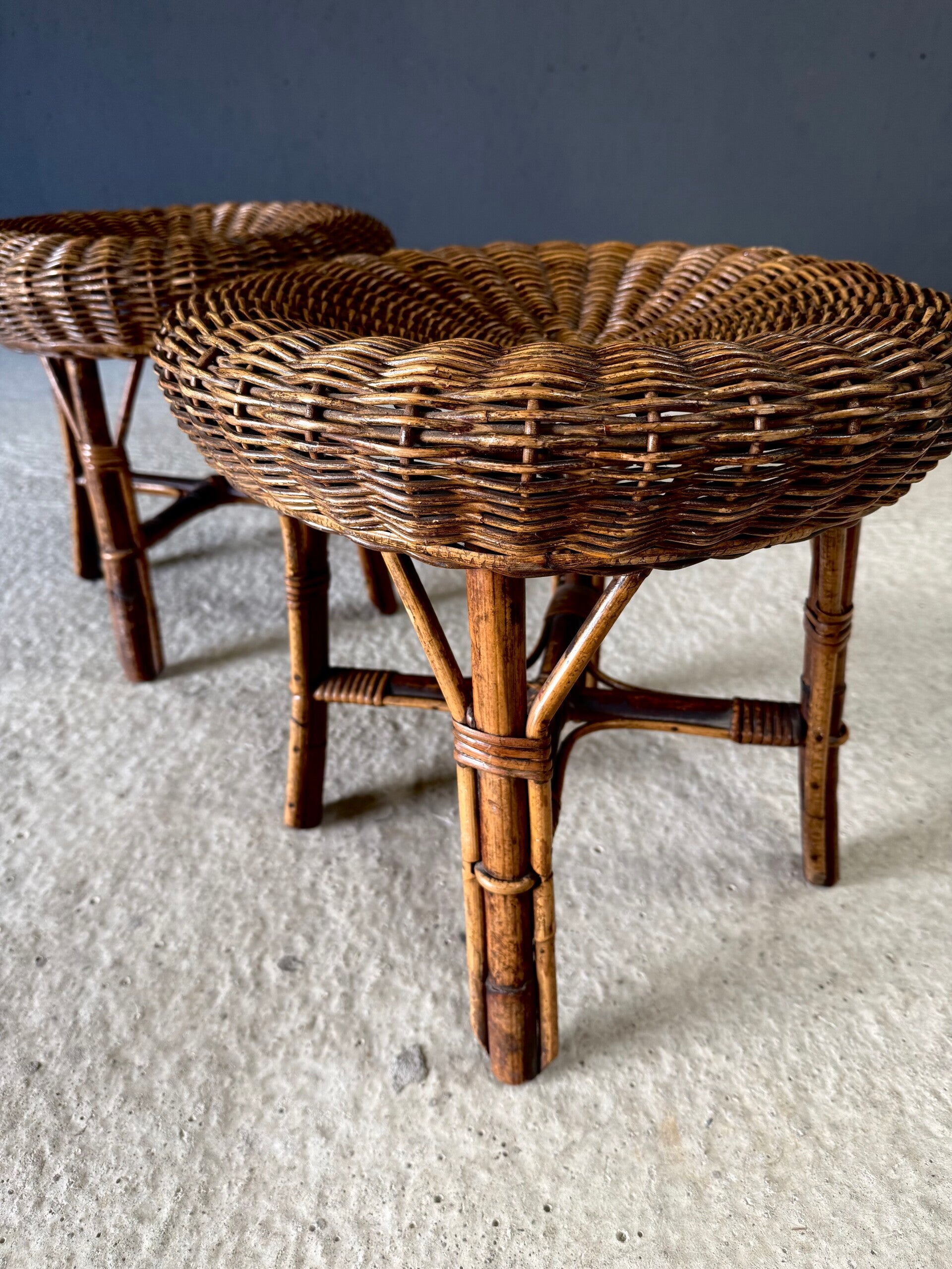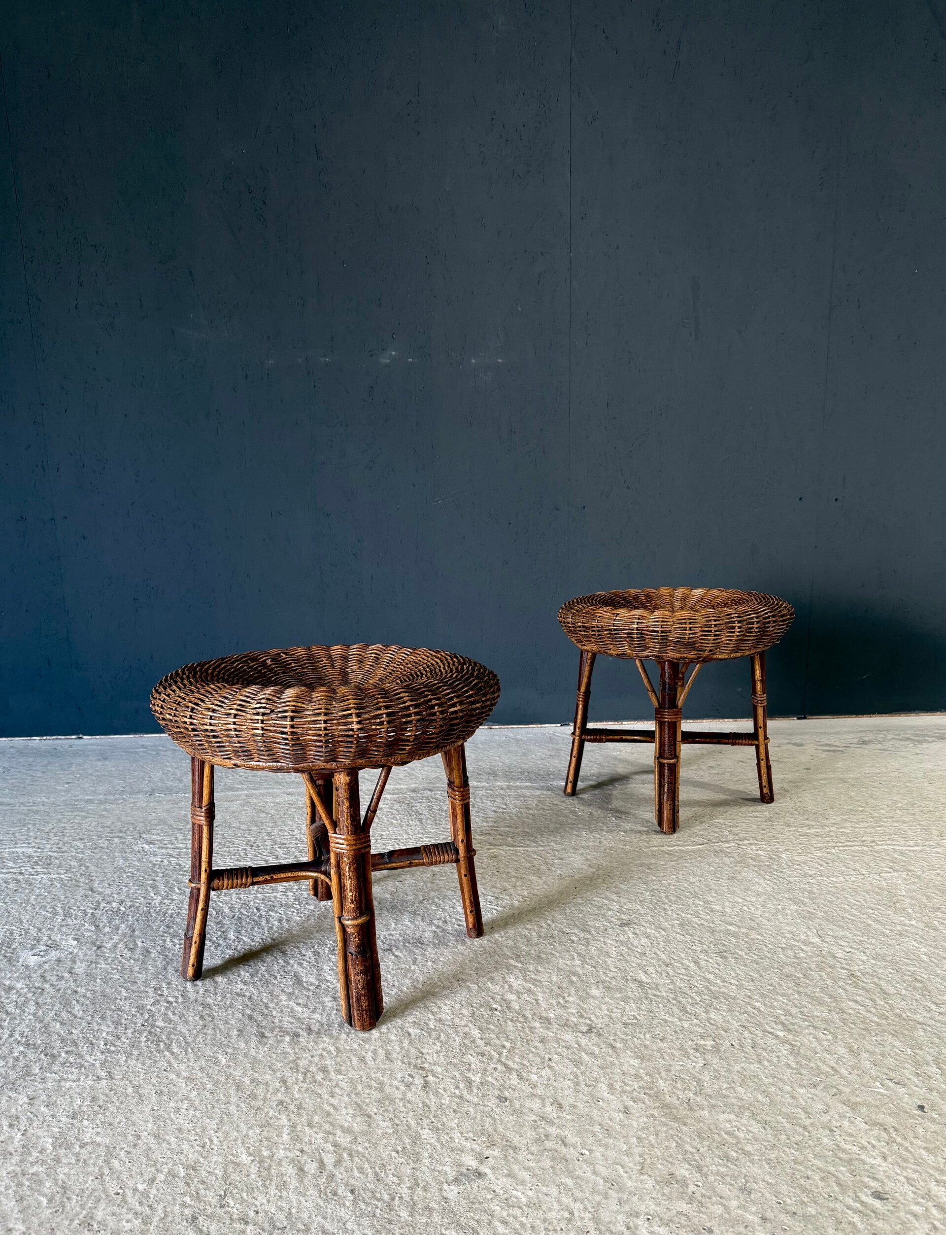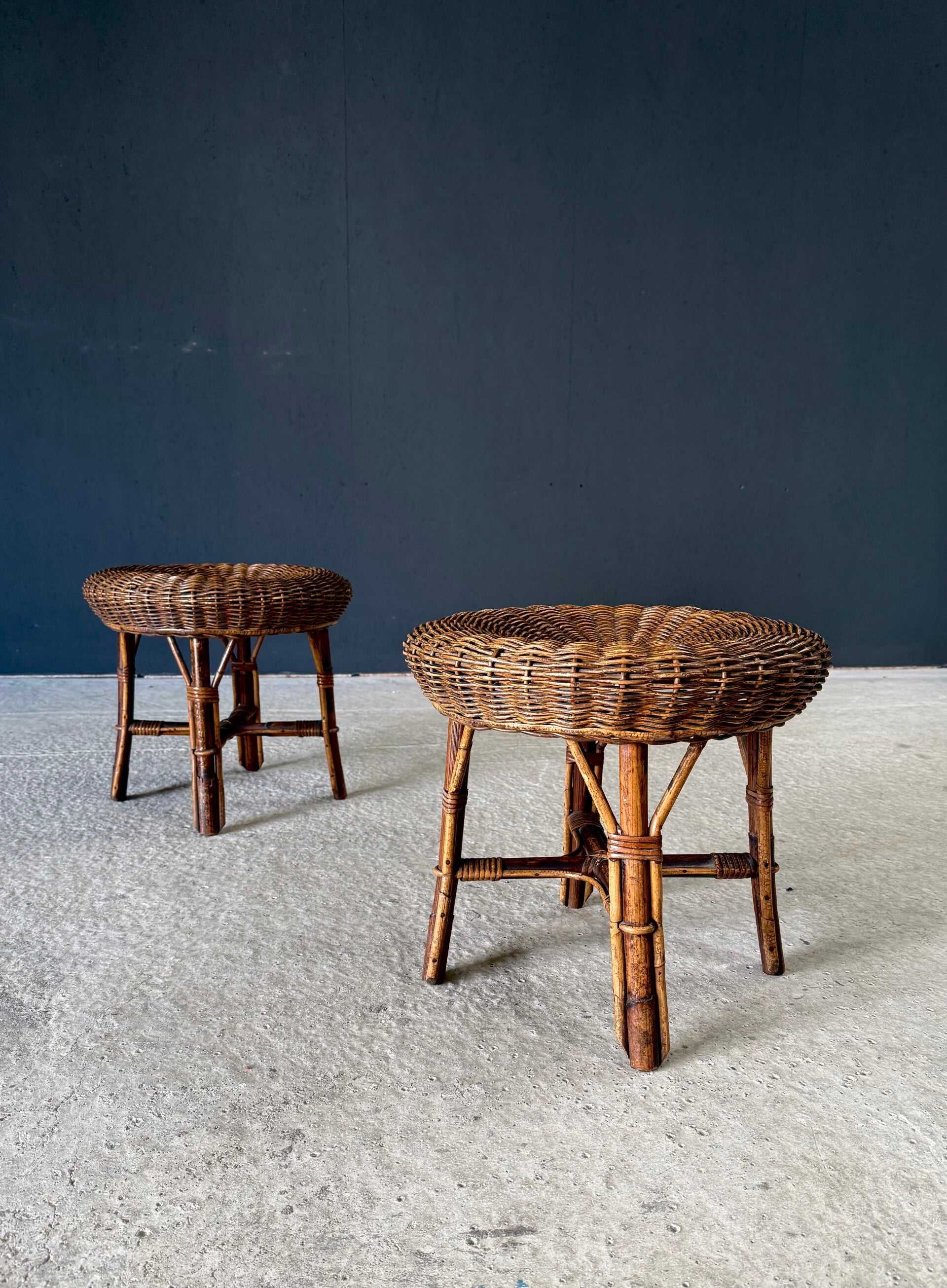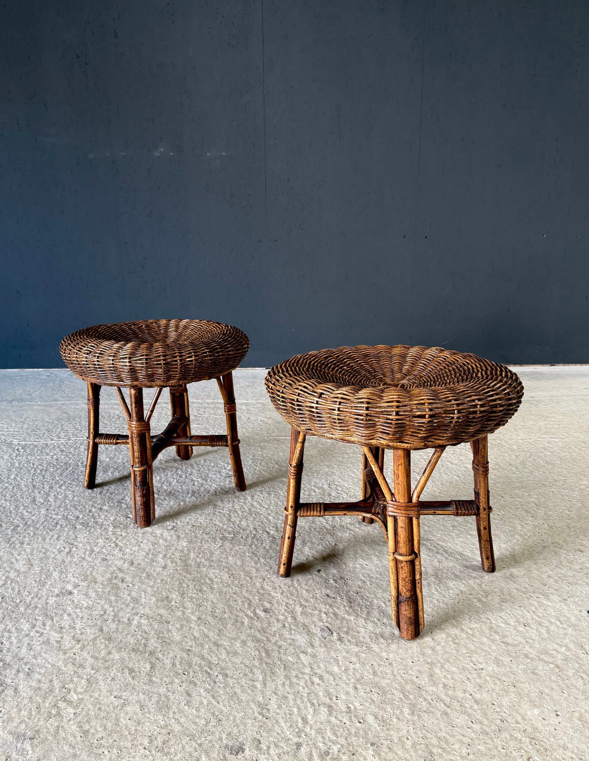 Boho Design Bamboo & Rattan Low Stools, Italy 1960's