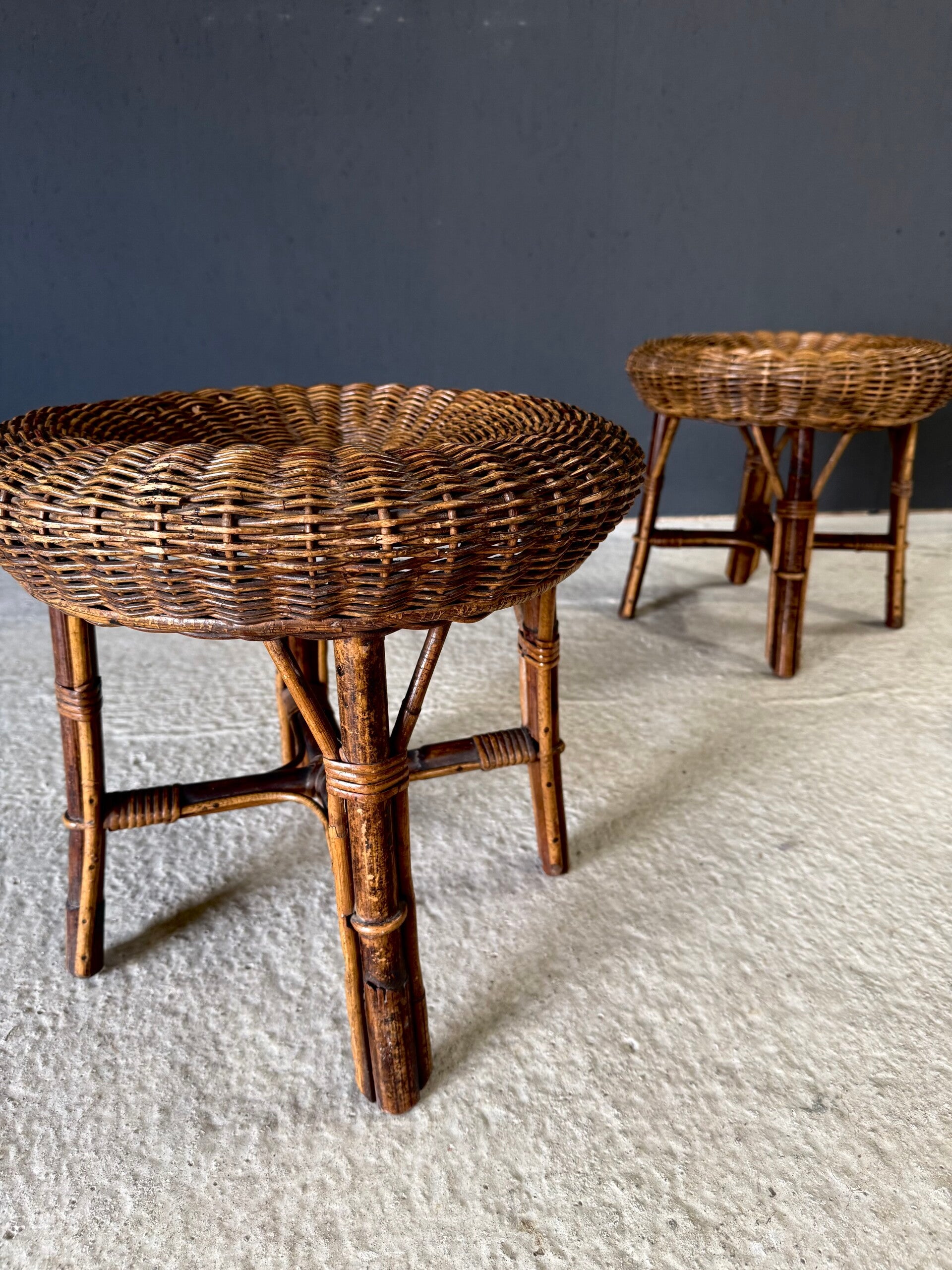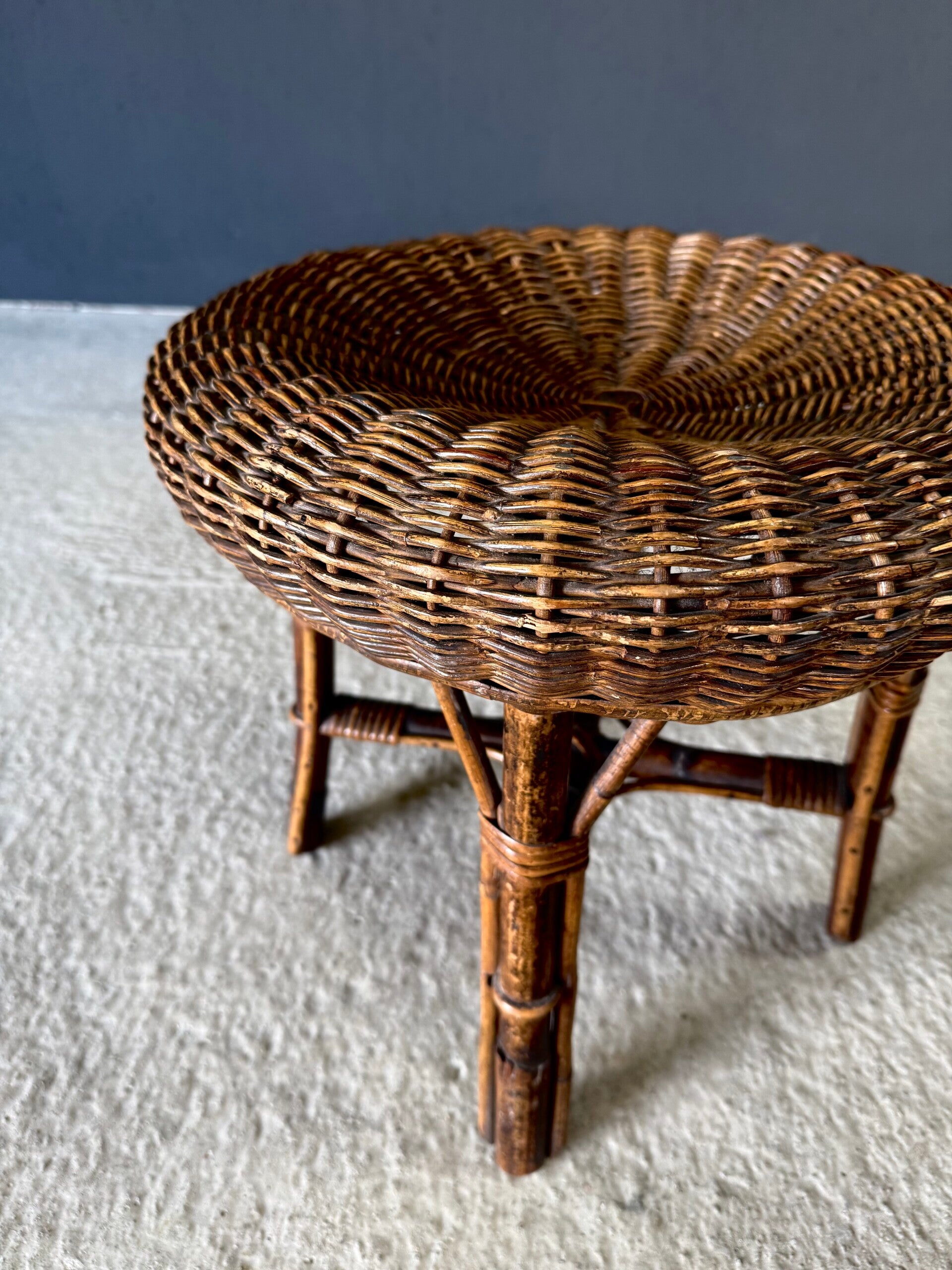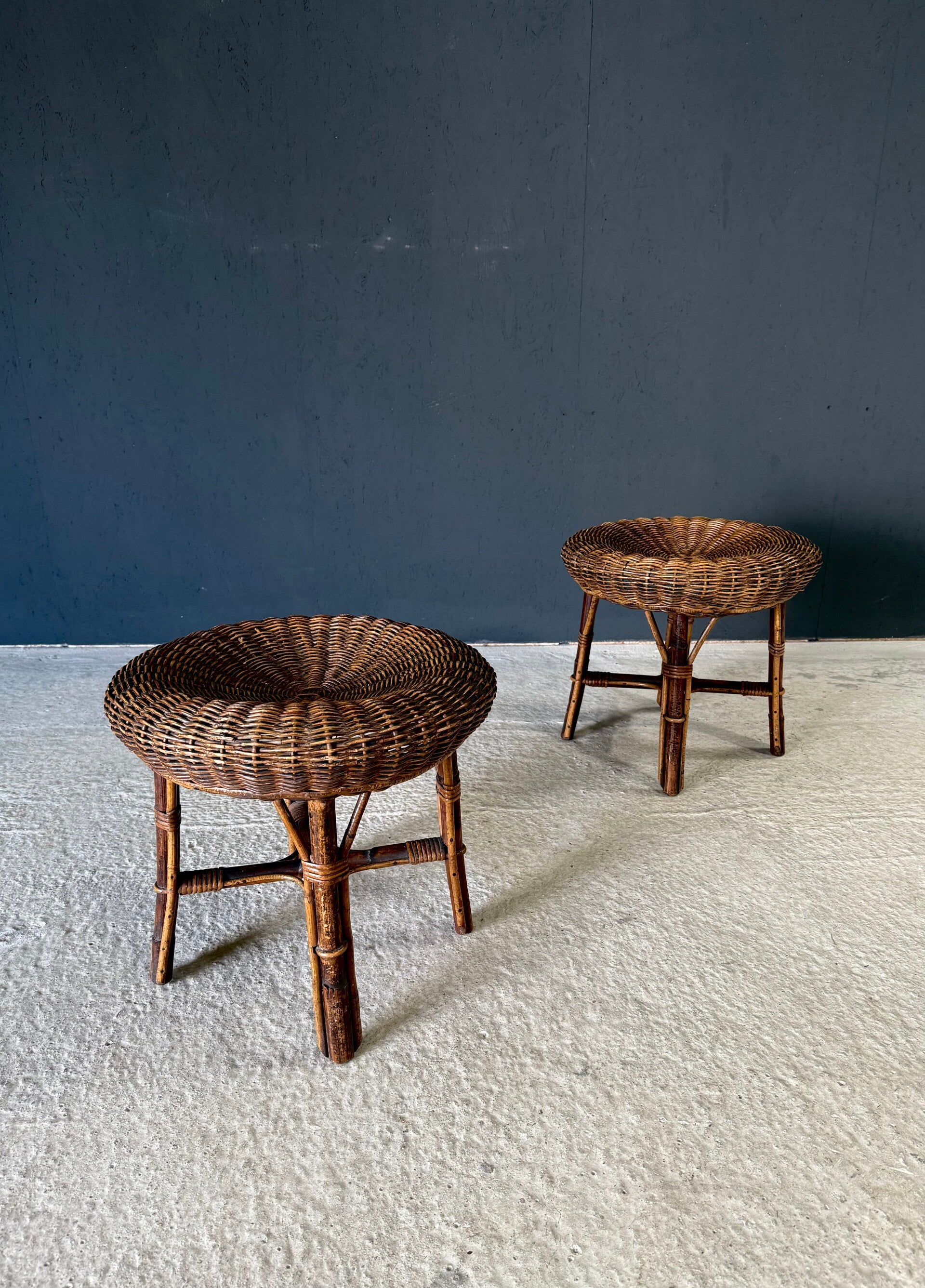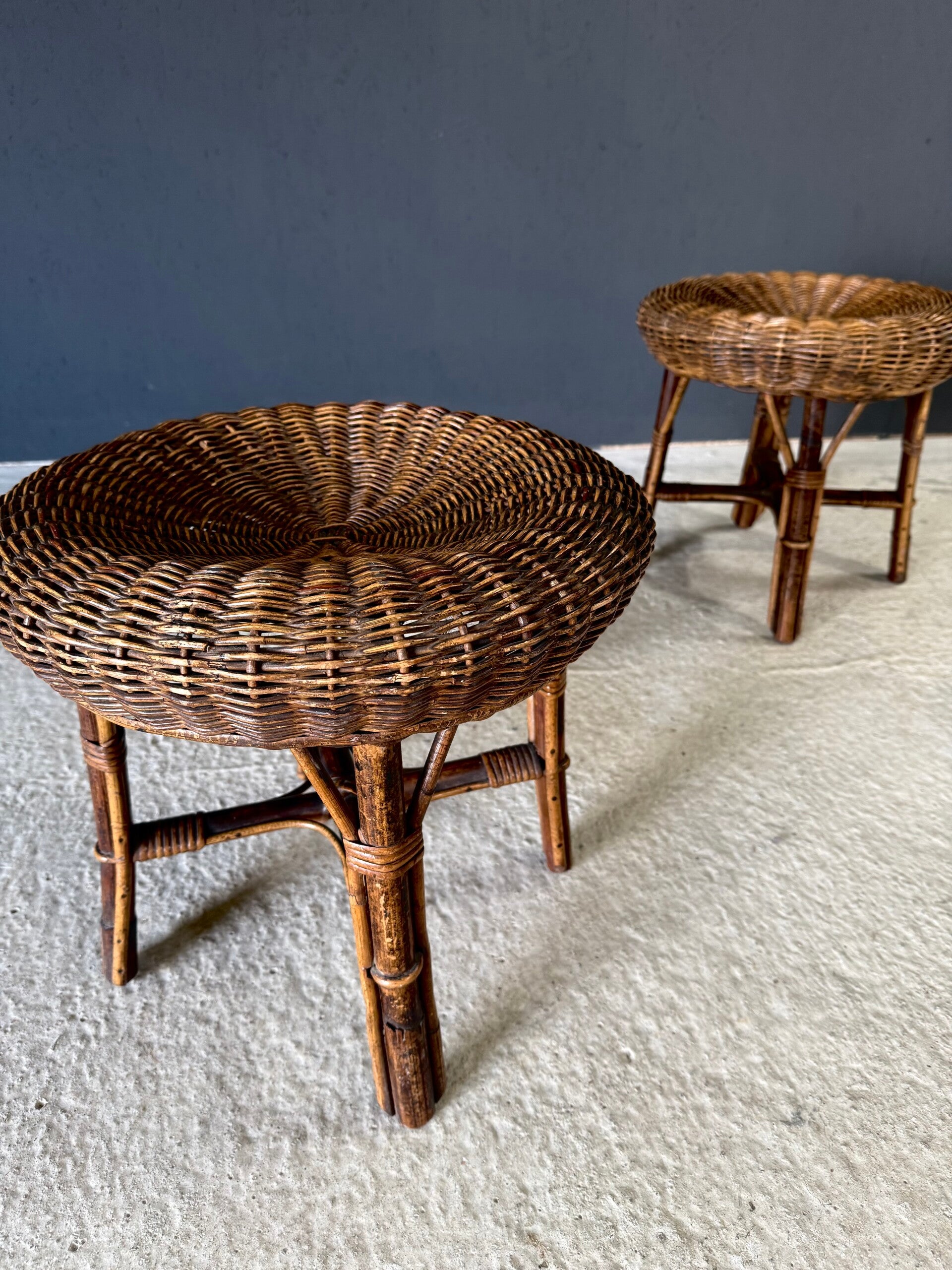 Boho Design Bamboo & Rattan Low Stools, Italy 1960's
