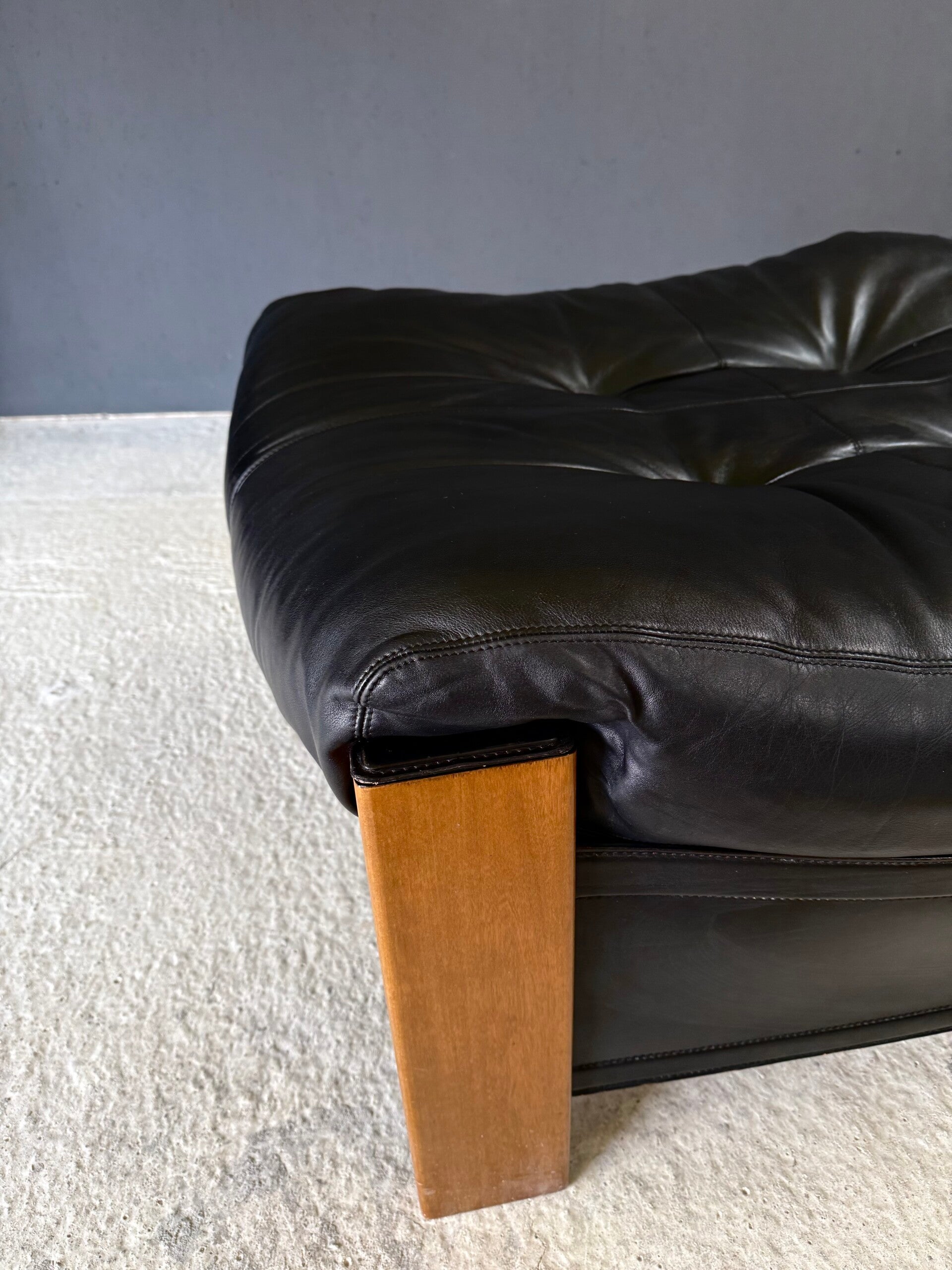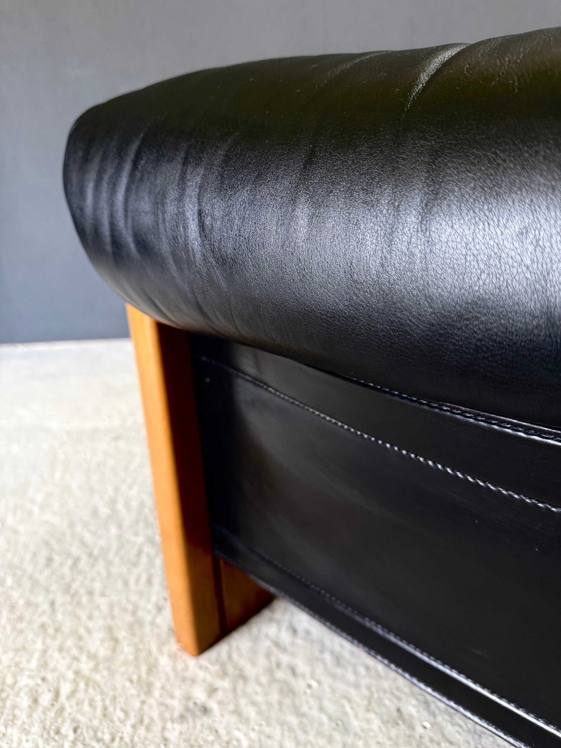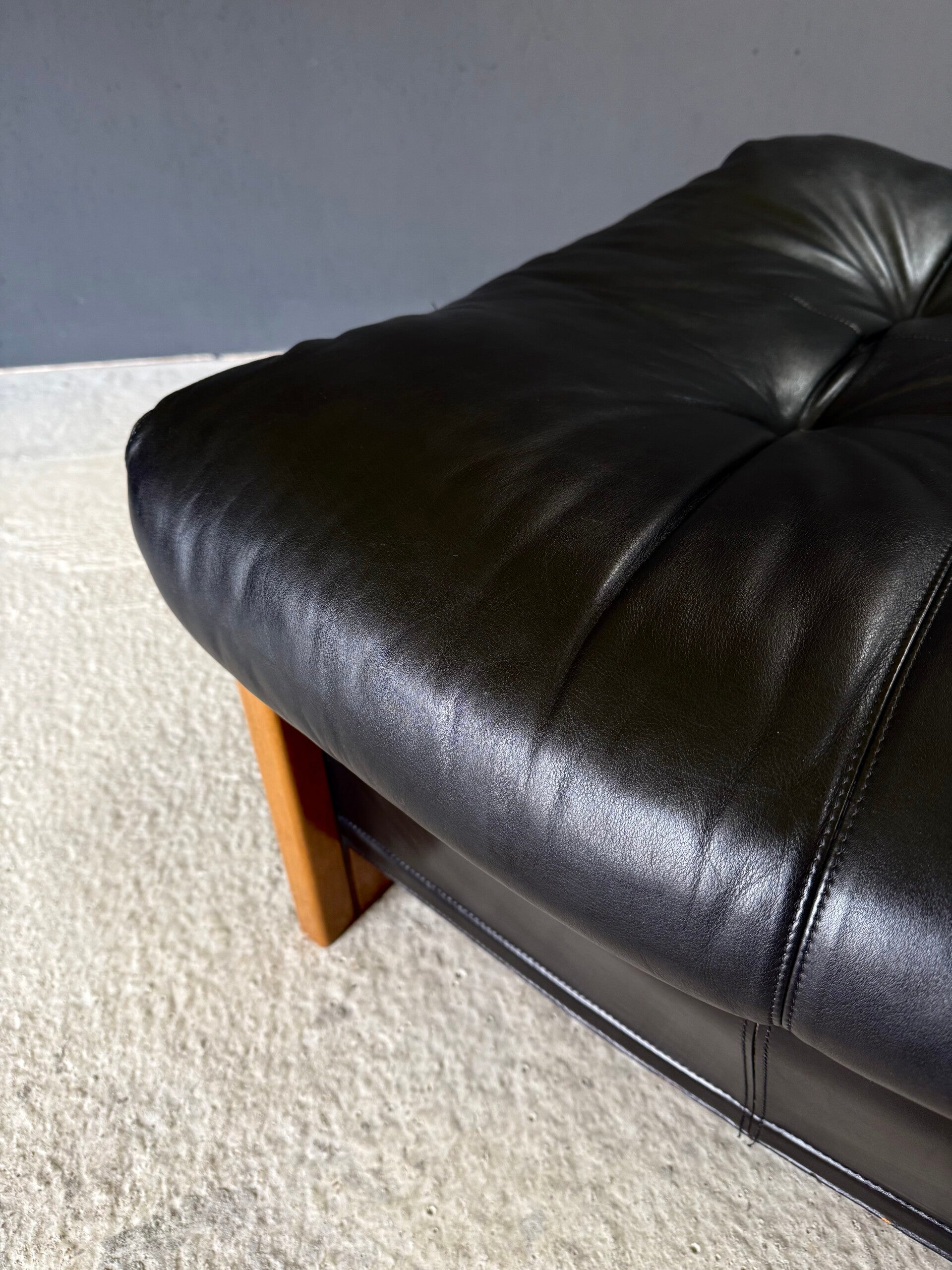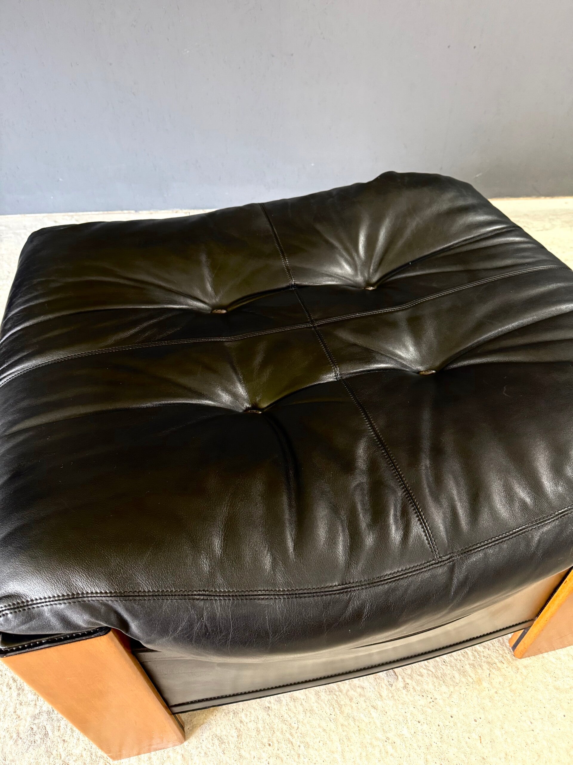 Vintage Postmodern Italian Design "Artona" XL Leather Ottoman / Pouf by Afra & Tobia Scarpa for Maxalto. Made in Italy, 1980's period. Xlarge black thick soft leather ottoman with wood frame / legs, topped with a black leather piece. Beautiful designed piece with high quality materials. This comes in very good, all original condition. Has normal signs of wear from it's age and use. This measures 50cm x 92cm x 100cm.