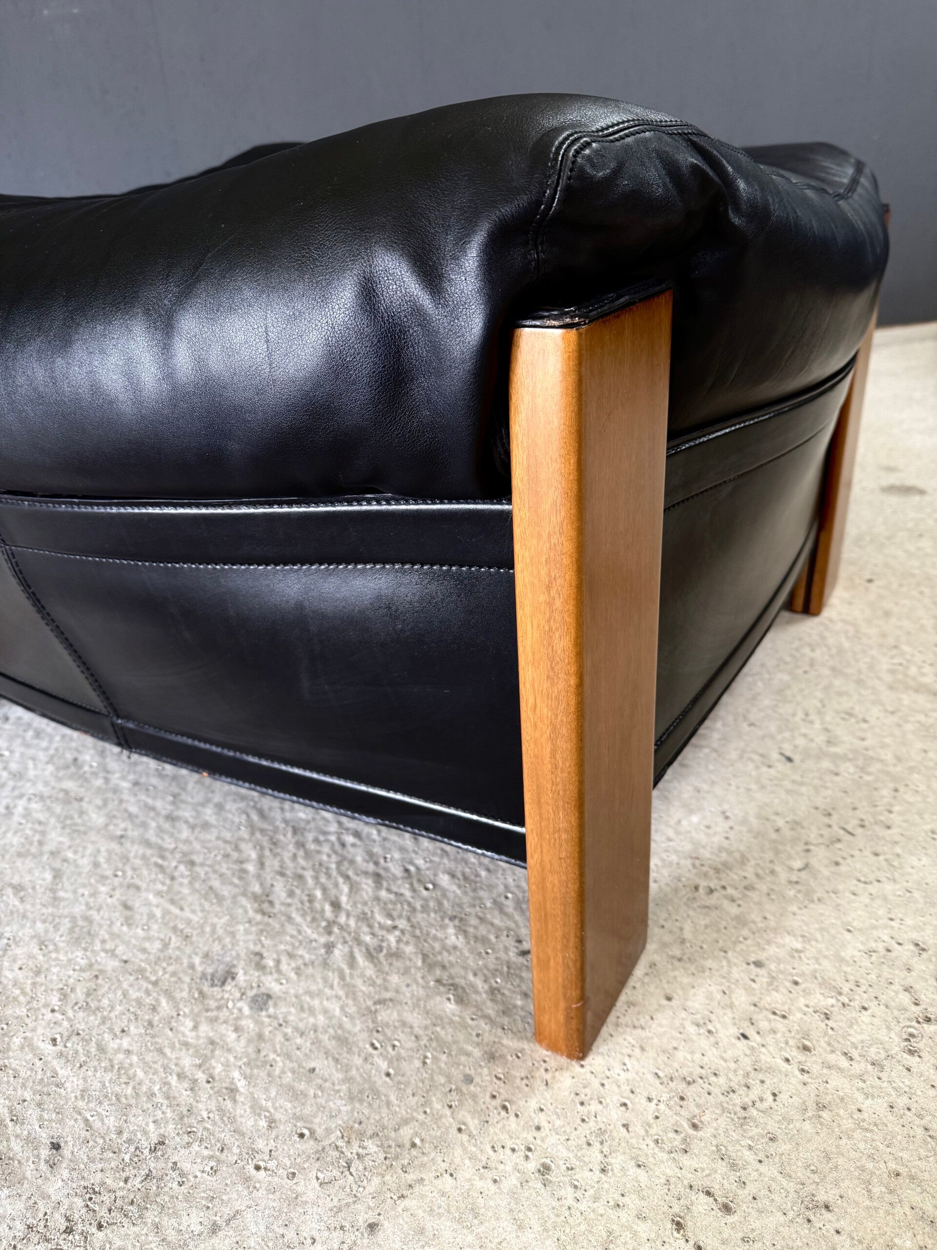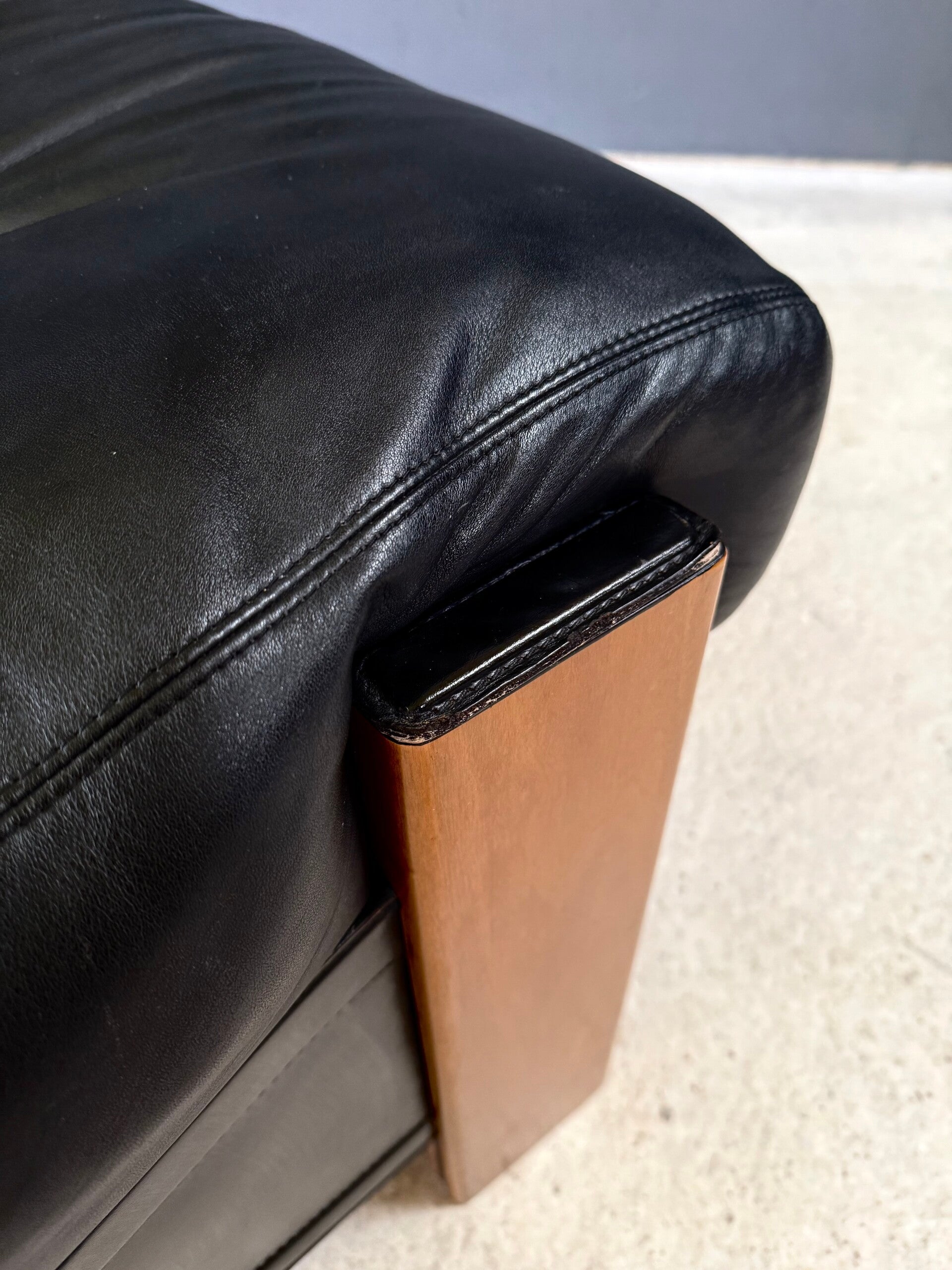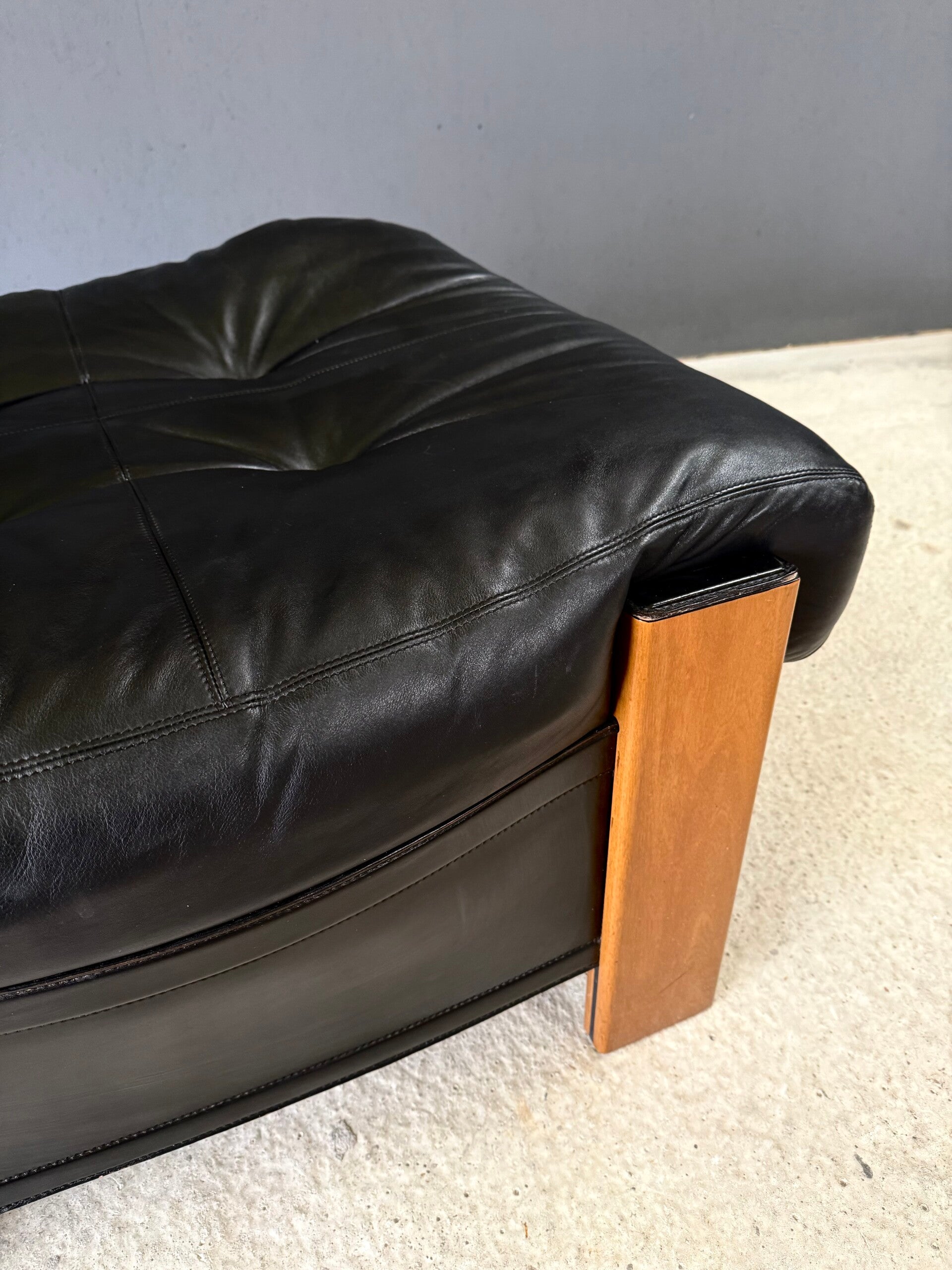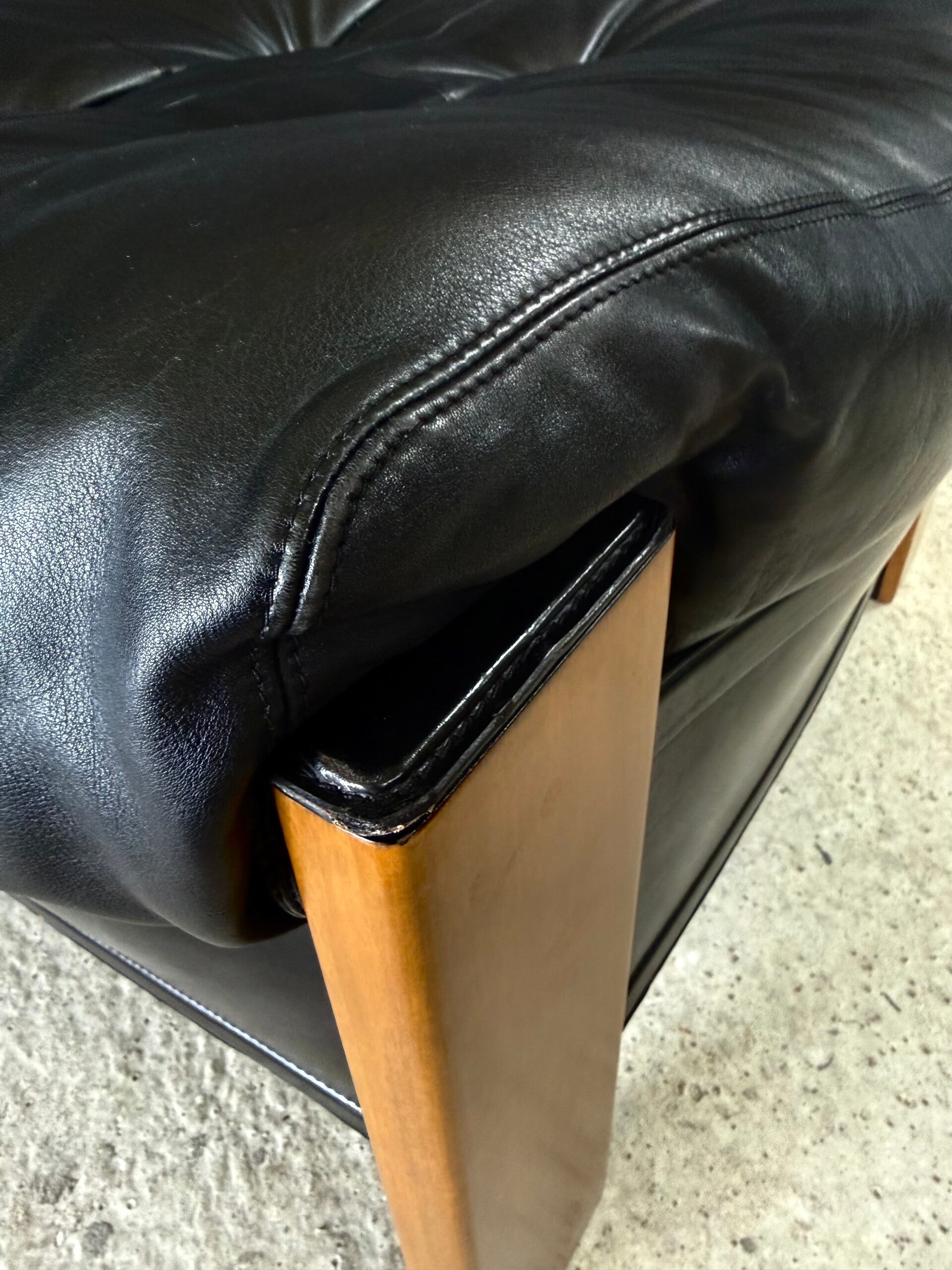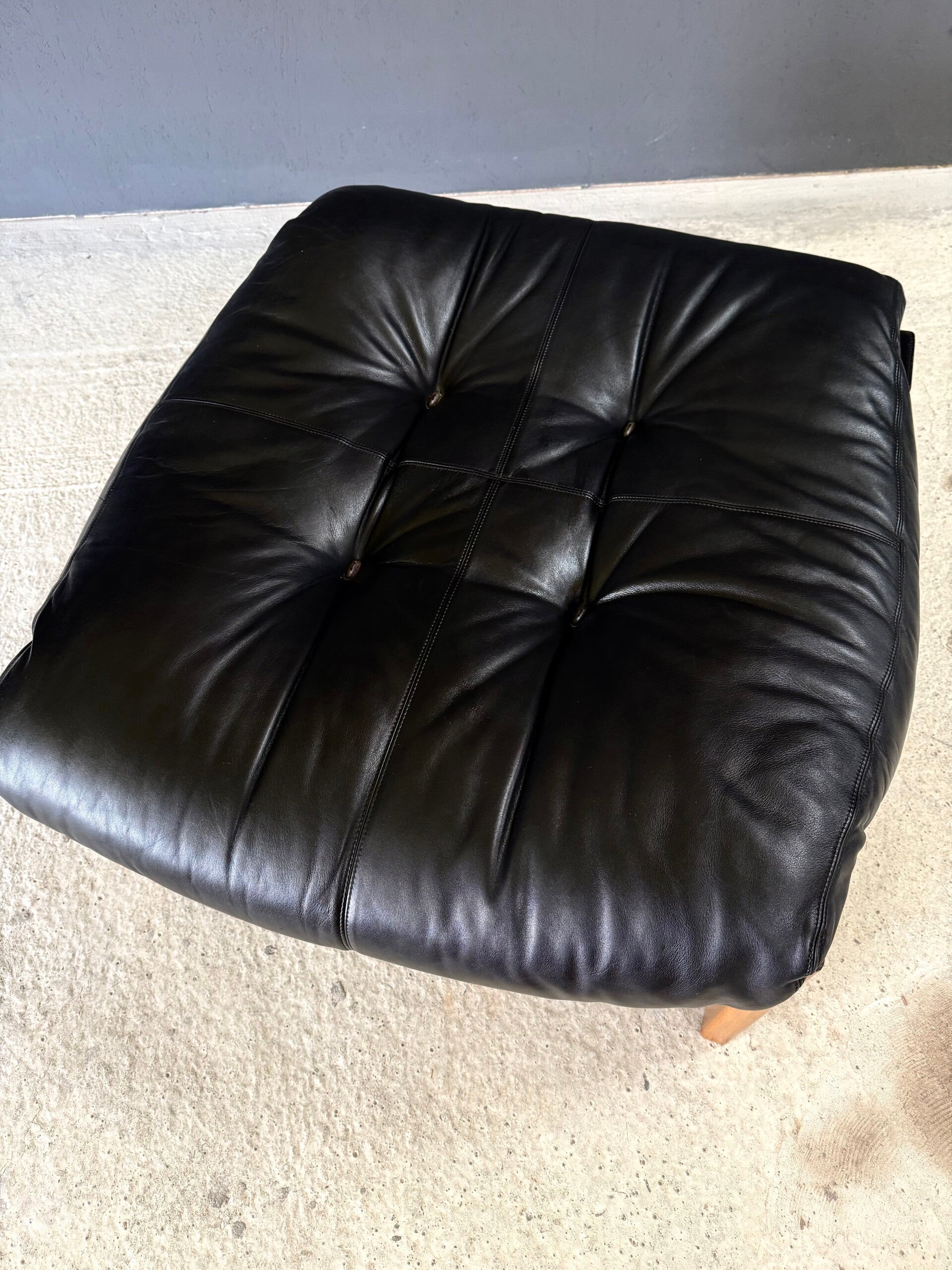 Vintage Postmodern Italian Design "Artona" XL Leather Ottoman / Pouf by Afra & Tobia Scarpa for Maxalto. Made in Italy, 1980's period. Xlarge black thick soft leather ottoman with wood frame / legs, topped with a black leather piece. Beautiful designed piece with high quality materials. This comes in very good, all original condition. Has normal signs of wear from it's age and use. This measures 50cm x 92cm x 100cm.