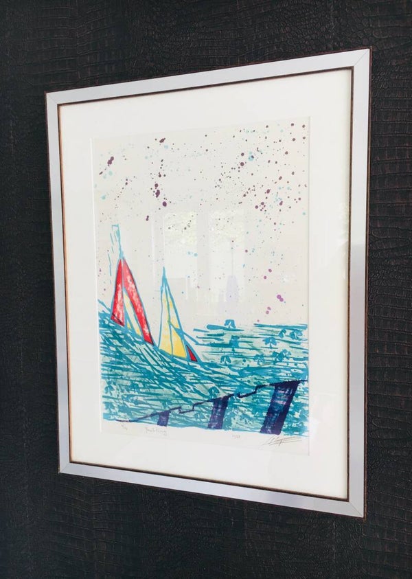 "Yachting" signed Art Litho print 1978 Belgium