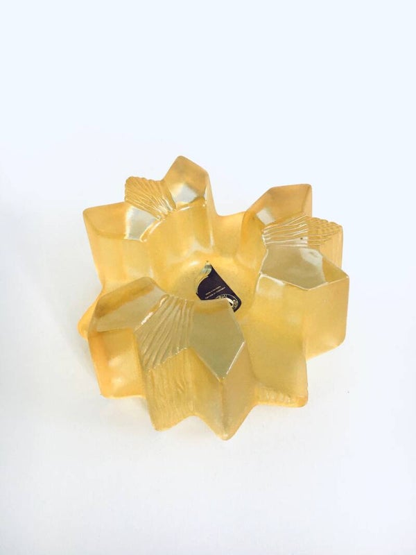 Original Walther Glass Candle Warm Holder Flower in yellow glass. Made in Germany in the 1980's. Unused old store stock. Measures: 15cm x 15cm x 6,5cm.