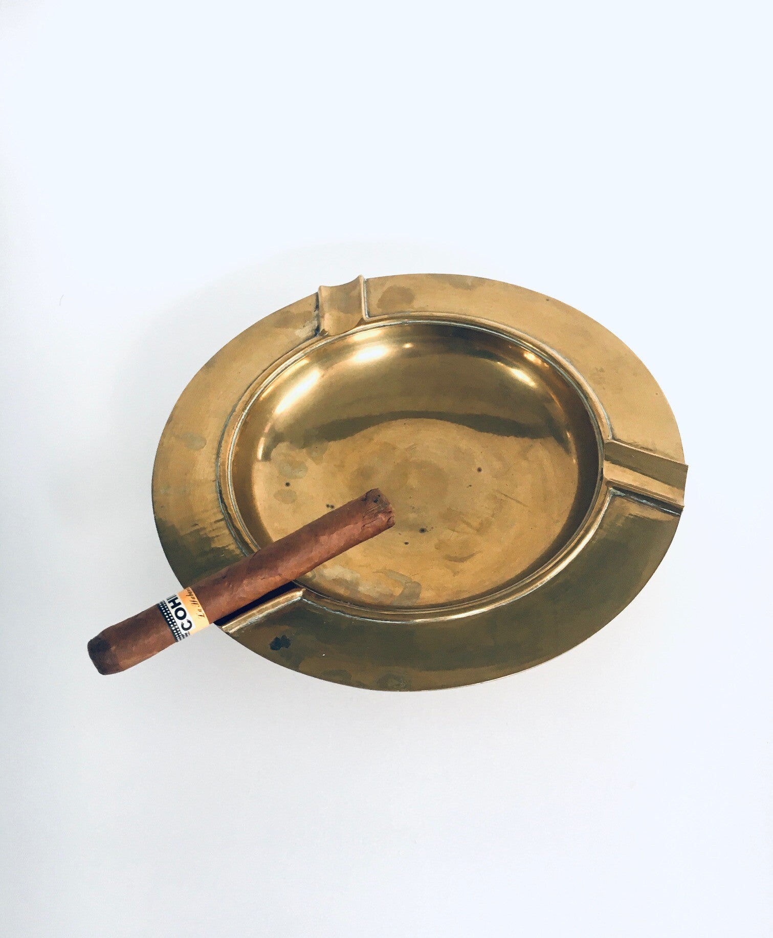 Vintage Hollywood Regency Style large Brass Sigar Ashtray bowl, made in India 1980's. In very good condition. Solid brass. Measures: 25,5cm x 25,5cm x 5cm.