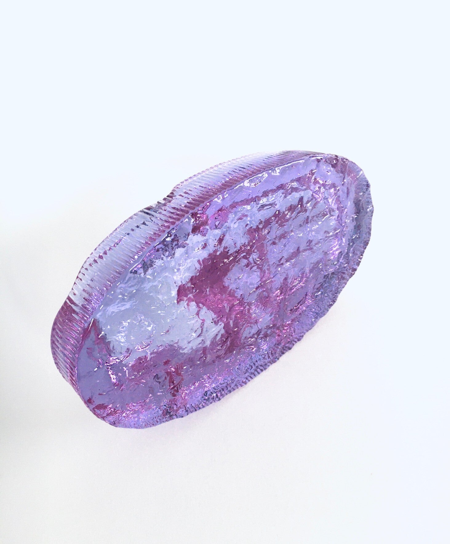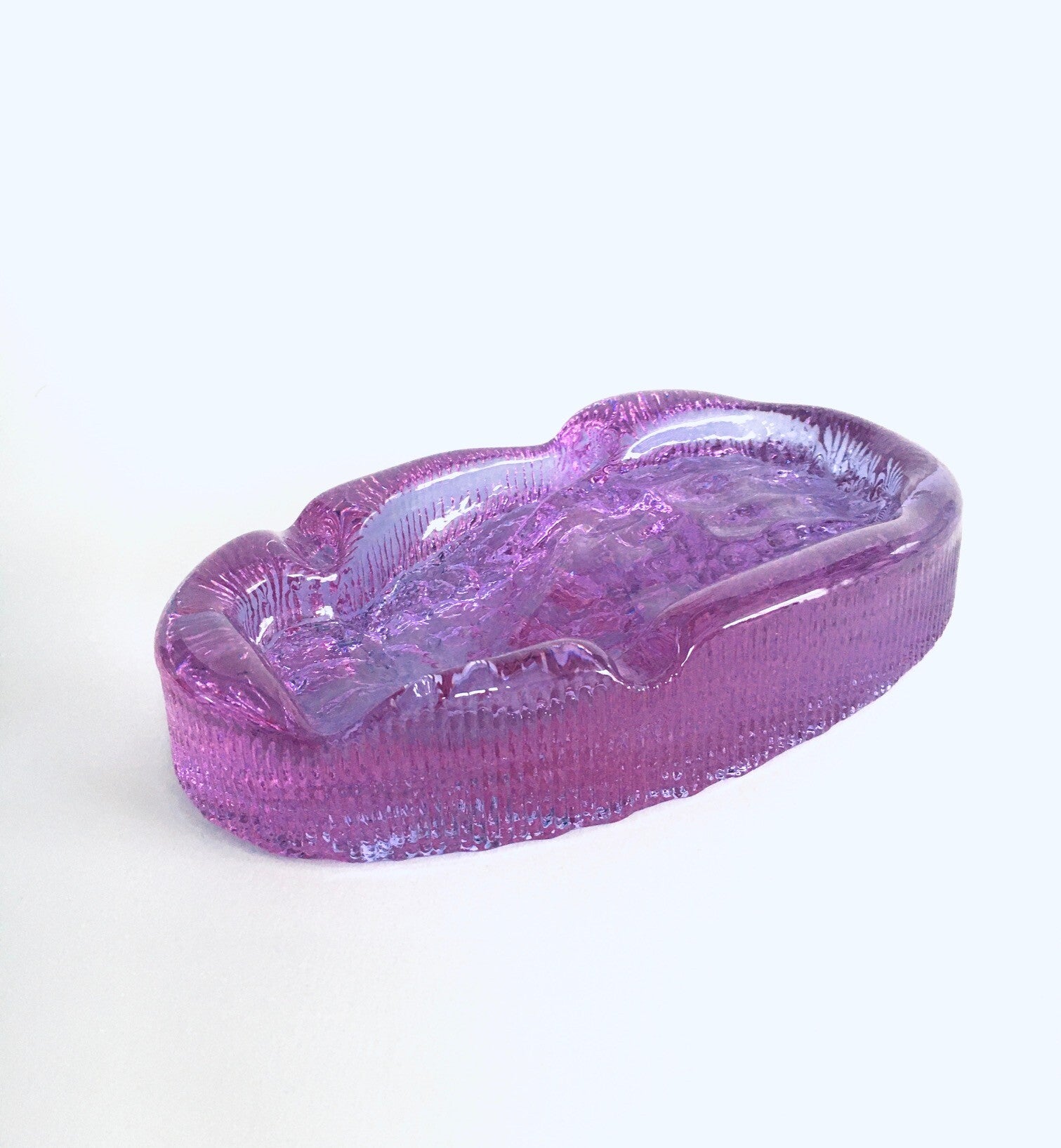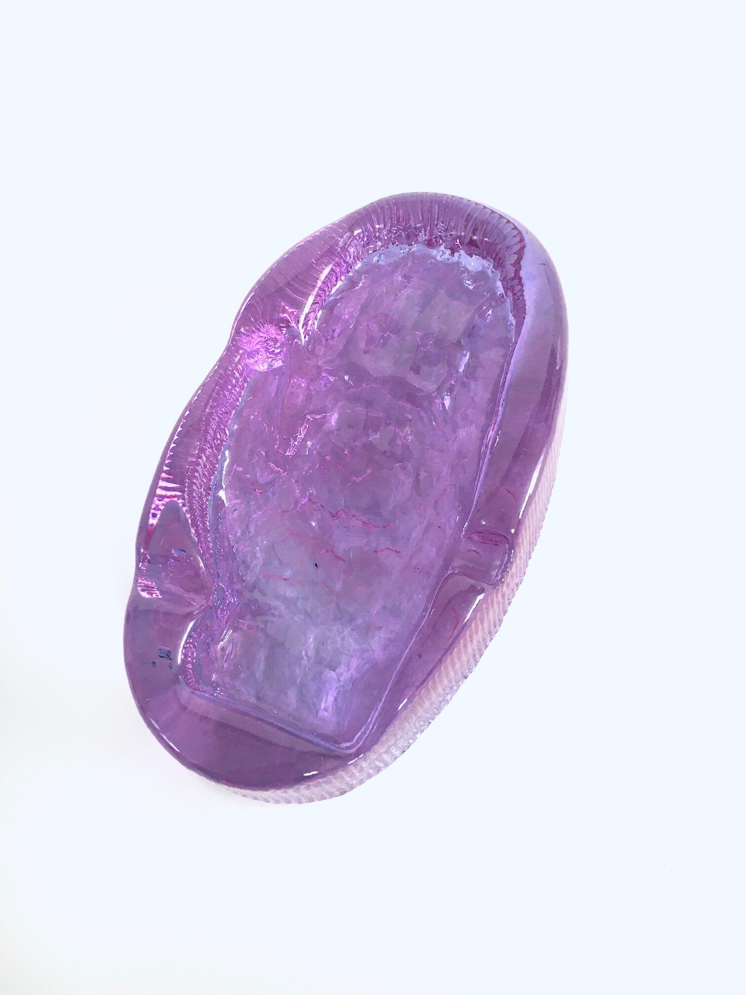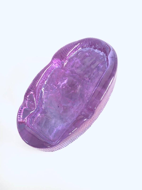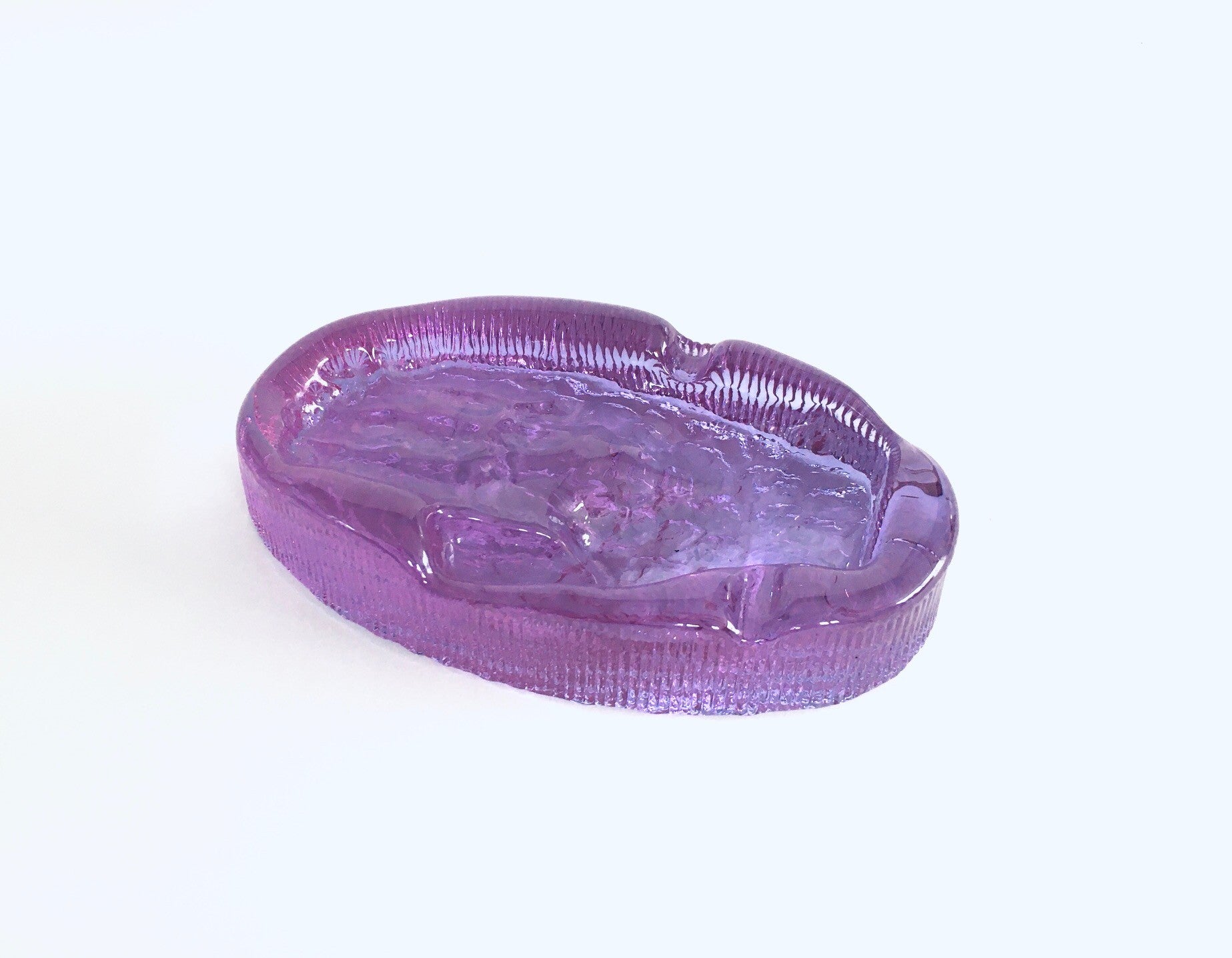 Vintage 1970's Art Glass Object Ashtray with Hand imprint. Cool purple glass one of a kind art object - pressed glass. In pristine condition. 22cm x 12cm x 4,5cm.
