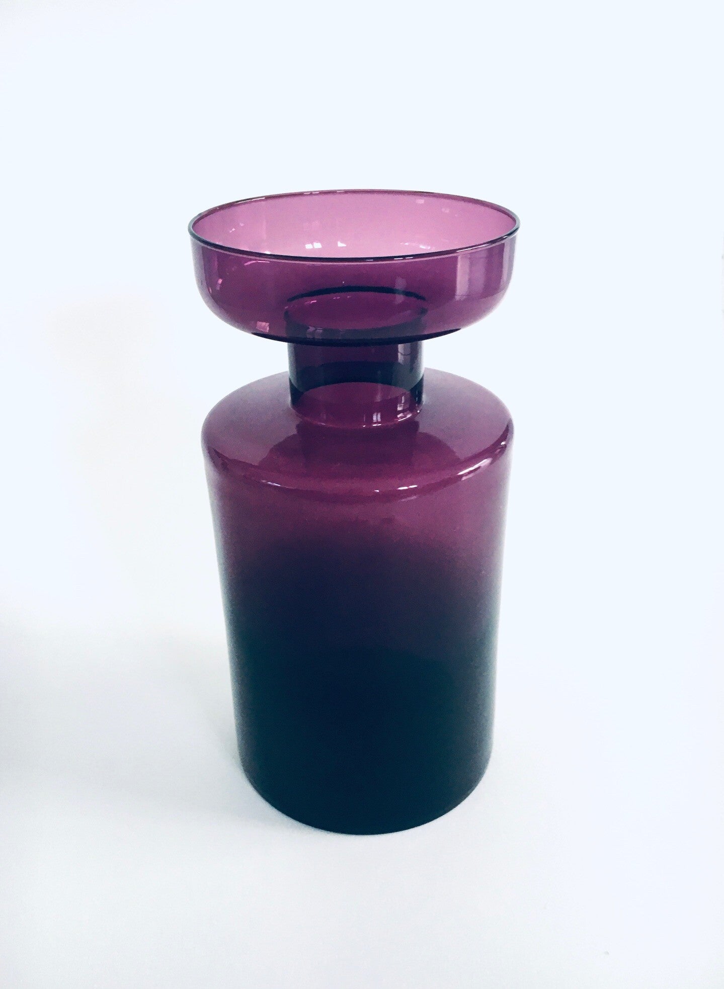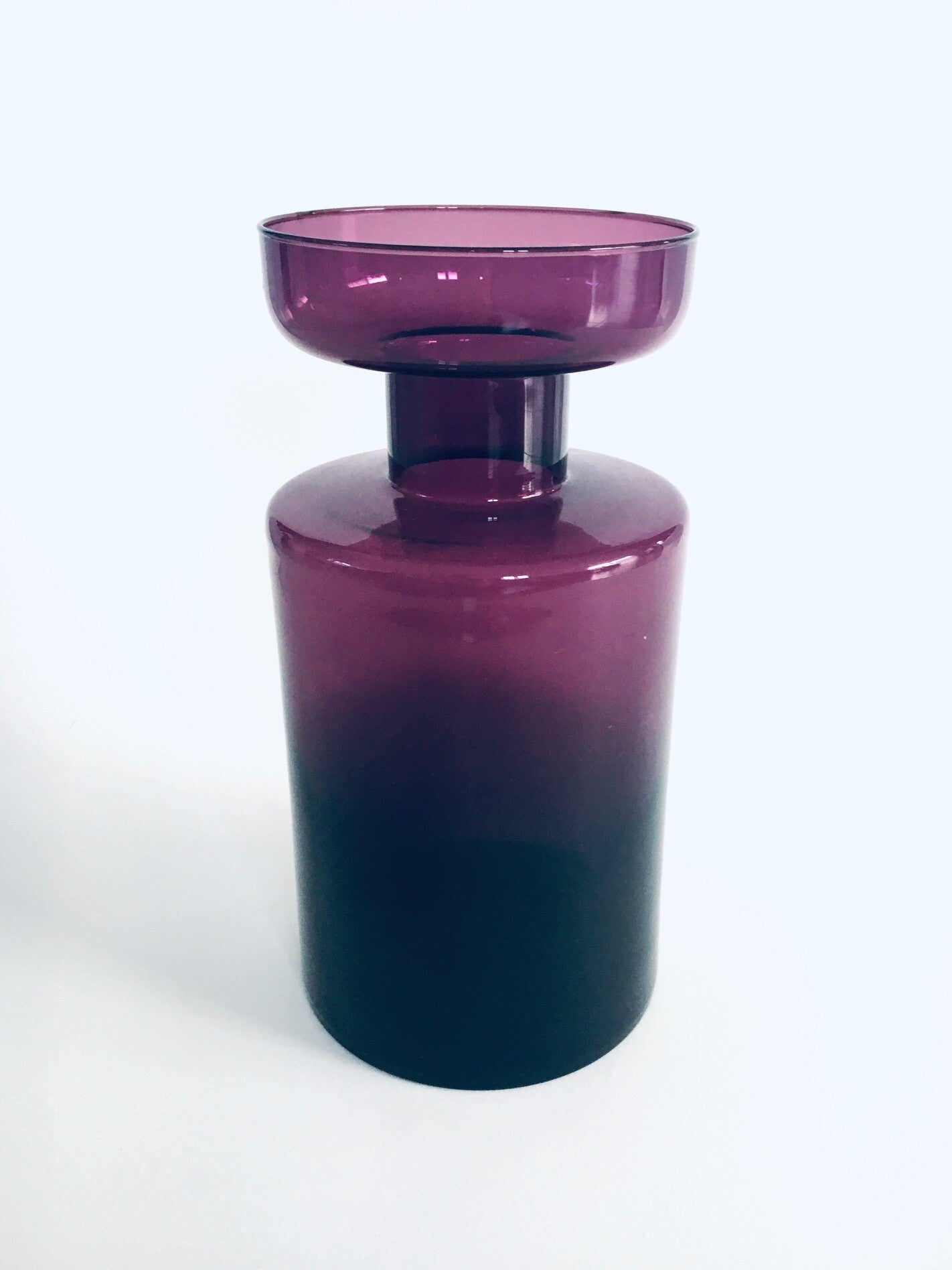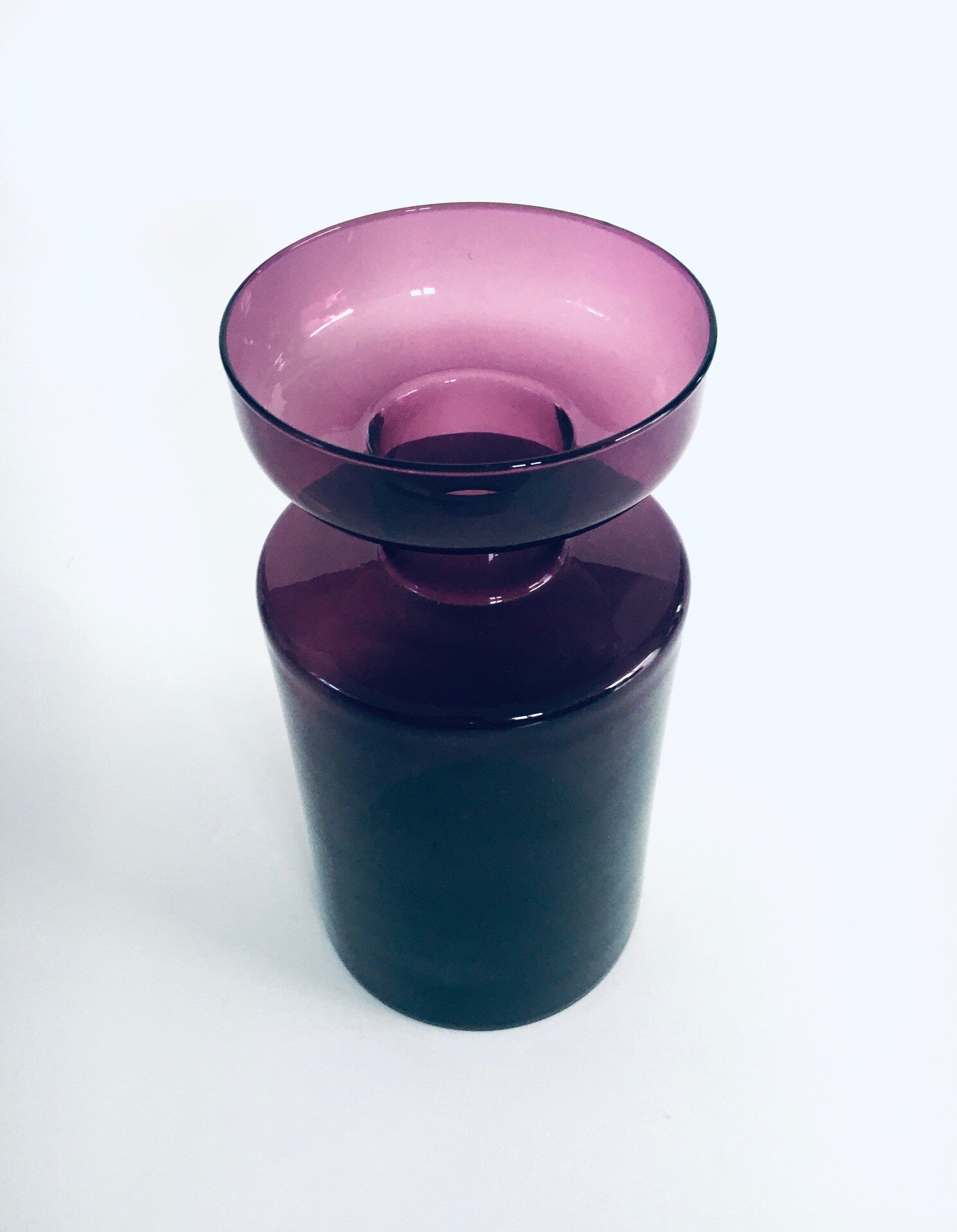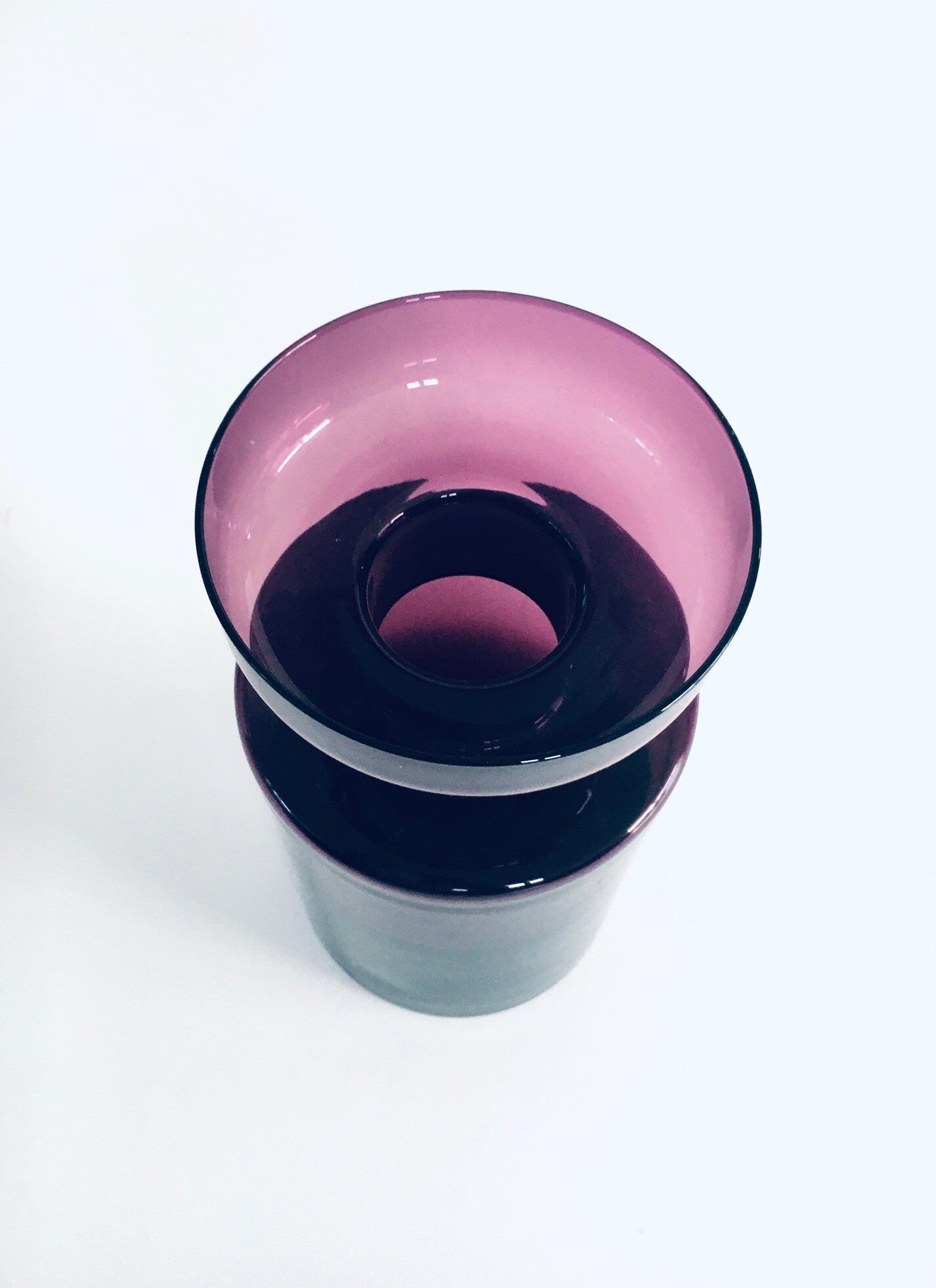Vintage Midcentury Modern Scandinavian Design XL Purple Hooped glass vase by Tamara Aladin for Riihimaki, Riihimaen Lasi Oy, Finland, 1970's. Rare colour vase. Handmade hand blown art glass vase. In perfect condition. 27cm x 13cm x 13cm.