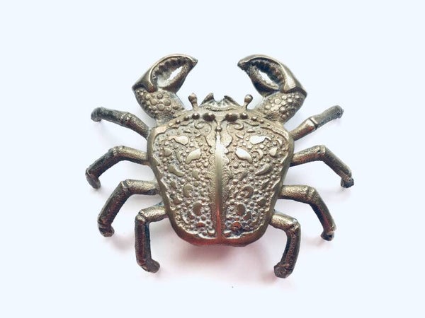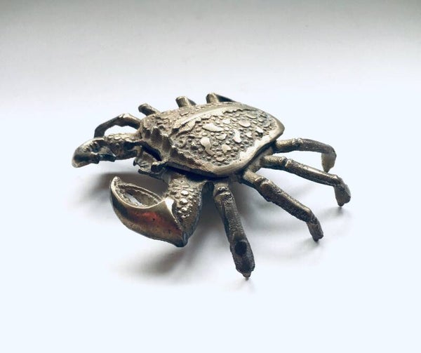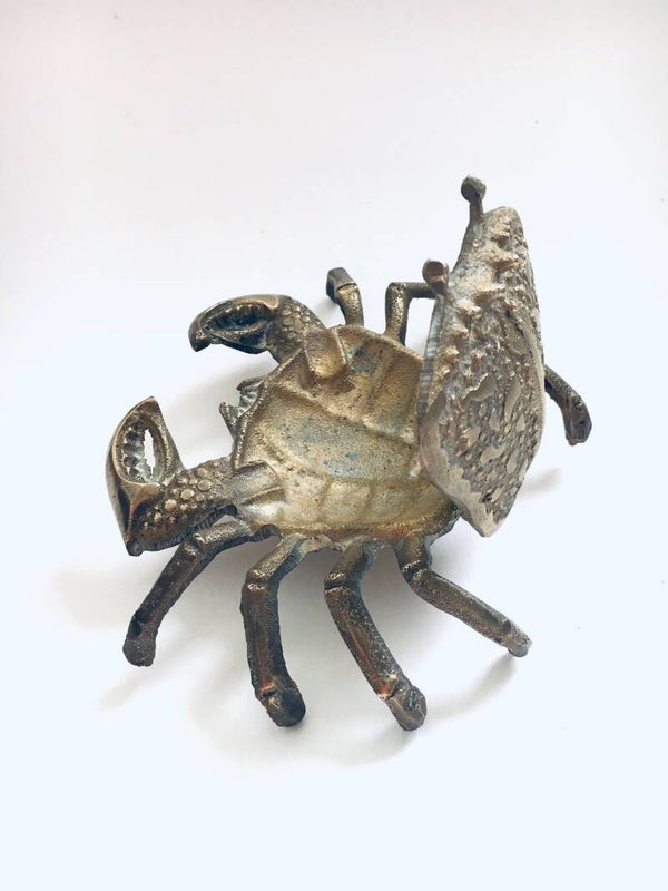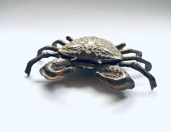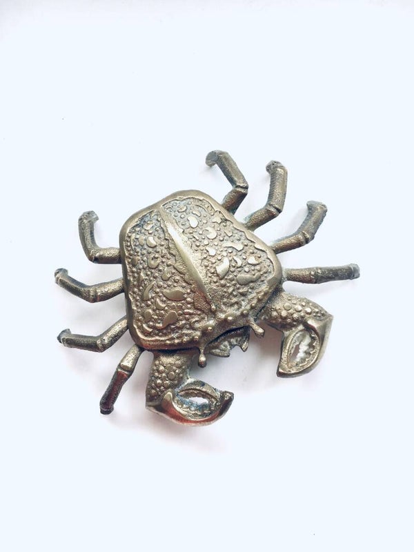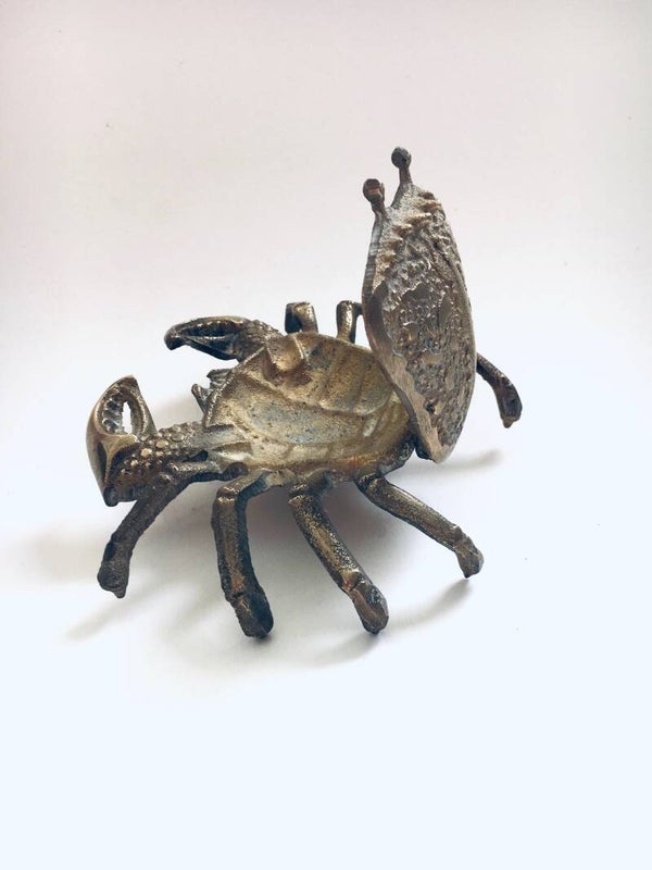 Vintage Hollywood Regency Style Brass Crab container, made in the 1970's. In very good condition. A rare stained brass articulate figure.