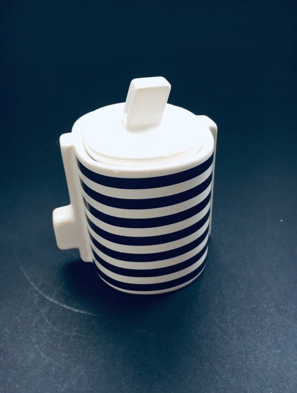 Vintage Postmodern Design Handmade Pottery Sugar Bowl with lid by Marlett Design, Italy 1980's. In very good condition. One small chip on lid. Measures 11,5cm x 10cm x 11cm.