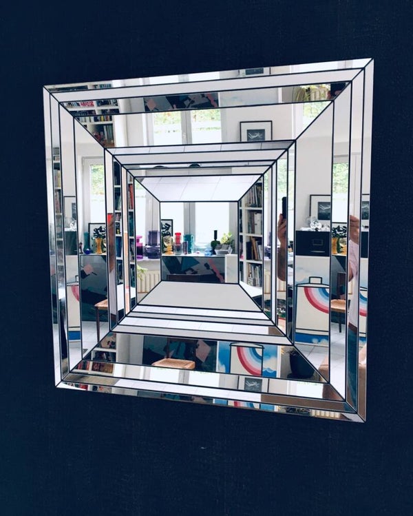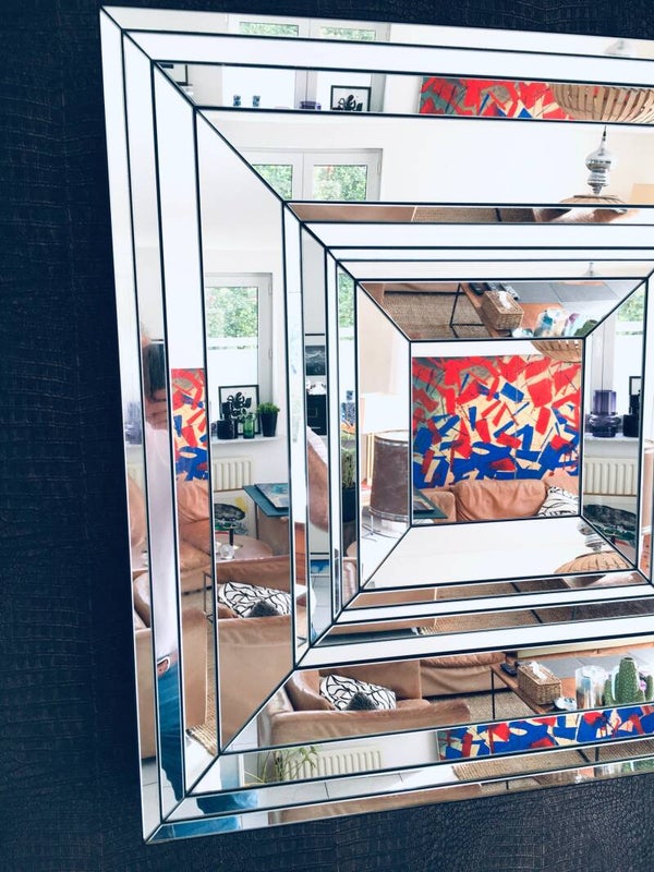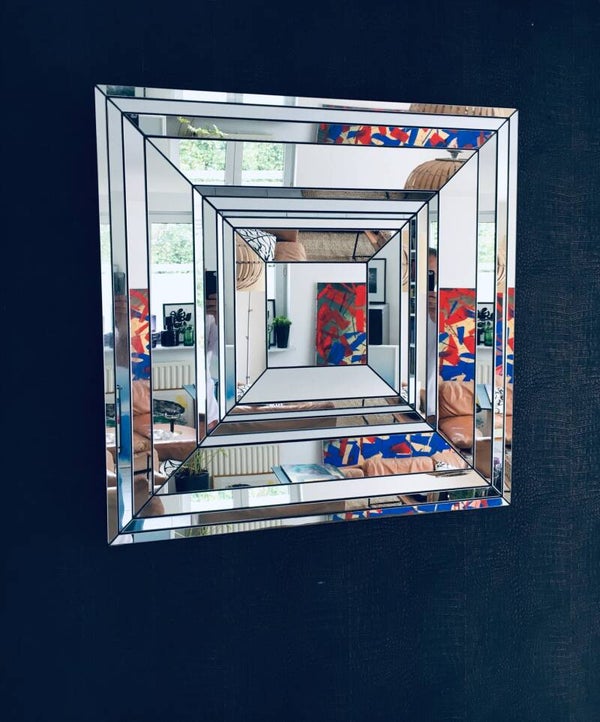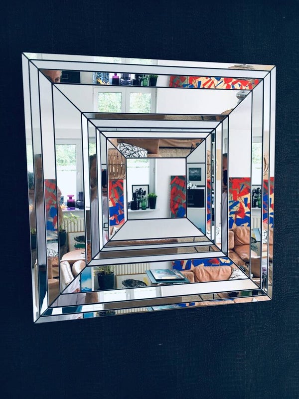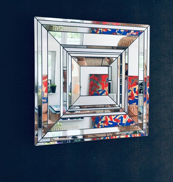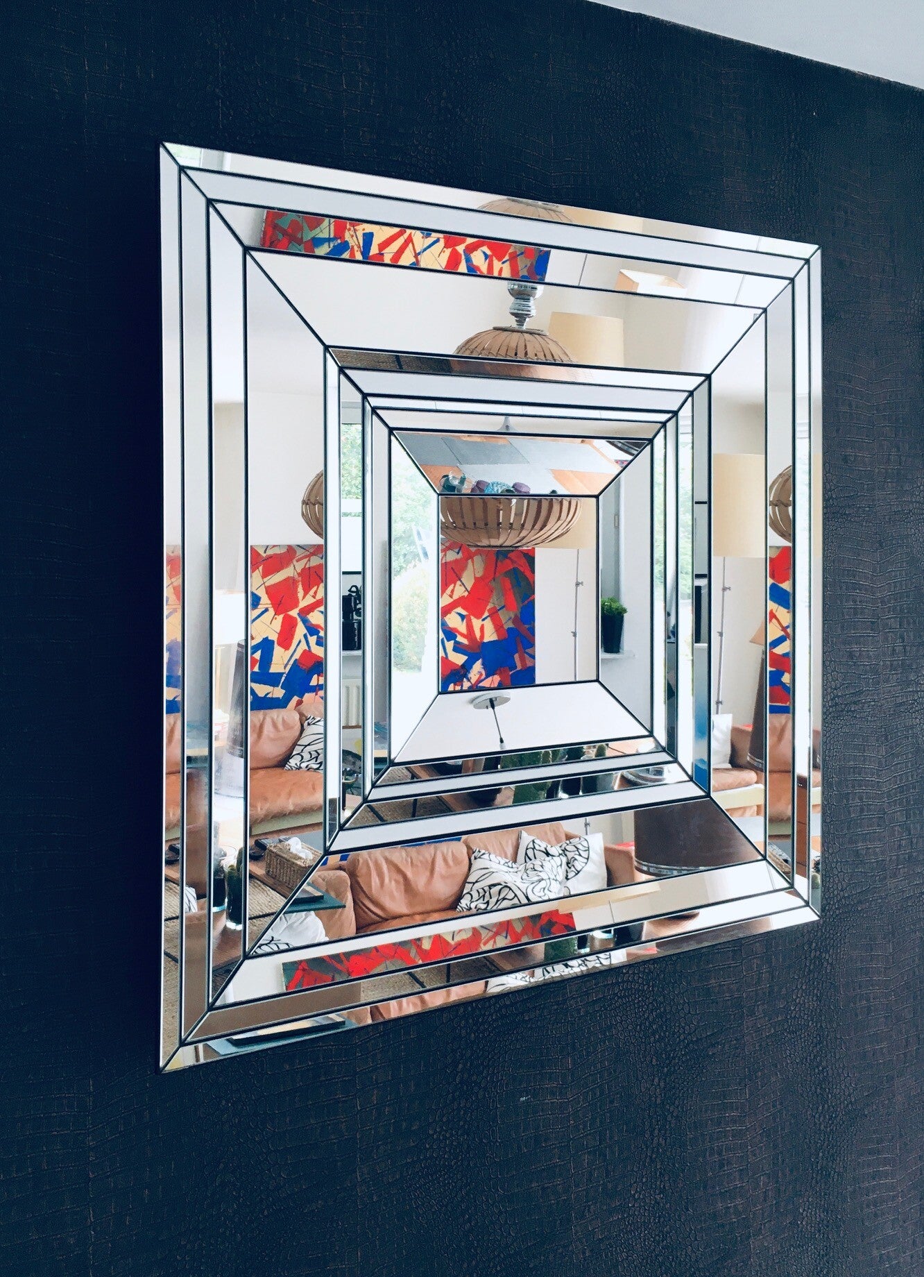 Hollywood Regency Style very Rare Large Facet Cut Square Mirror by Deknudt Mirrors, made in Belgium 1970's. Extremely rare heavy mirror in this design. Mirror pieces cut and placed in depth. Beautifull design. Marked at the back with original label. In very good condition. Measures 84cm x 84cm.