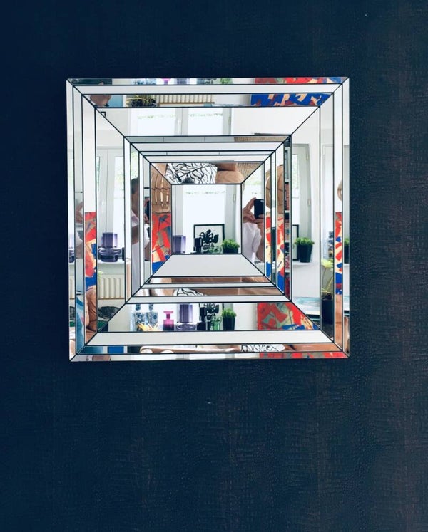 Rare Facet Cut Square Mirror by Deknudt Mirrors, Belgium 1970's