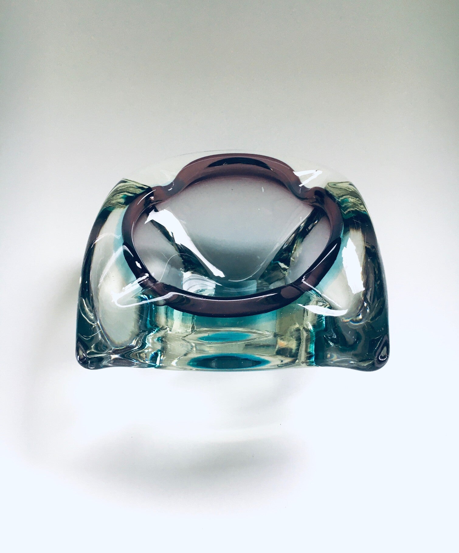 Art Glass Ashtray by Flavio Poli Sommerso Murano 1960's Italy