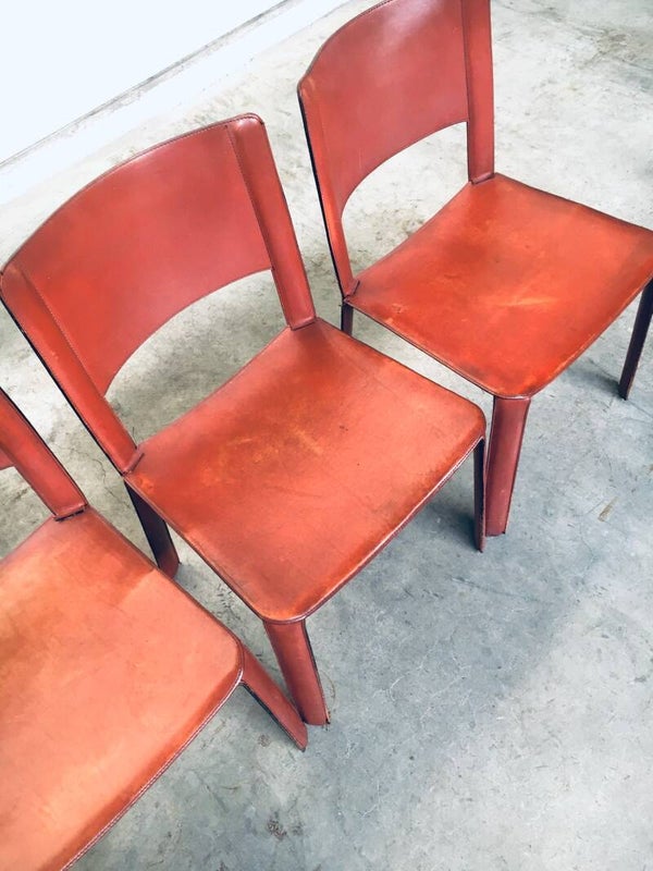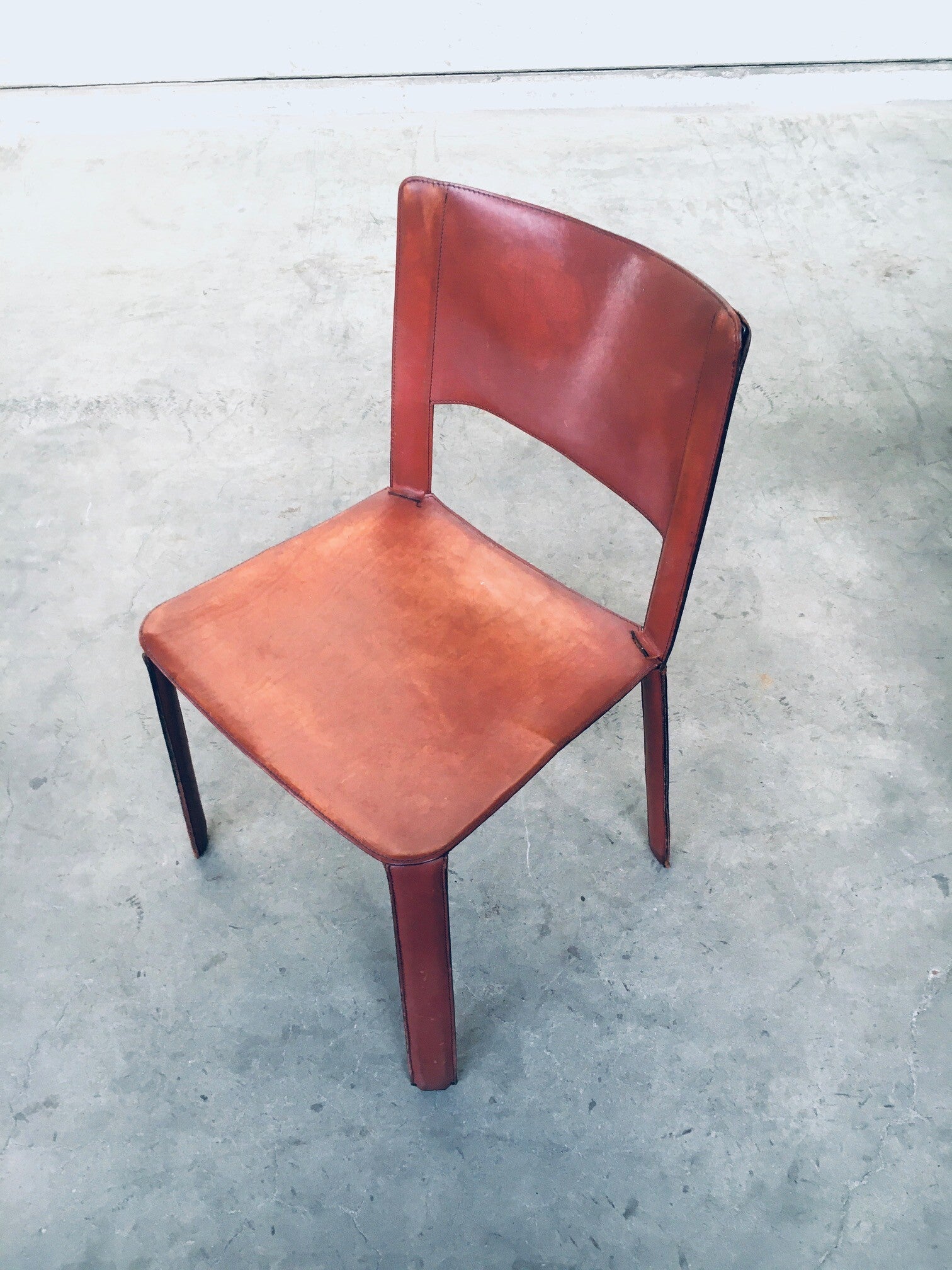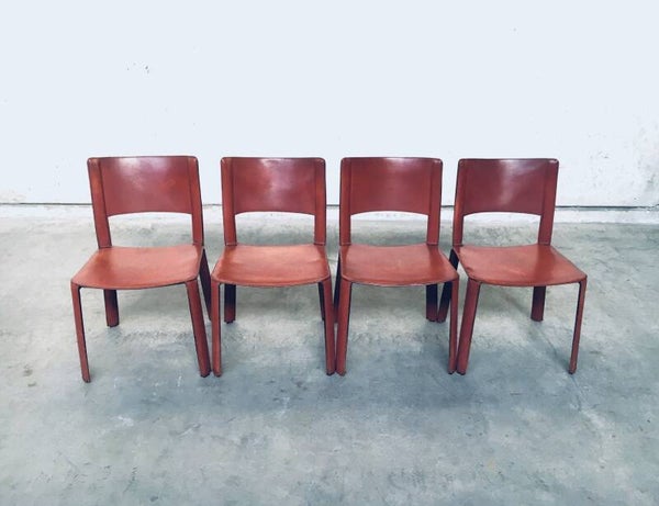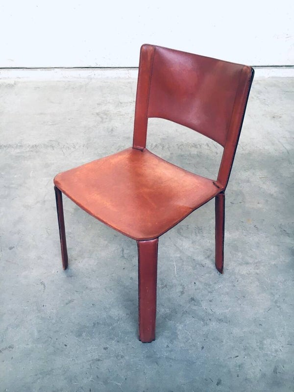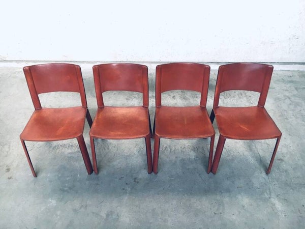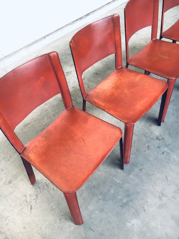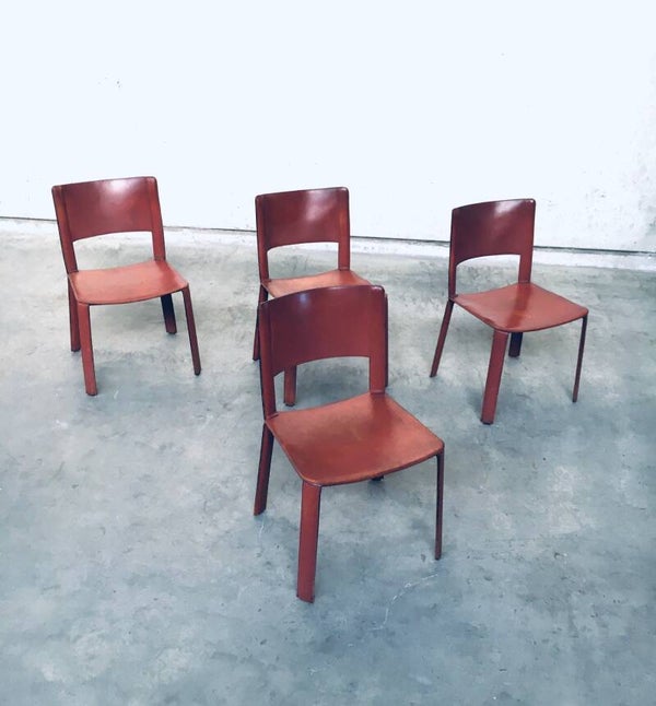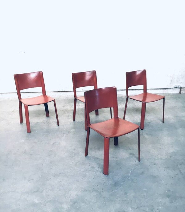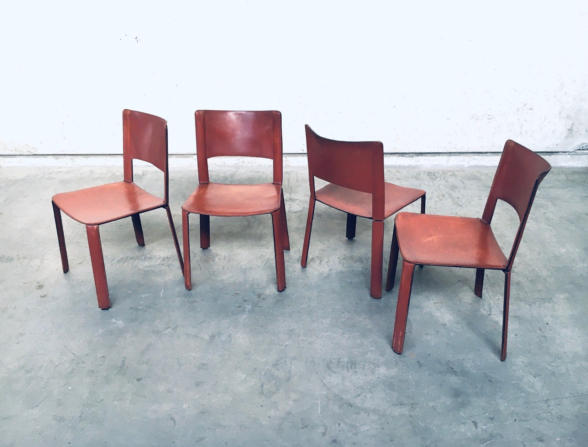 Italian Design Saddle Leather covered set of 4 Dining Chairs 1970's Italy