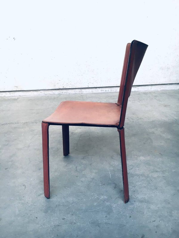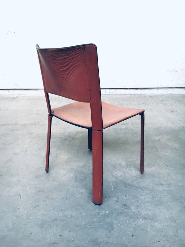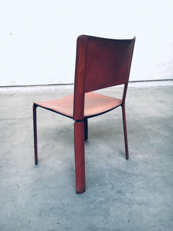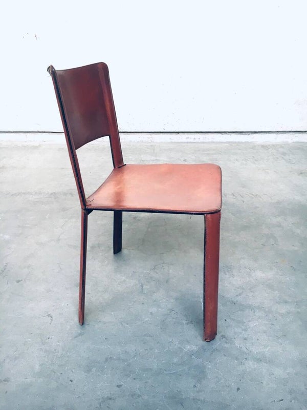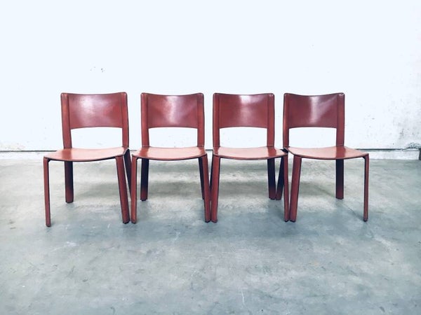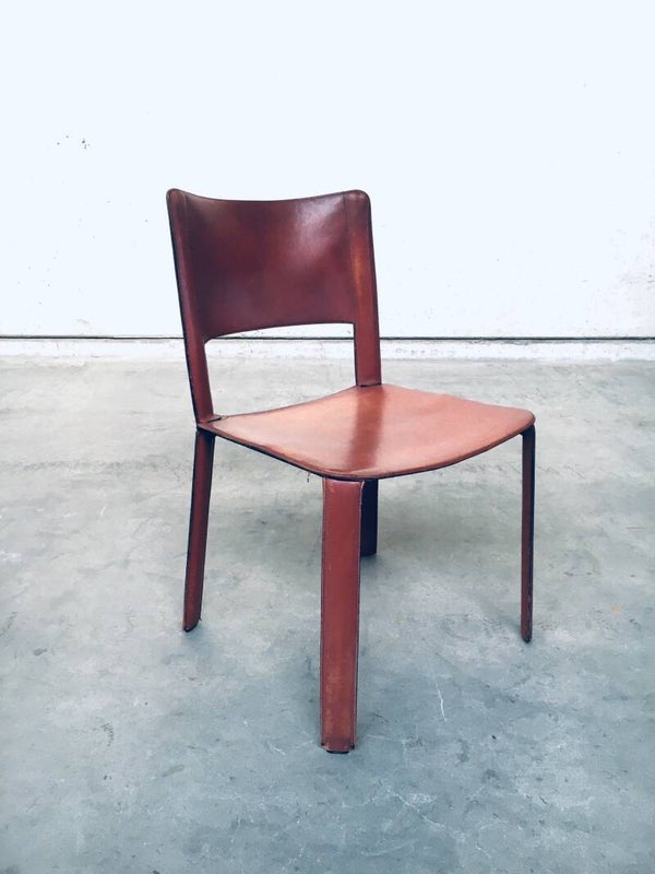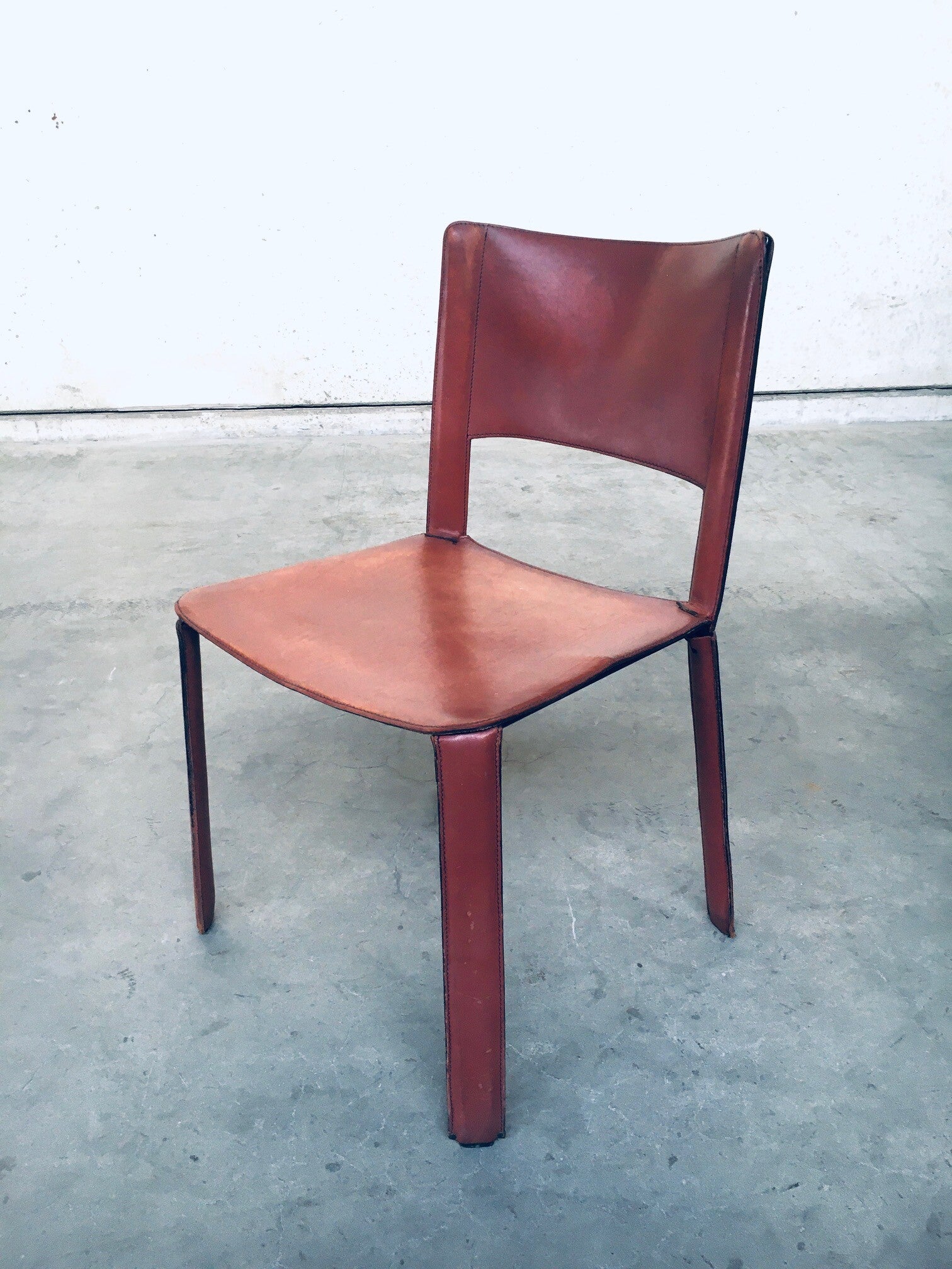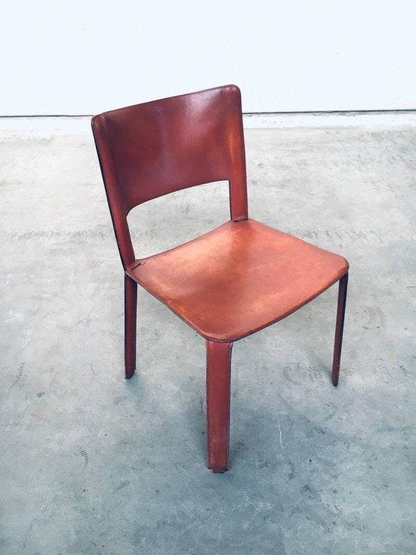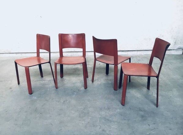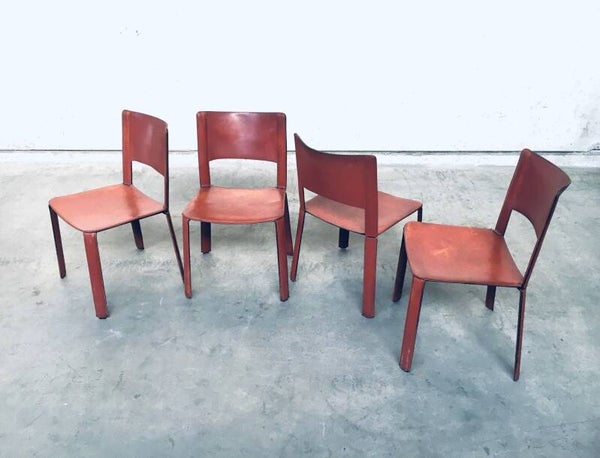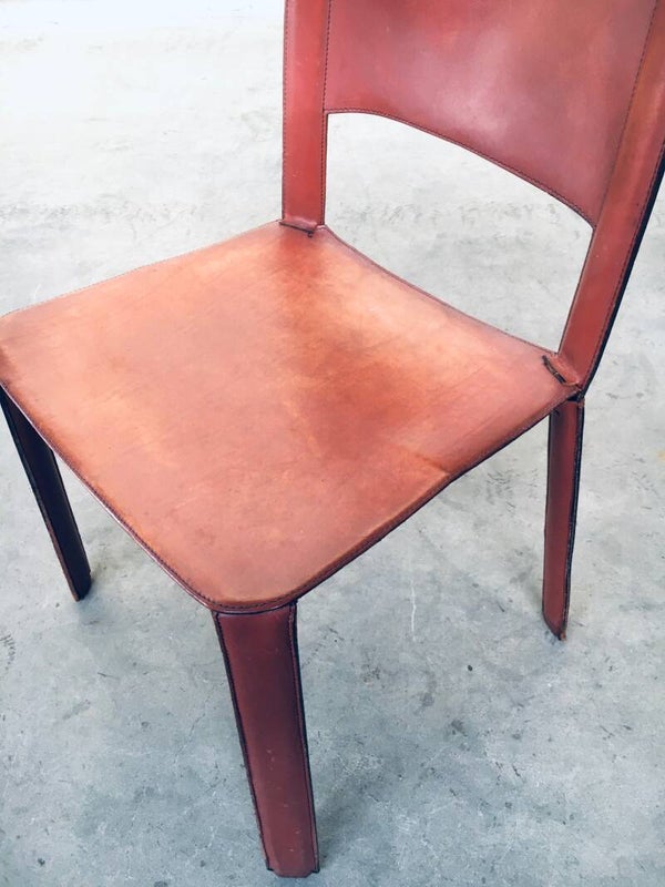 Italian Design Saddle Leather covered set of 4 Dining Chairs 1970's Italy