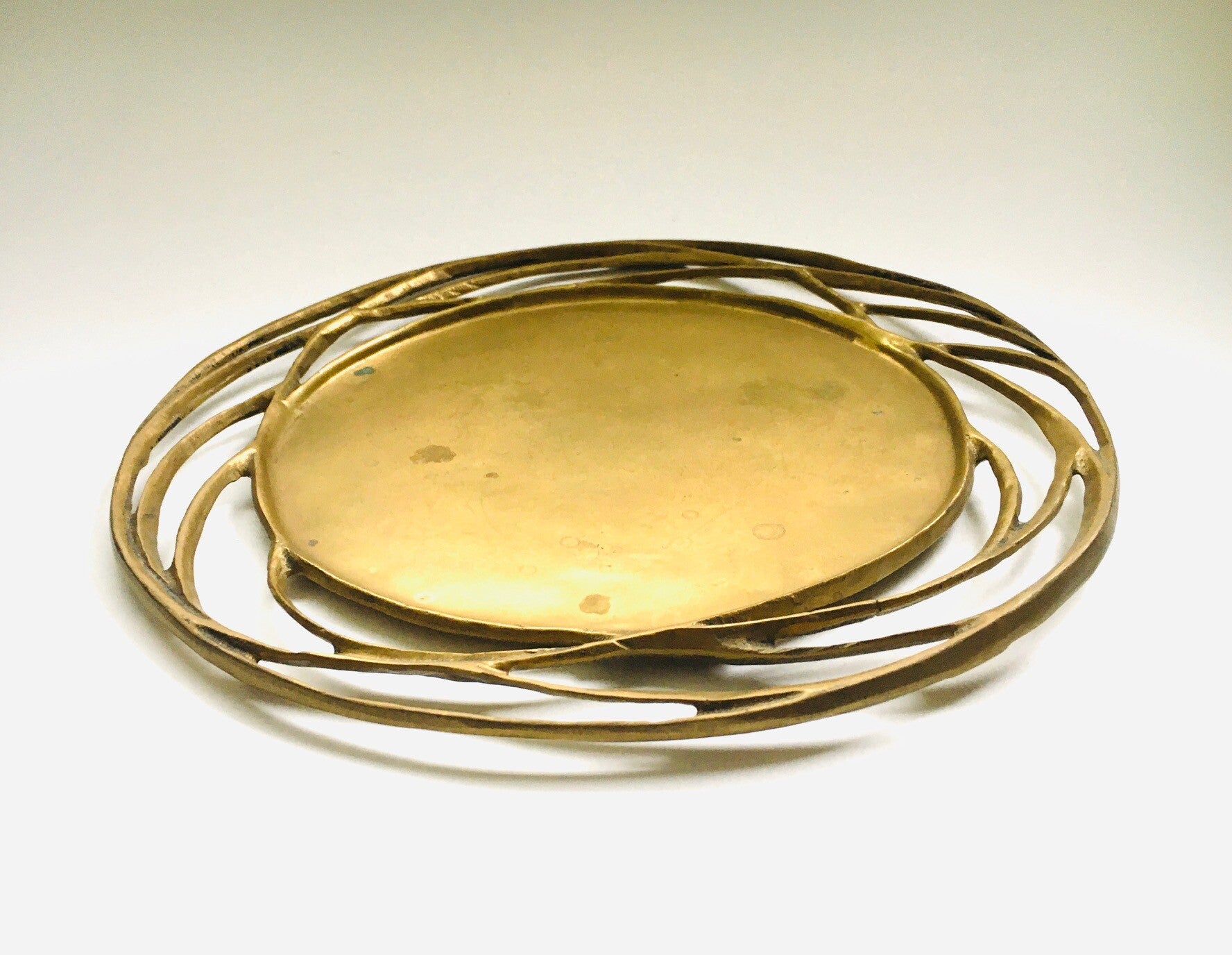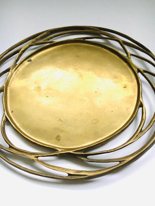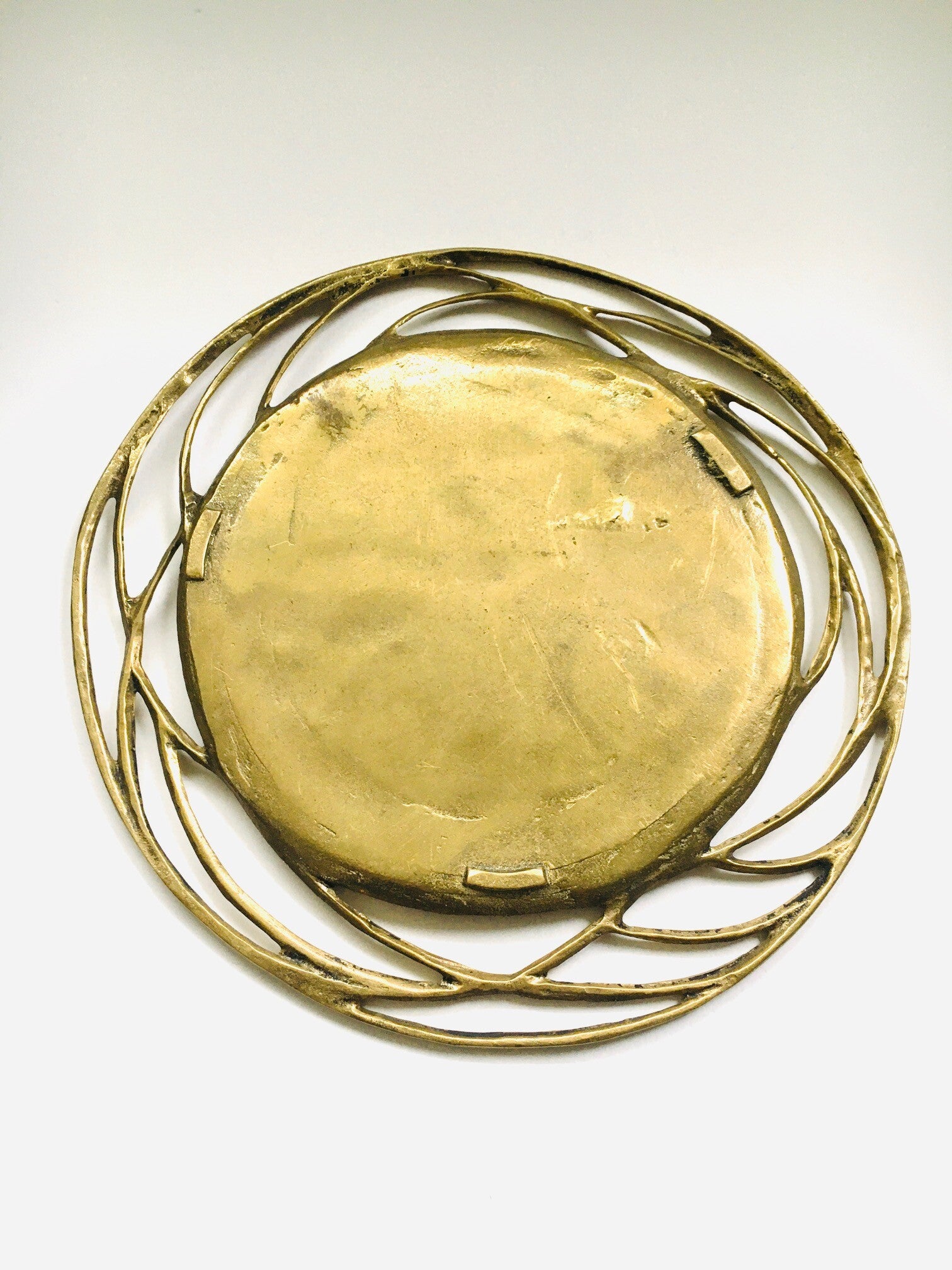 Vintage 1970's Brutalist Design solid brass SUN Plate Dish. Can be used as a Candle stand. No maker markings. In very good condition. One break on outer rings. 30,5cm x 30cm x 1,5cm.
