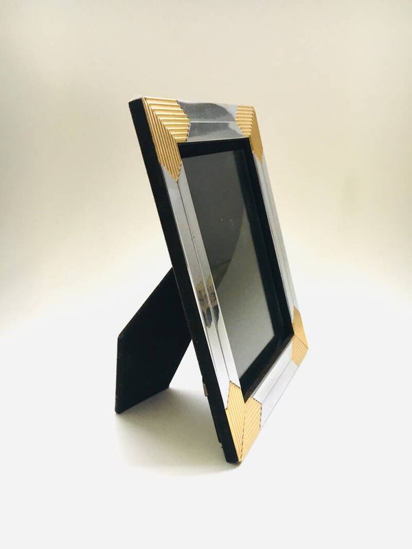 Hollywood Regency A5 Brass & Chrome Picture Frame, 1970's
