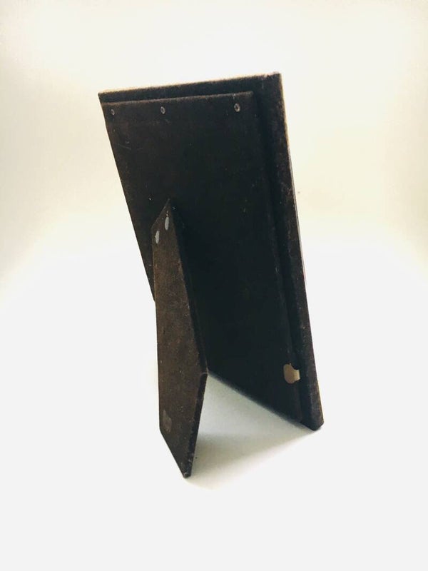 Vintage Hollywood Regency Design A5 brass & chrome picture frame, 1970's. Brass & Chrome metal front with brown velvet covered back. In very good condition. 22cm x 17cm x 1,5cm.
