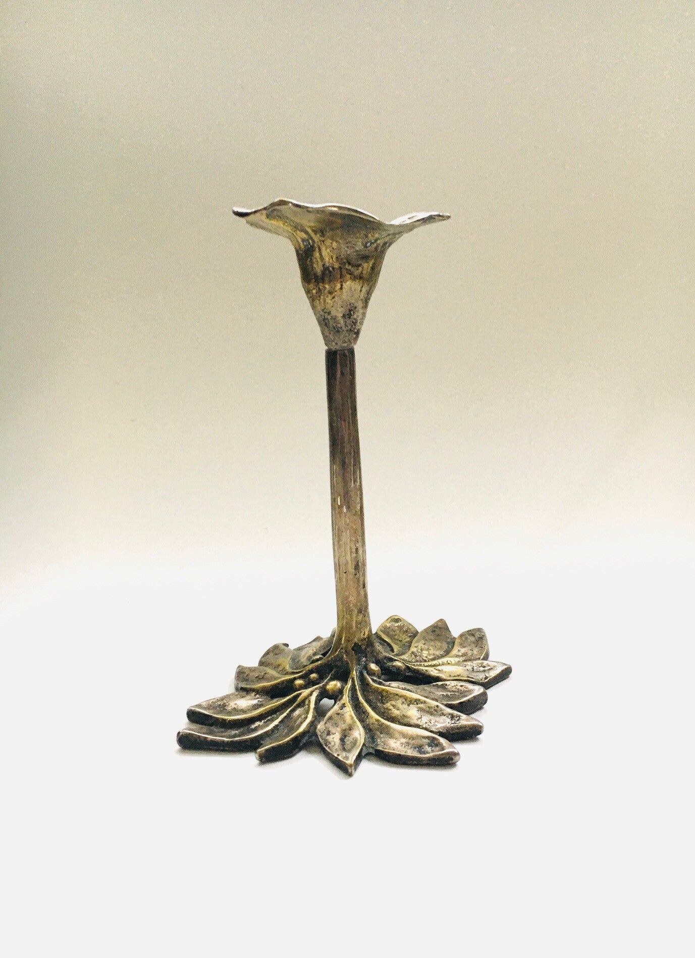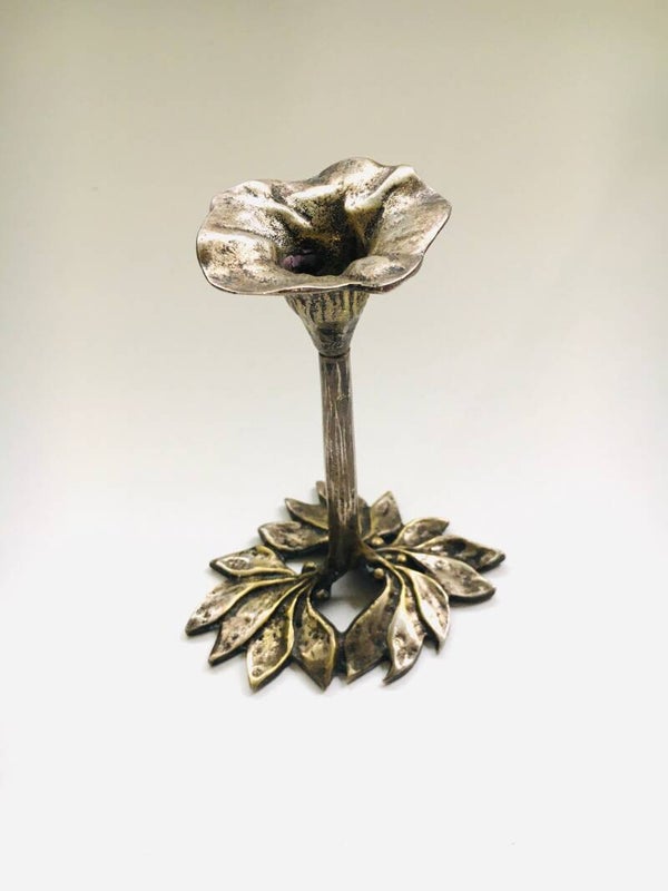 Vintage Brutalist Brass plant flower candle holder. Made in the 1970's. No markings. In good condition. Measures: 15,5cm x 12,5cm x 9,5cm.
