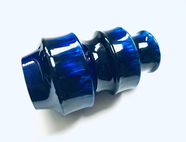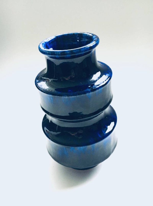 Vintage Midcentury Modern Design Ceramic Hooped Blue glazed vase by Scheurich, West Germany 1960's. Model number 267-20. In perfect condition. Measures: 20cm x 12cm x 12cm.