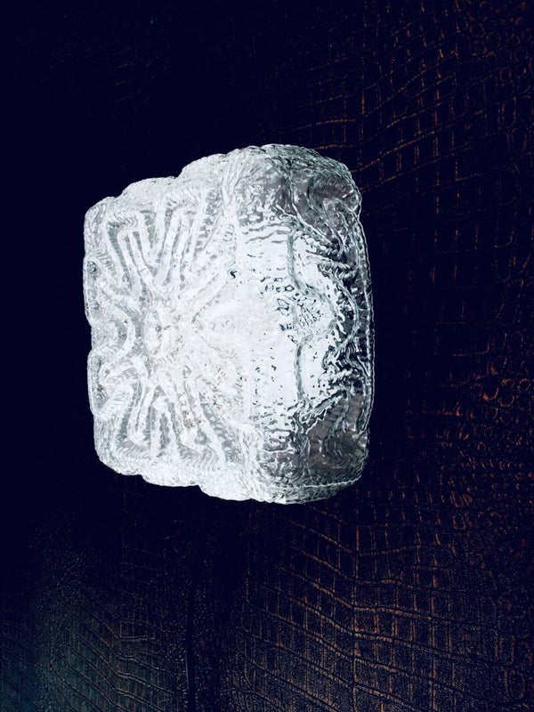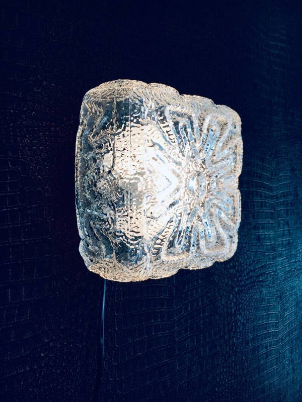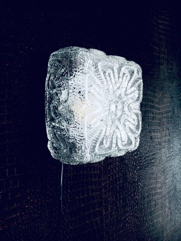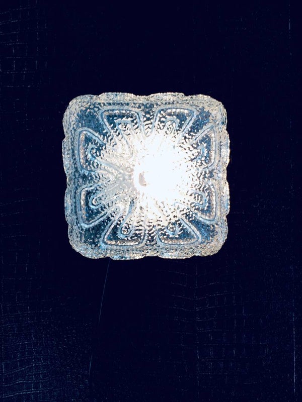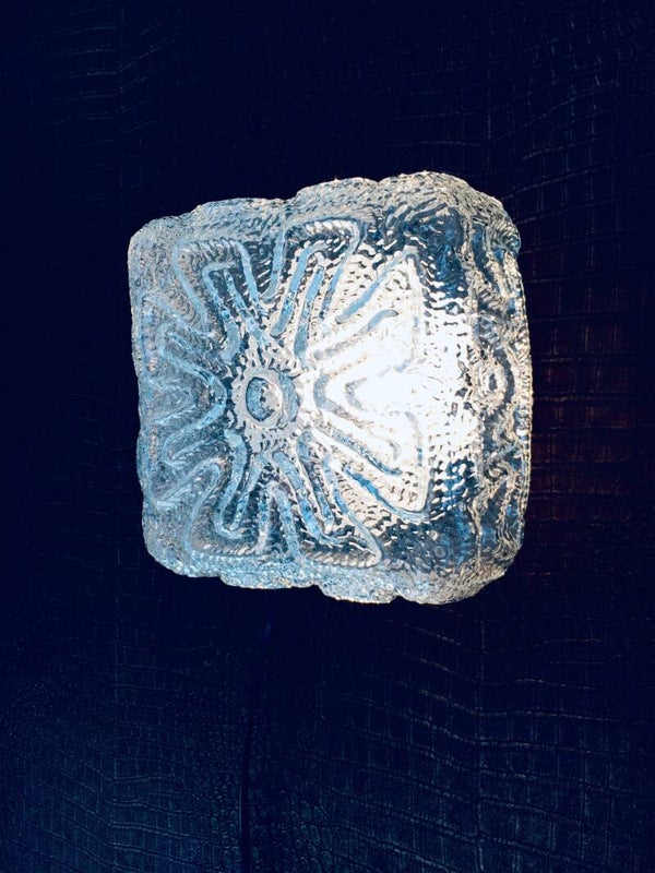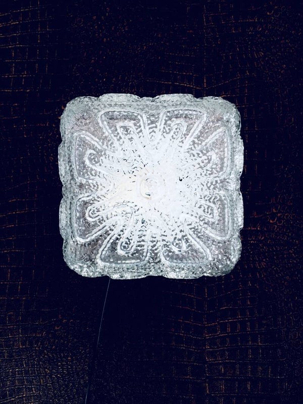 Vintage Midcentury Modern Design Ice Structure Glass Sconce Wall Lamp by Massive, Belgium 1970's. Cool square clear glass light. In very good condition. Measures 19cm x 19cm x 10,5cm.