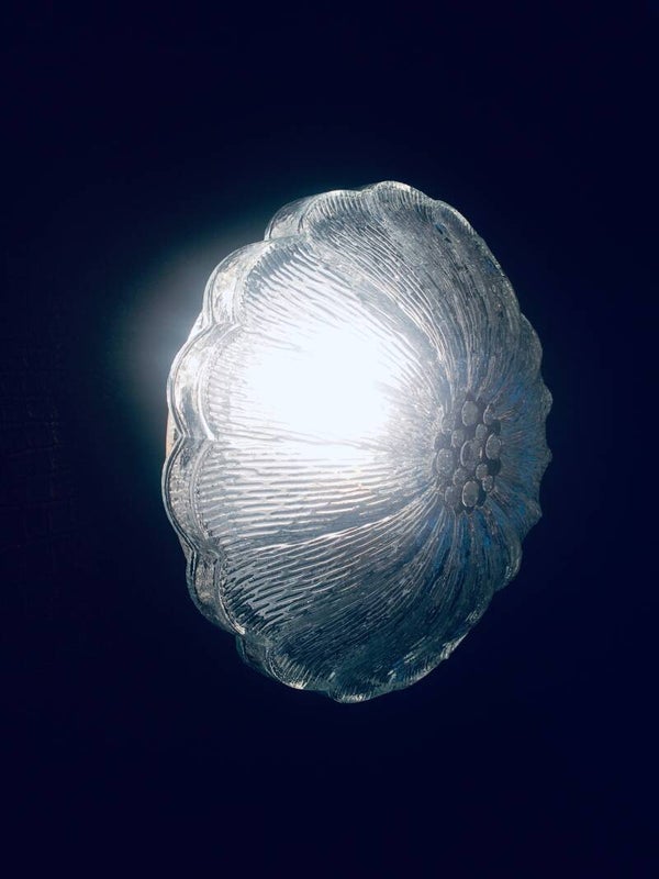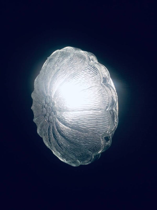 Vintage Midcentury Modern Design Clear Glass Lotus Flower Sconce Wall Lamp. Made in West Germany, 1960's. In very good condition. Measures 25cm x 25cm x 12cm.